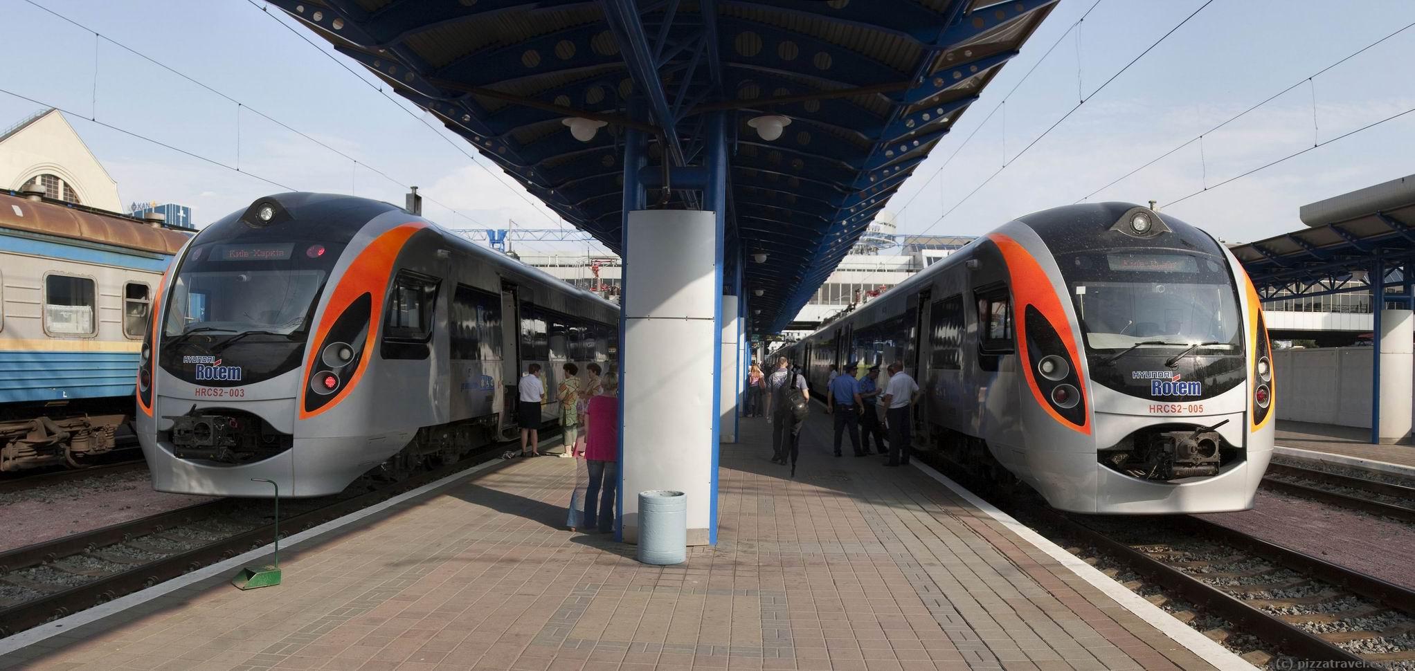 Intercity - 1st and 2nd class carriages, goes several times to all major destinations: Kyiv - Kharkiv, Kyiv - Lviv, Kyiv - Dnipropetrovsk, etc., the speed is up to 160 km/h. The trains are new, air-conditioned, have buffets, Internet, young stewards - everything like in European top level trains. First and second classes have different seats (in the second class five in a row, in the first - four and more space). Trains can be either Hyundai Rotem or Ukrainian trains.