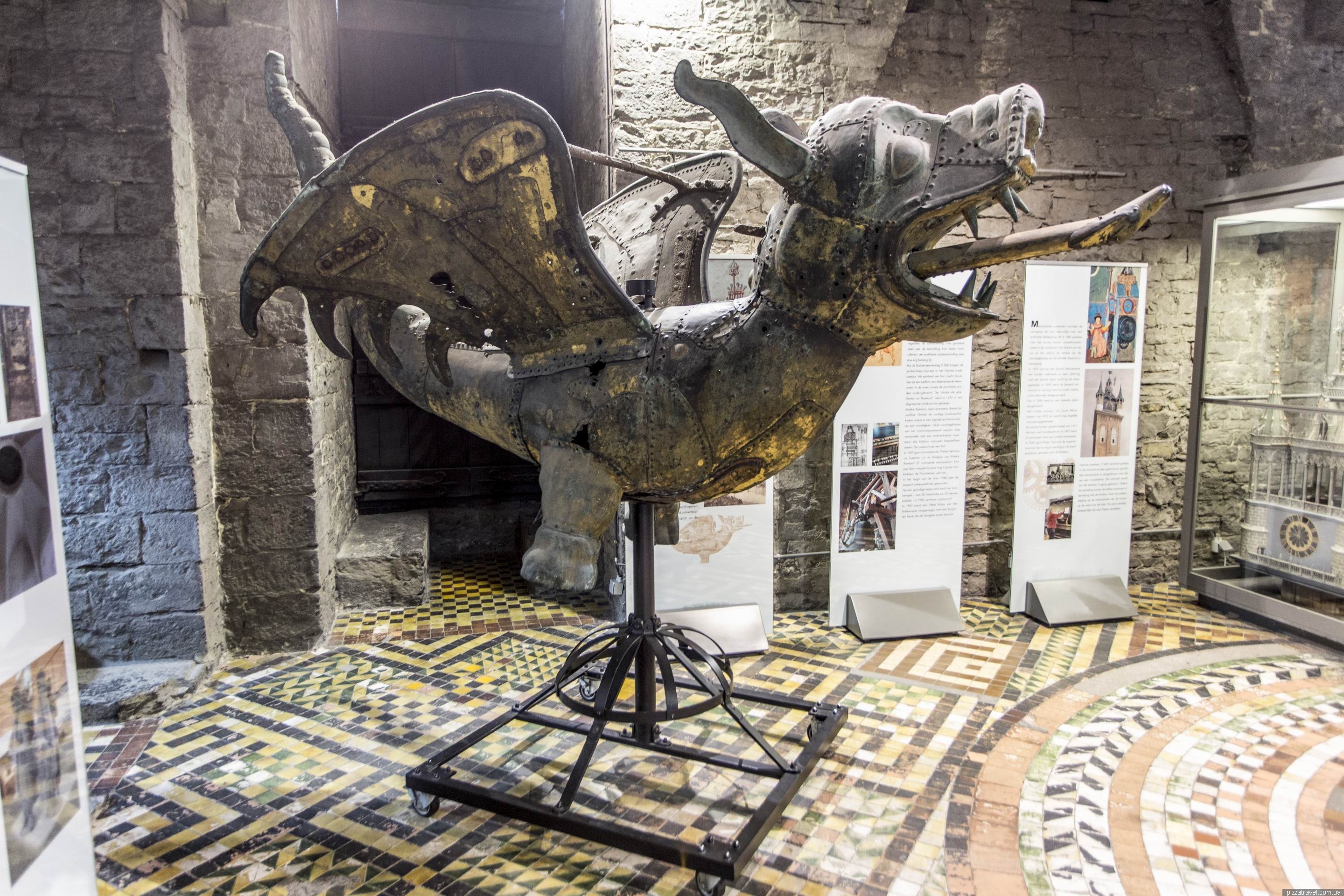 At the top of the tower stands a dragon and one more, the old one, can be found inside the Belfry. Judging by the design, the dragon was a "fire-breathing".