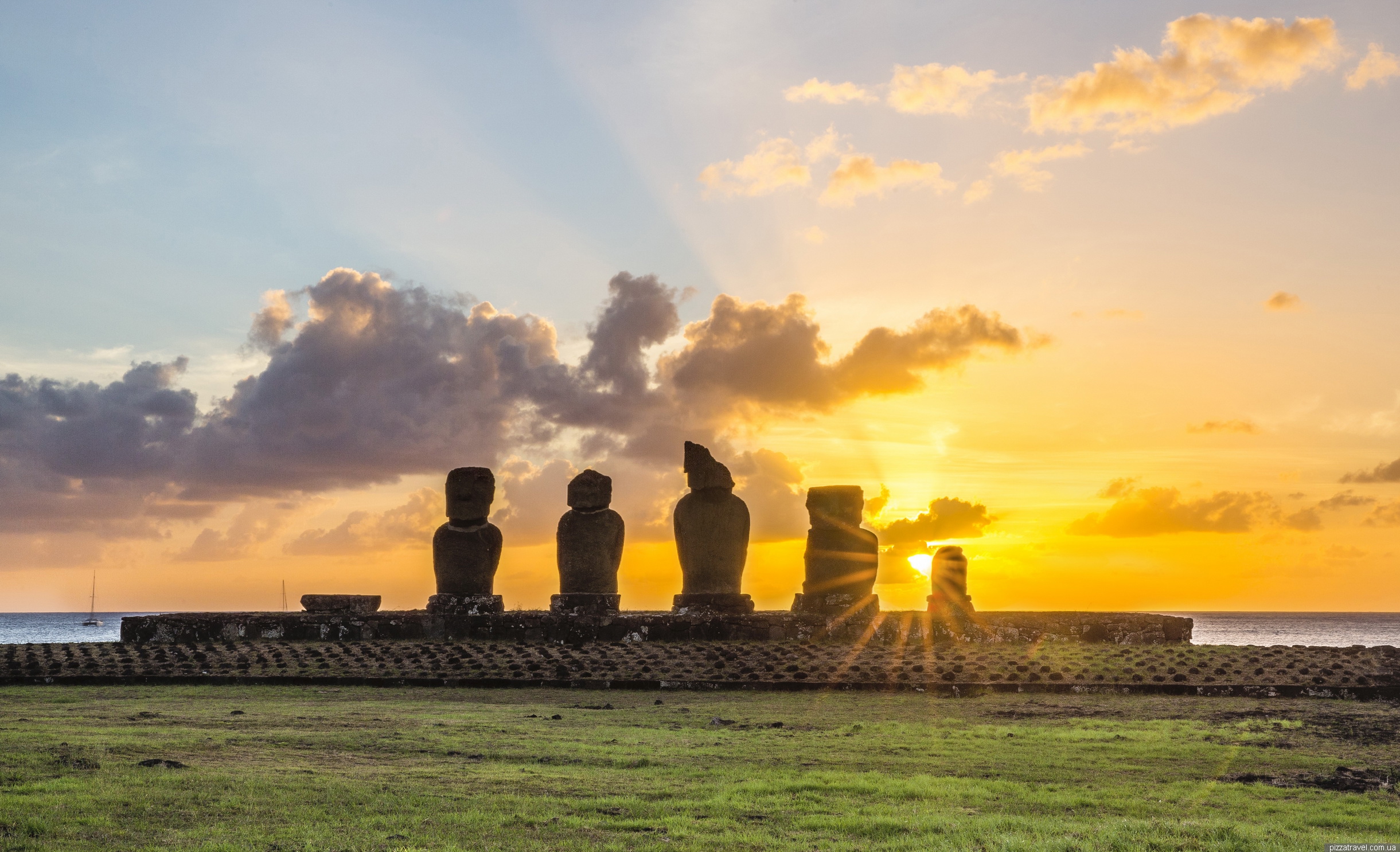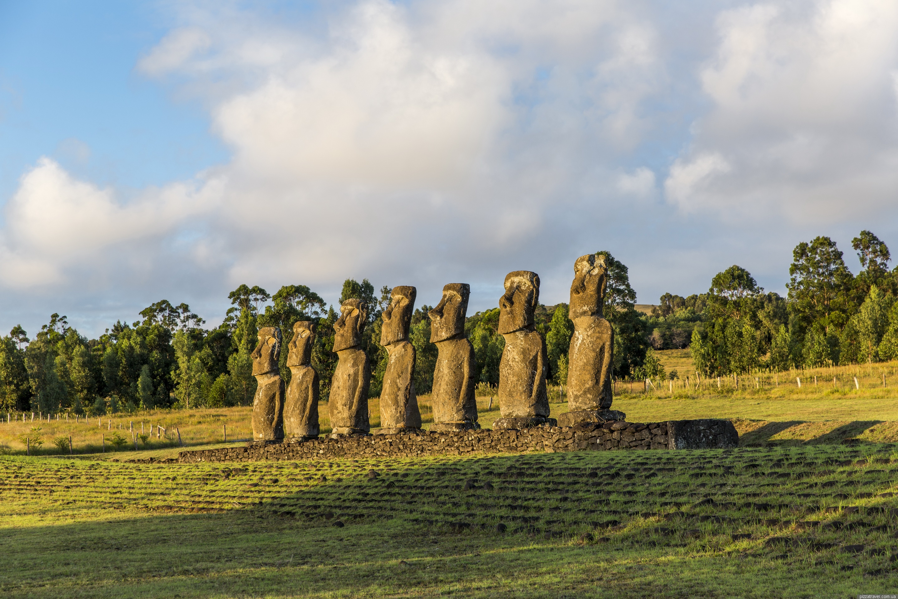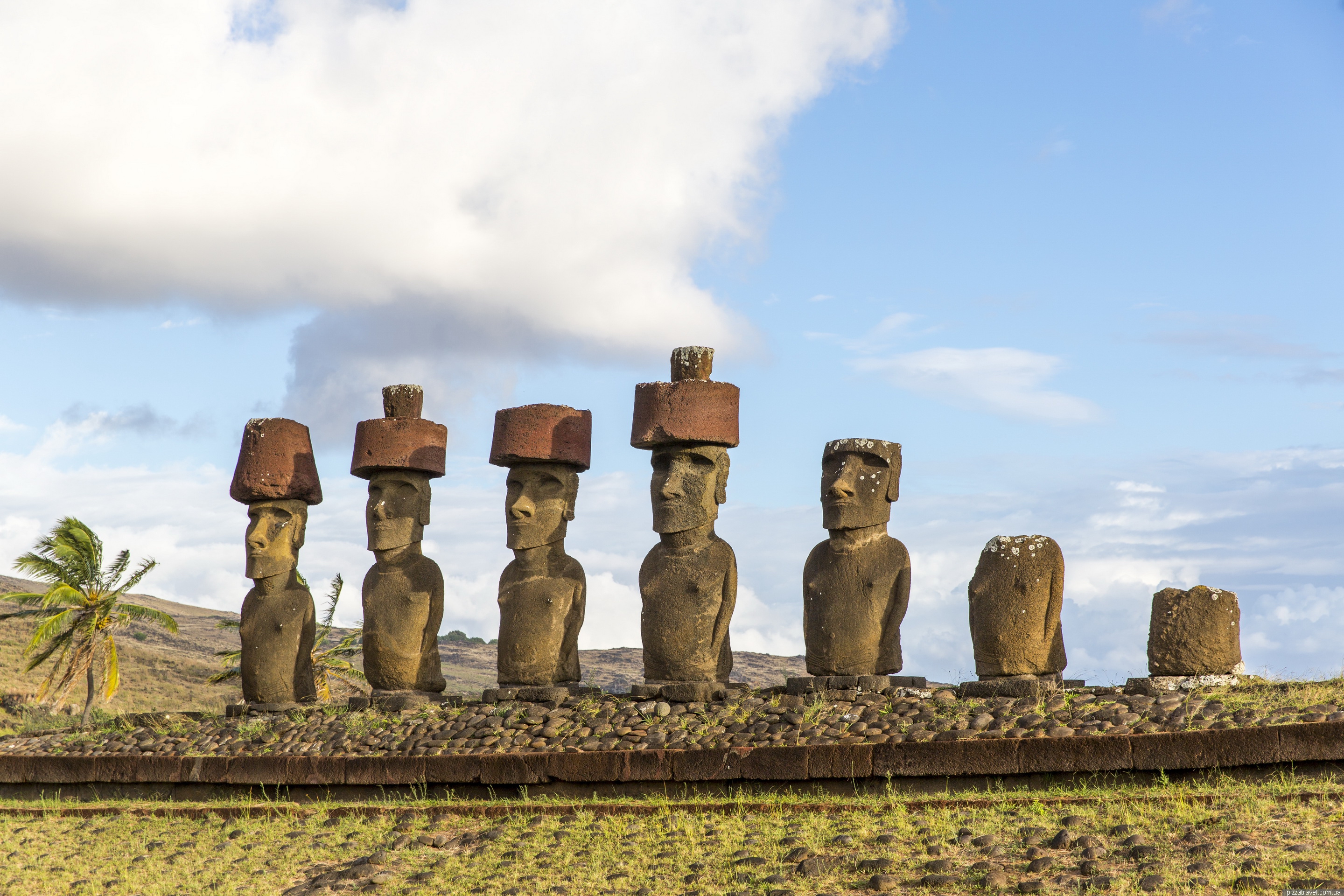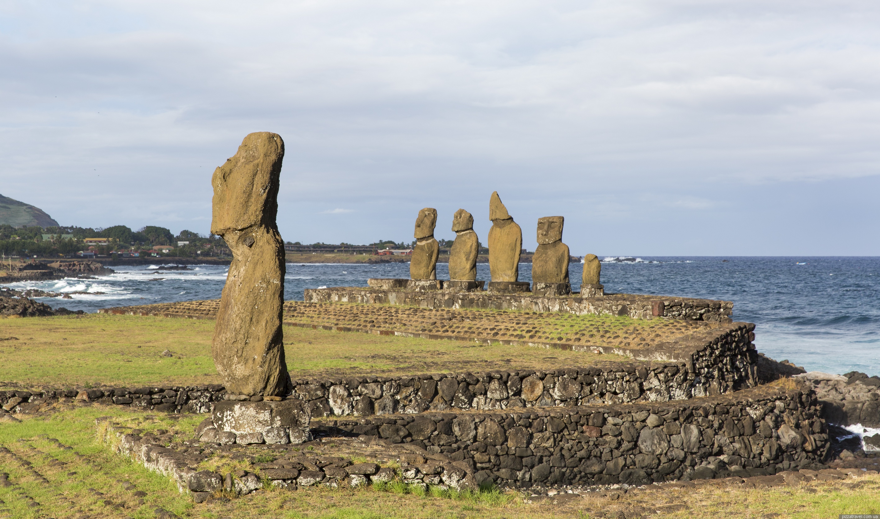 Ahu Nau Nau is a large platform with seven moai that was rebuilt in 1978. These are the most preserved statues on the island, due to the fact that they have been under the sand for centuries.