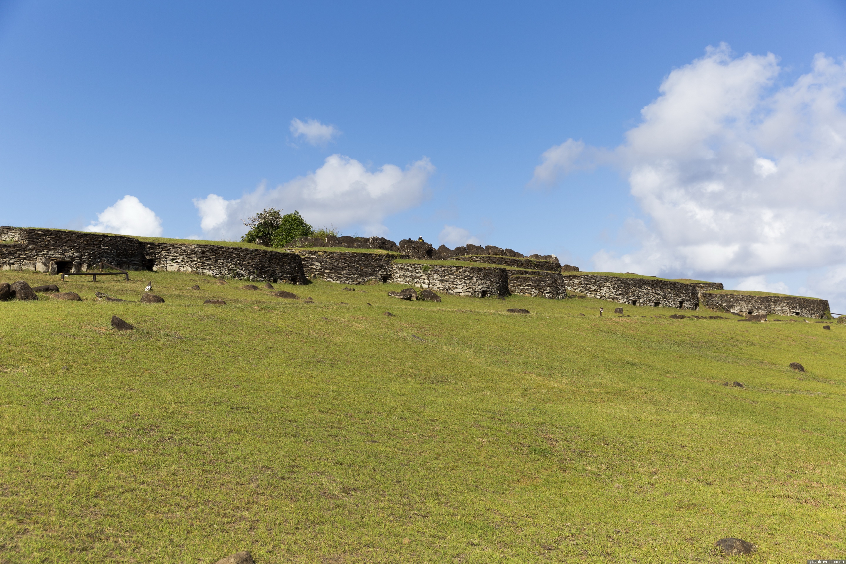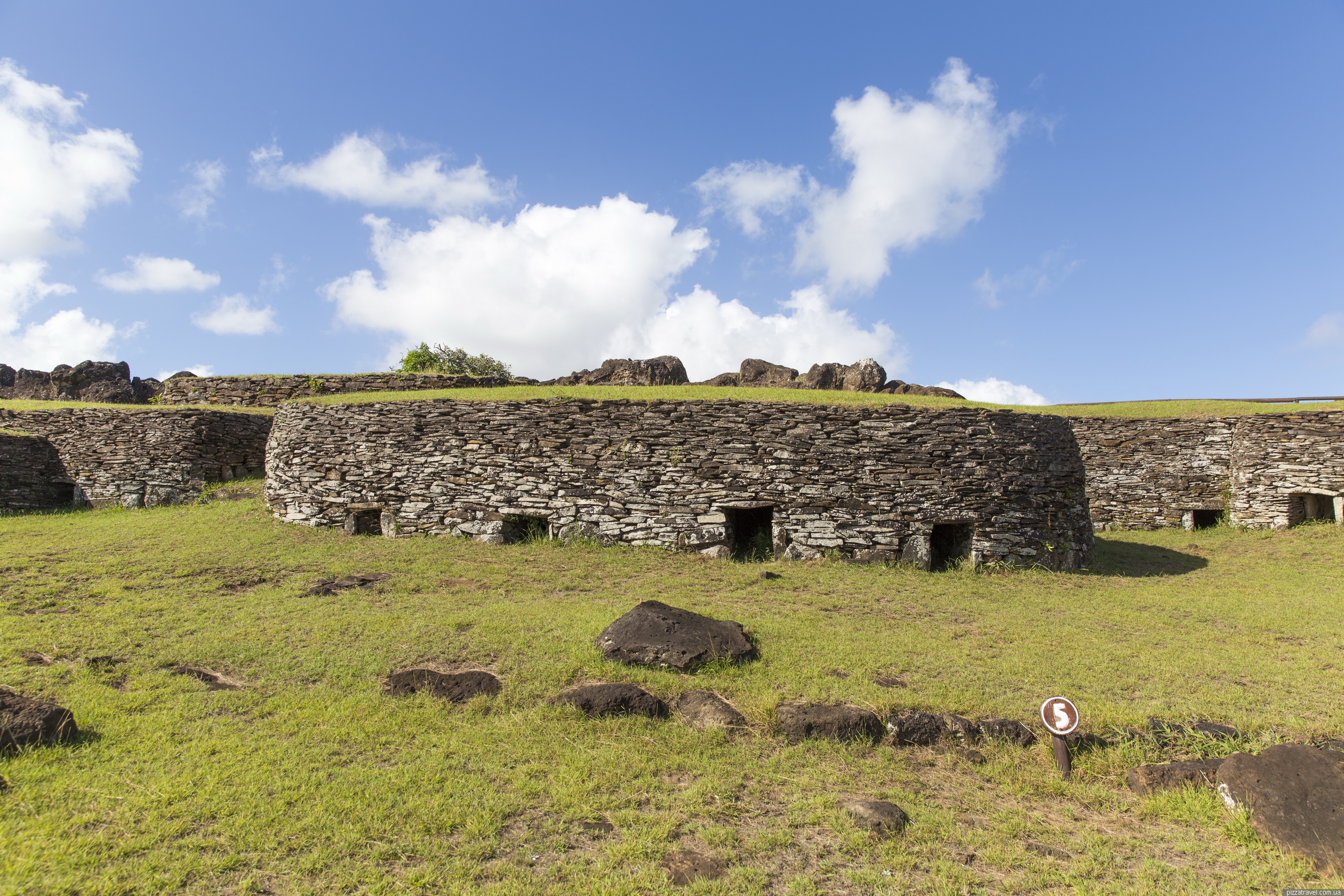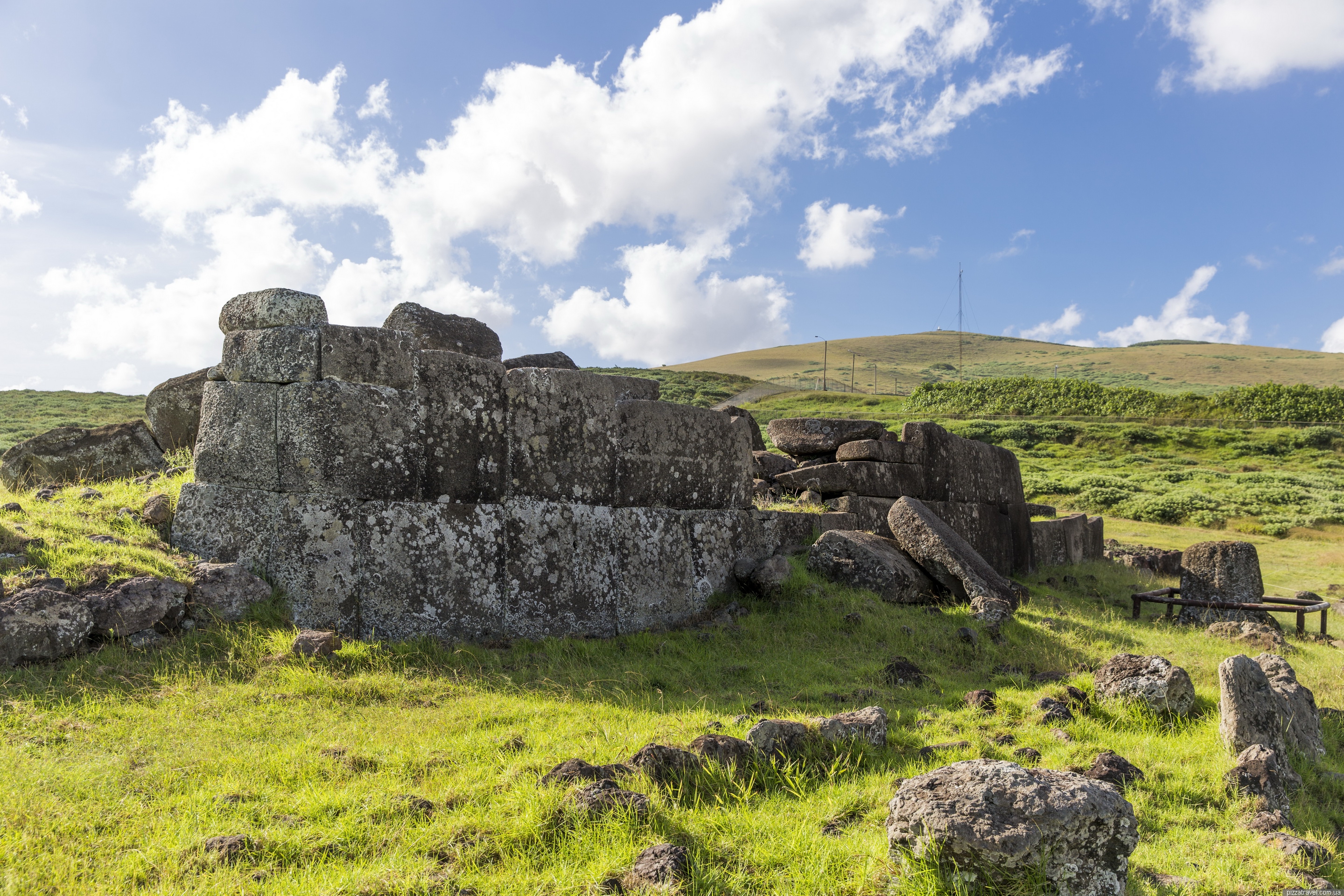 The Incas built a small temple on the Easter Island, using their traditional and well-known masonry of basalt blocks. Compare it with Orongo.