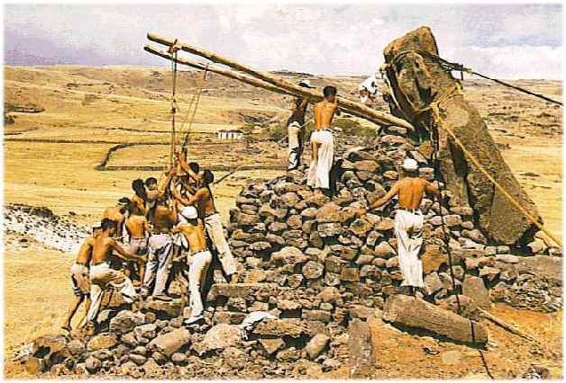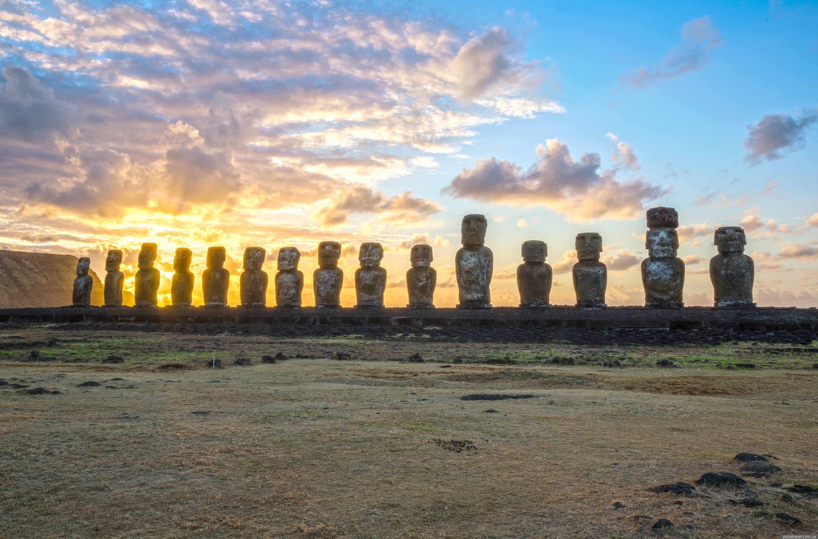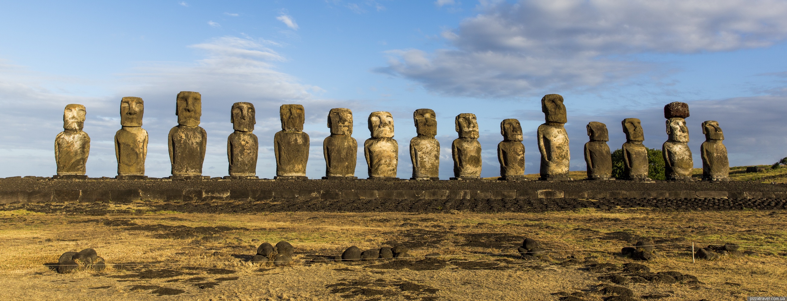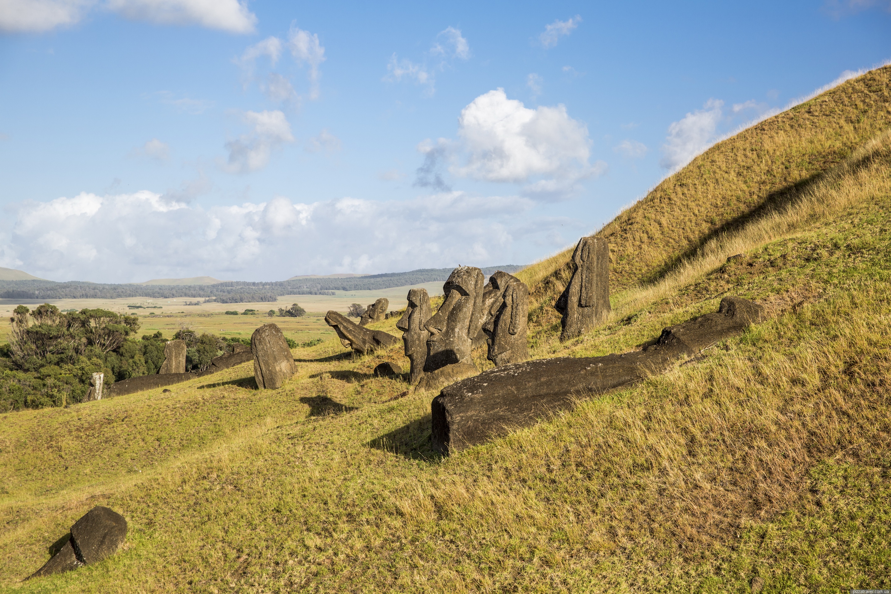 In 1960 near the coast of Chile there was a strongest earthquake in history with a magnitude of 9.5. 11-meters tsunami flew to Easter Island and demolished the statues, throwing statues 100 meters from the platform.