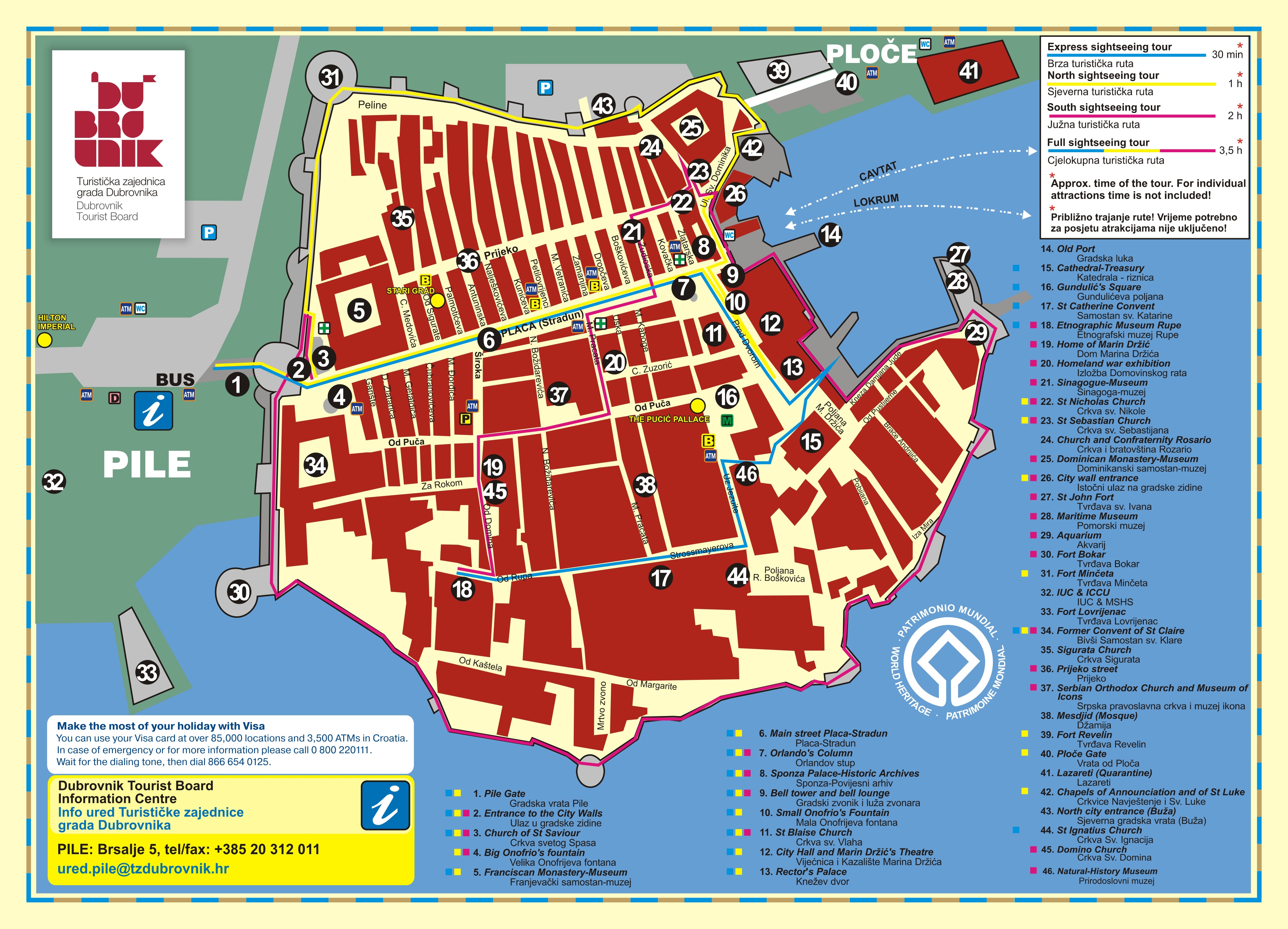 Getting there: There is an airport, located 22 kilometers from the center. From the airport to the city run buses of Croatia Airlines ($6.5, 45 minutes). Taxi from the airport costs $50-60. Kantafig bus station is 2.5 kilometers from the Old Town. The nearest railway station is in Ploče, too far away.