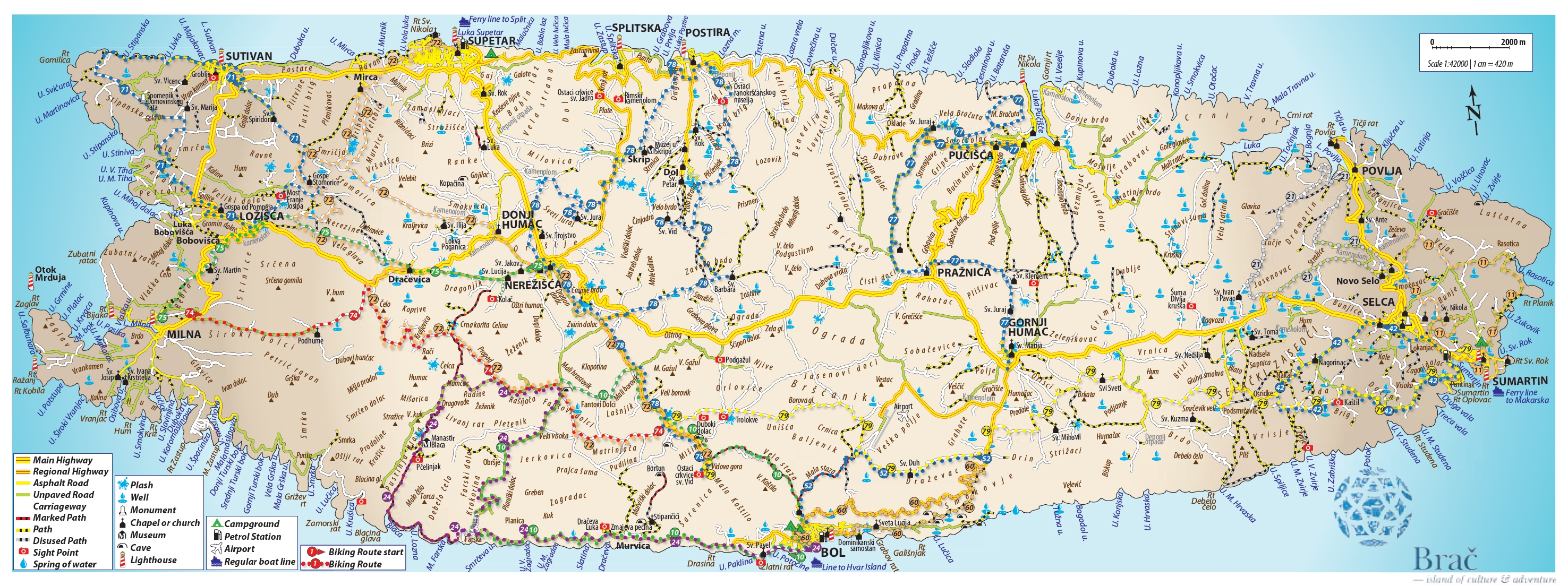 Split - Supetar (Brac) ($5, 50 minutes, schedule), with a car $24.