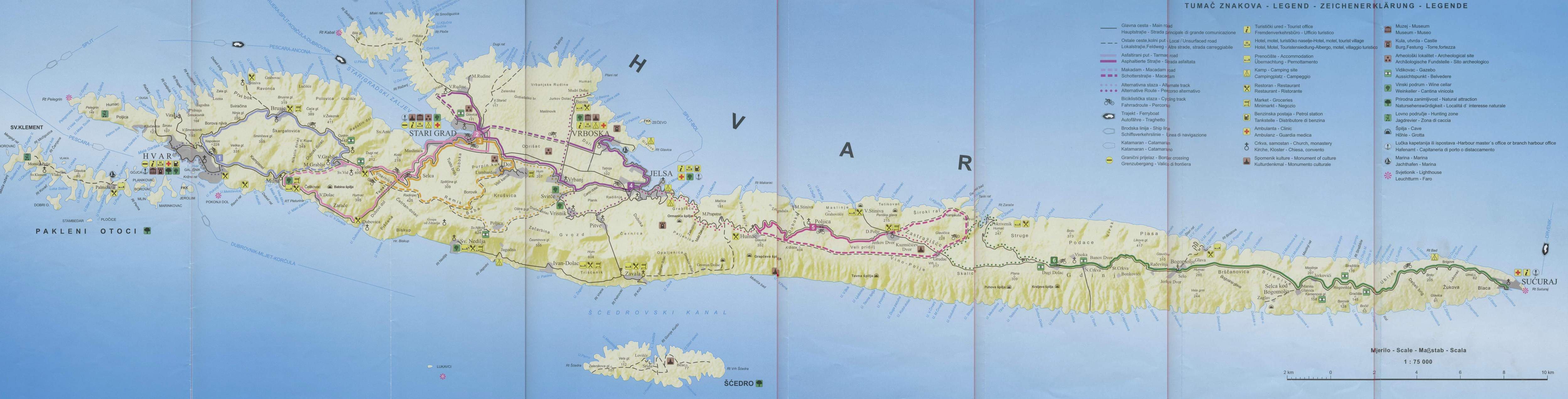 Split - Stari Grad (Hvar) ($9, 2 hours, schedule), with a car $57.
