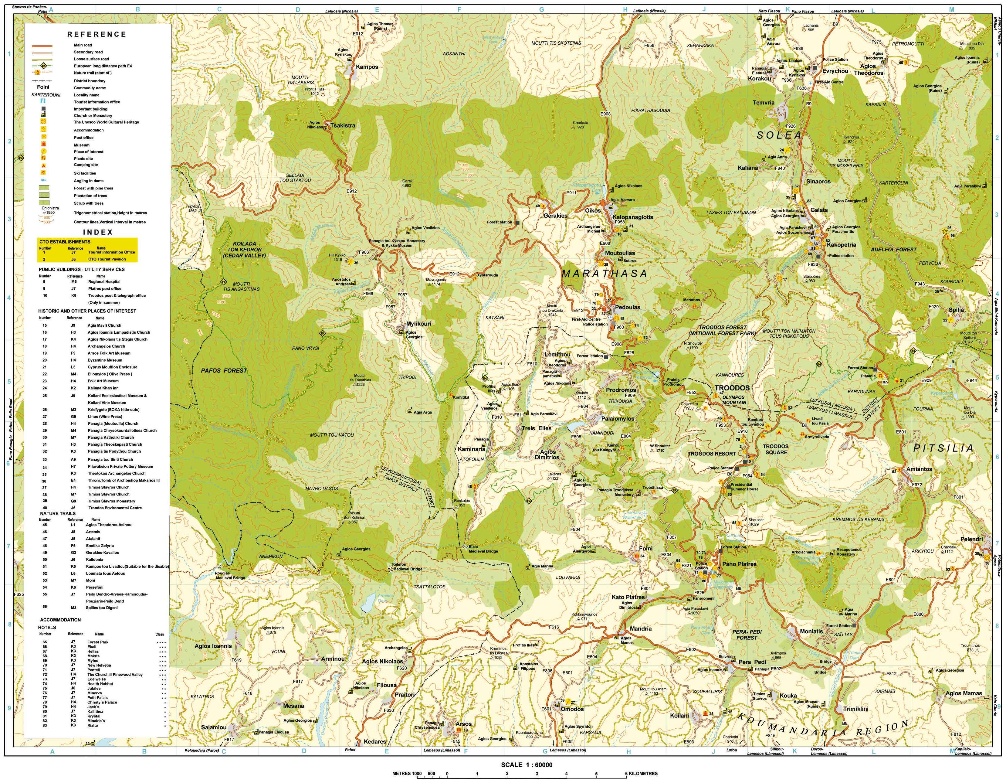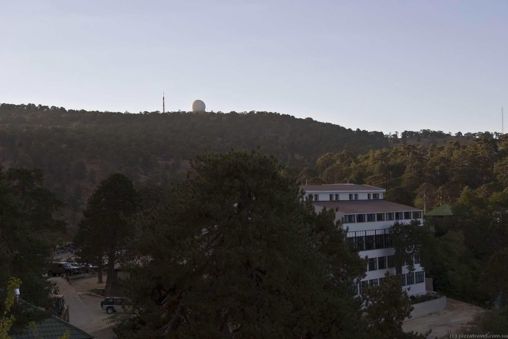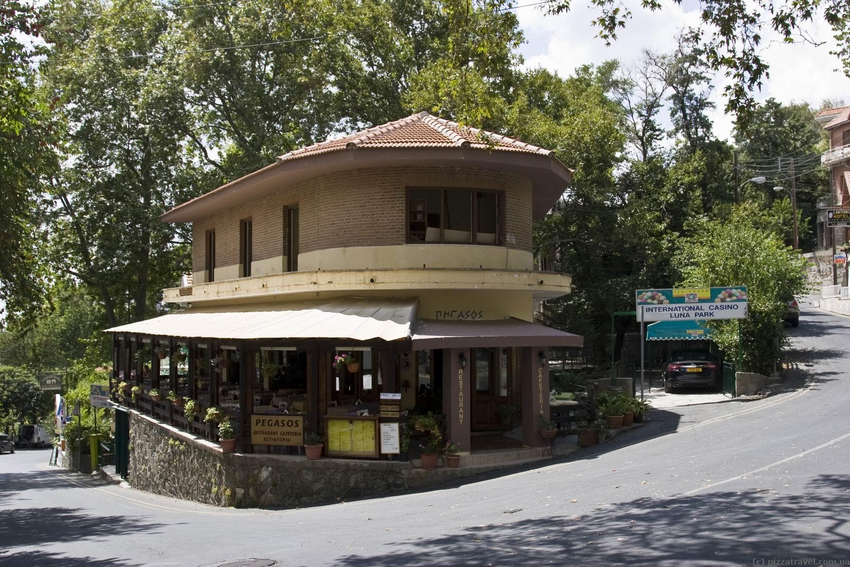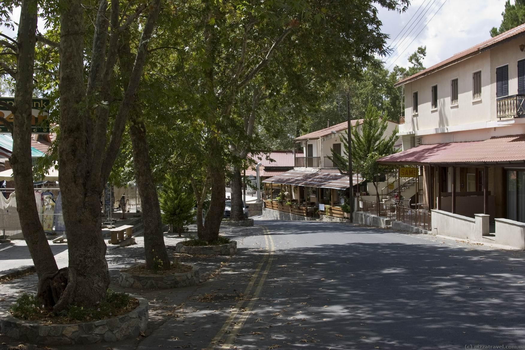 The main place where most tourists arrive is the Pano Platres village (1,125 meters). There are plenty of hotels, restaurants and tourist infrastructure there. We went to the highest point - Troodos Square (1,725 meters). This is not a town, just a square near the top of mount Olympus. There are two hotels, several restaurants, kiosks and tourist information center there. We stayed at the Troodos Hotel (booking.com).