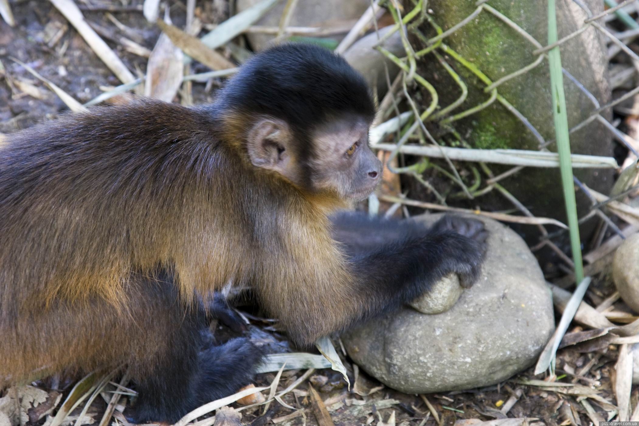Monkeys always can make a surprise, for example this one use two stones to break nuts.