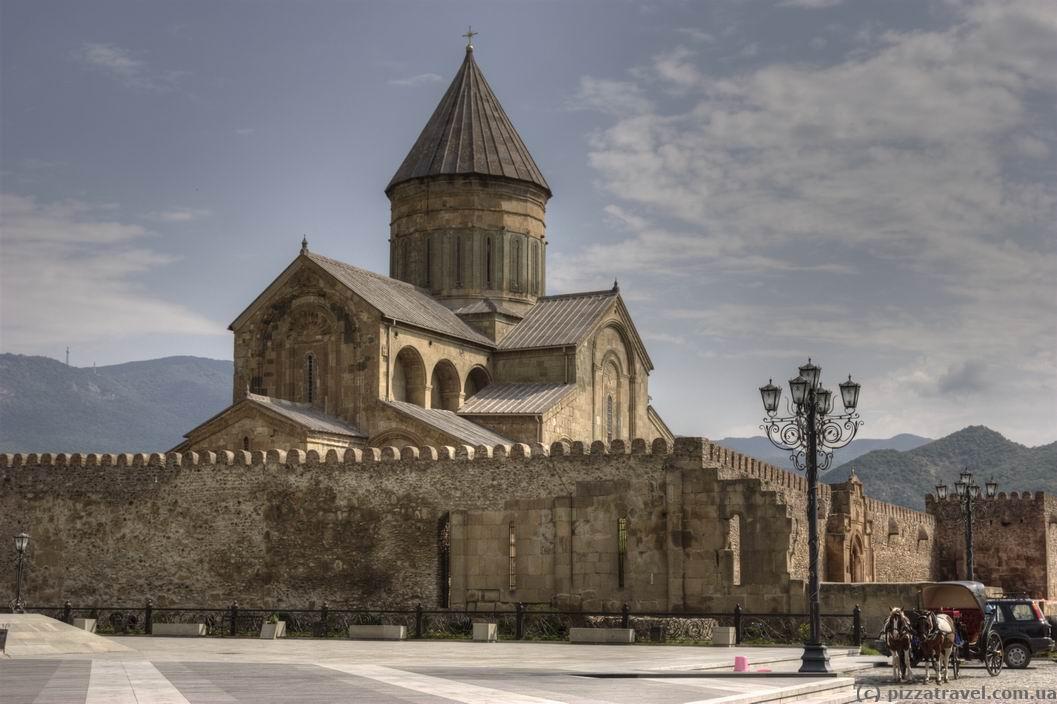 The main object in Mtskheta is located in the center. The Svetitshoveli Temple was built in 1010-1029. As well as in other large churches of Georgia, kings were crowned and buried here for a long time.