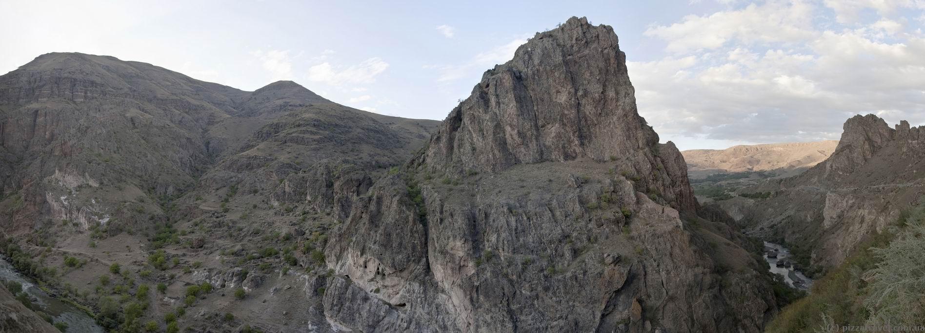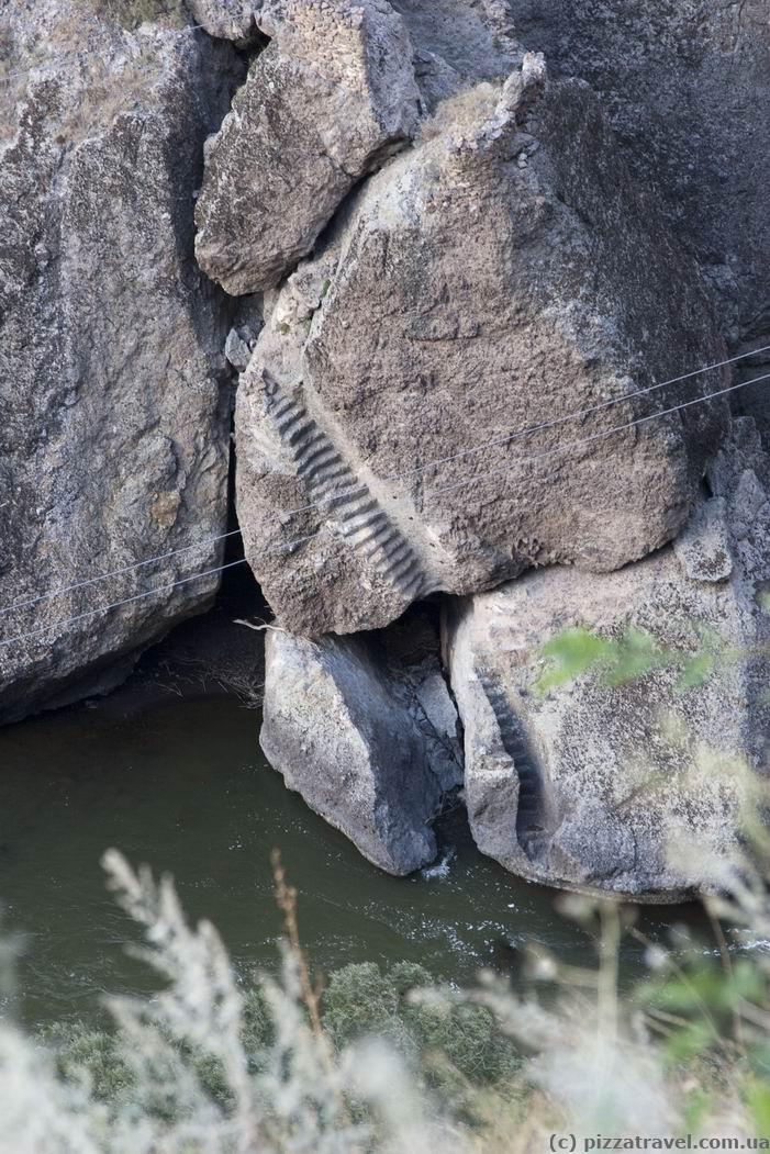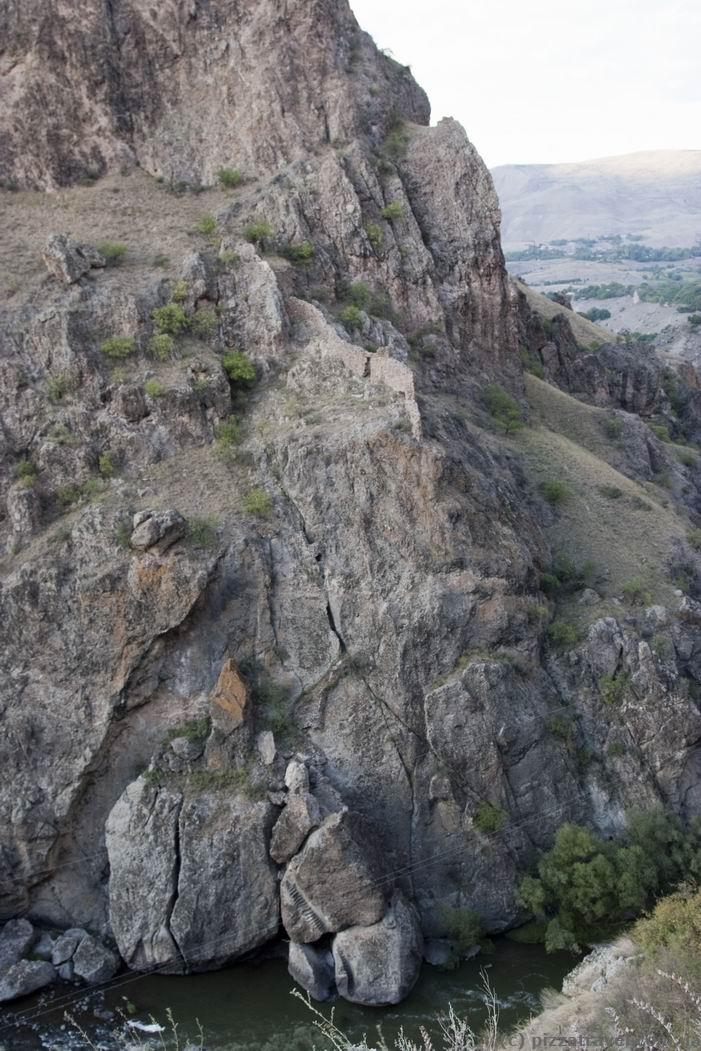 By the way, on the road between Vardzia and Khertvisi, near the village of Tmogvi (here), in addition to the Tmogvi Castle there is another interesting place. Pay attention to the other side of the river, there are also the remains of an ancient city, which is even older than Vardzia. Although it almost did not survive, you can find some ancient elements, and that's really interesting.