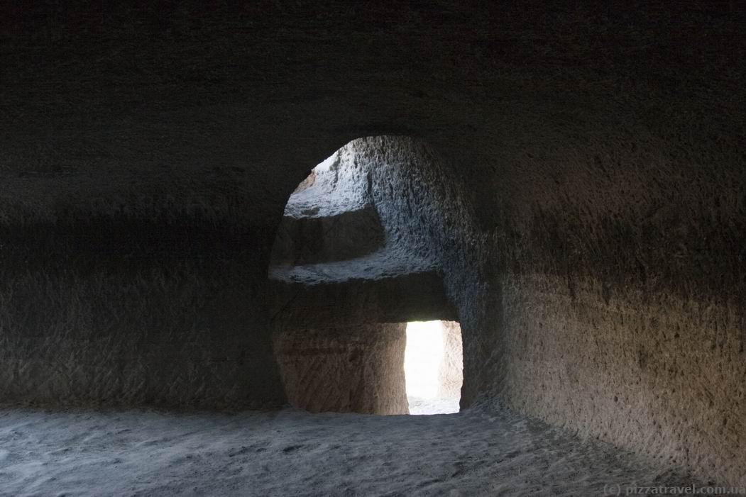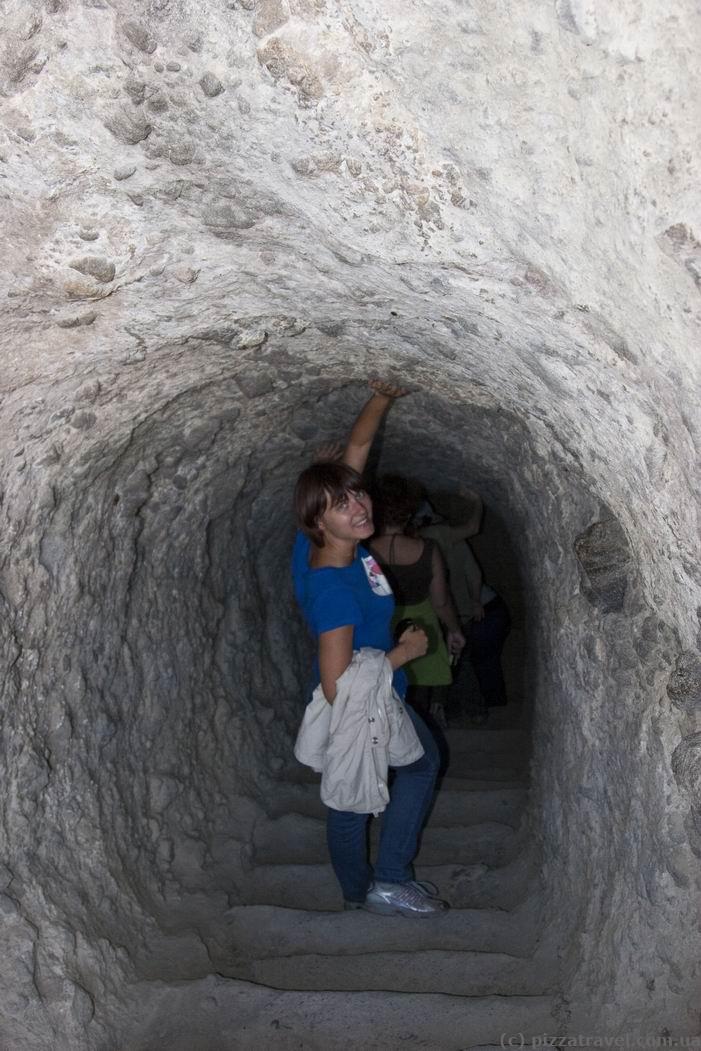 Vardzia is a large cave monastery complex of XII-XIII centuries. It is approximately 1 km long and is located on the hillside along the Kura river. At the moment about 600 rooms are excavated, but local workers told us that at least 3,000 rooms existed. Some of the caves go deep into the rock by 50 meters. It is interesting that nowadays Vardzia is located on the outskirts of Georgia, but during the heyday it was standing on the the main trade route.