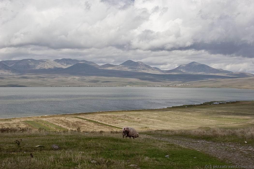 Paravani Lake is the largest in Georgia, located at an altitude of 2,073 meters above sea level. There are mountains behind the lake (Abul-Samsari Range) and this creates a wonderful scenery. The place is very lonely - road, grasslands, lake, mountains, huge space, so be sure to visit this place.