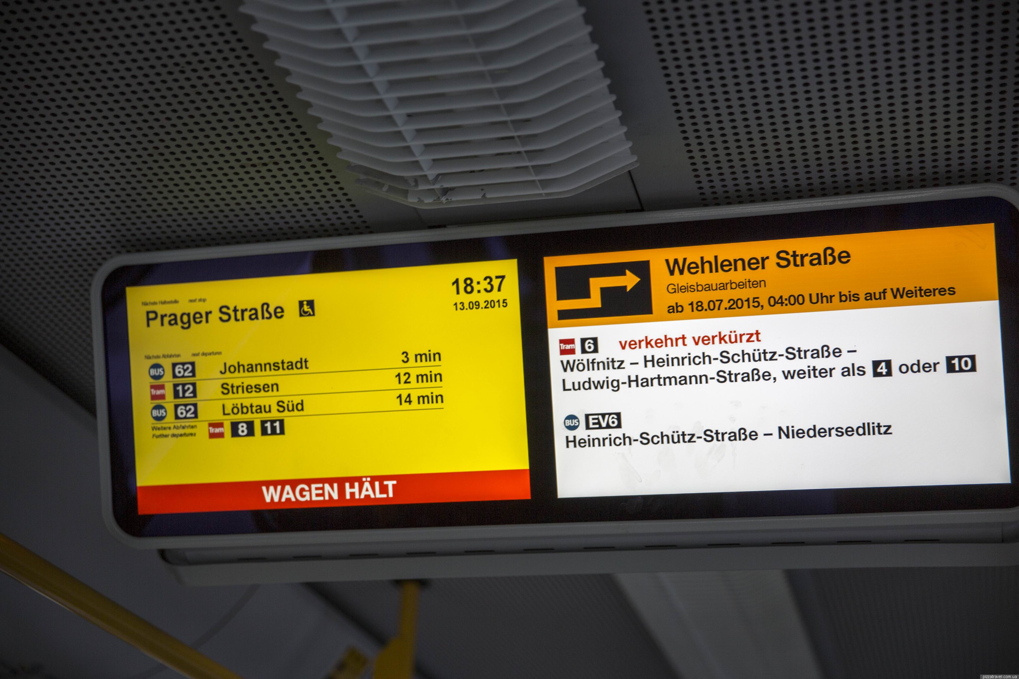 Dresden has standard transport system for Germany: city train, trams and buses, all renovated in recent years. Tickets are purchased from vending machines, a day ticket costs 6 euros (2015). Screens in the transport show options for the changes on the next stop.