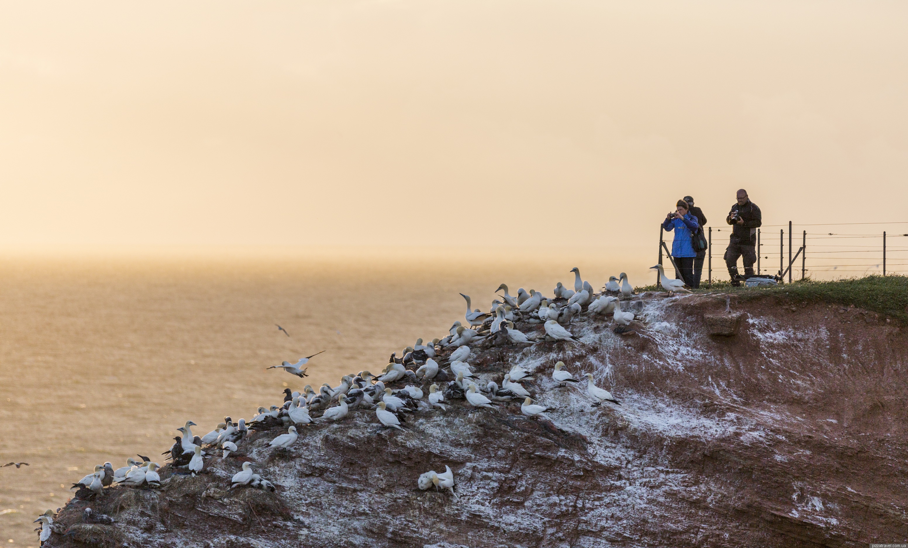And while the viewers are waiting for the sunset, they are watching the largest in the region colony of Northern gannets.