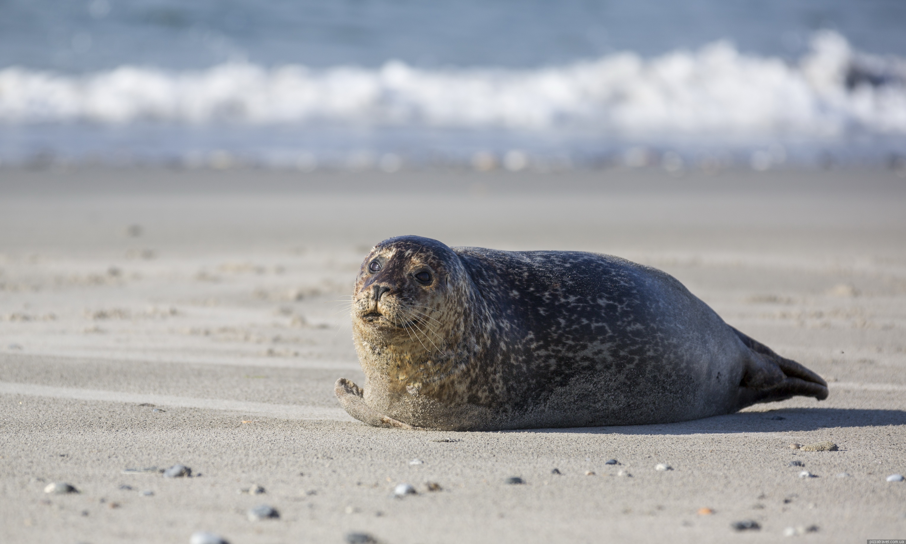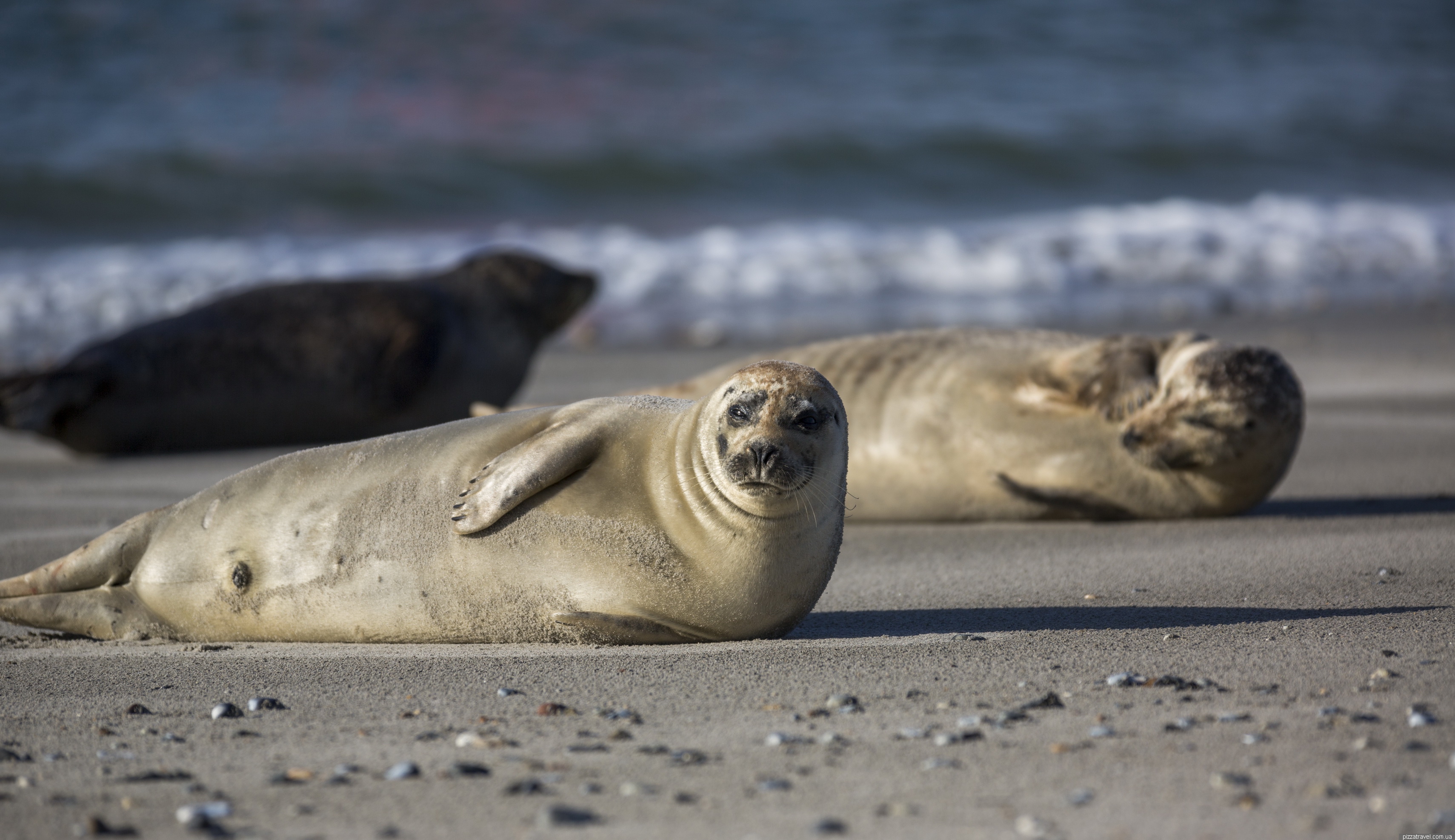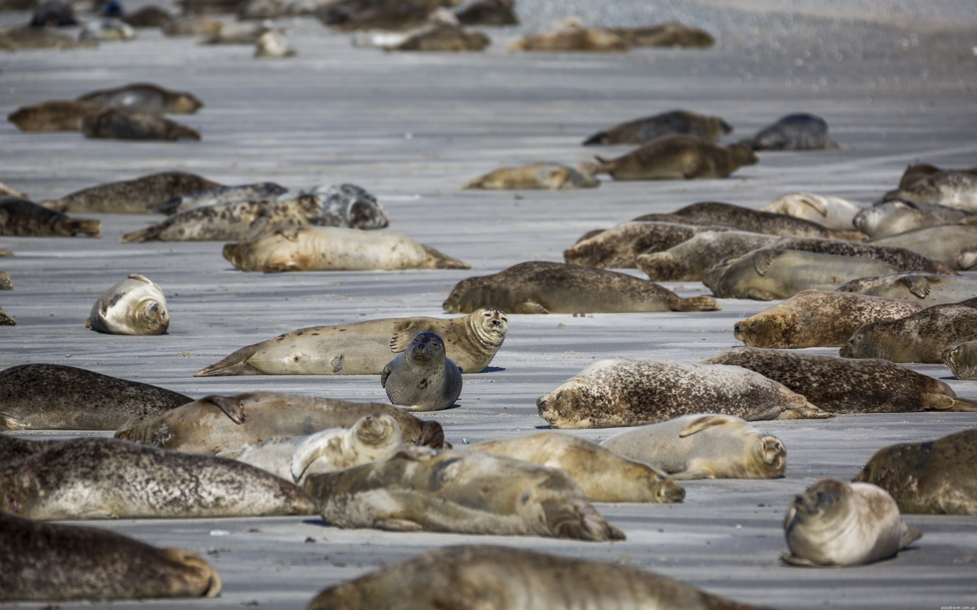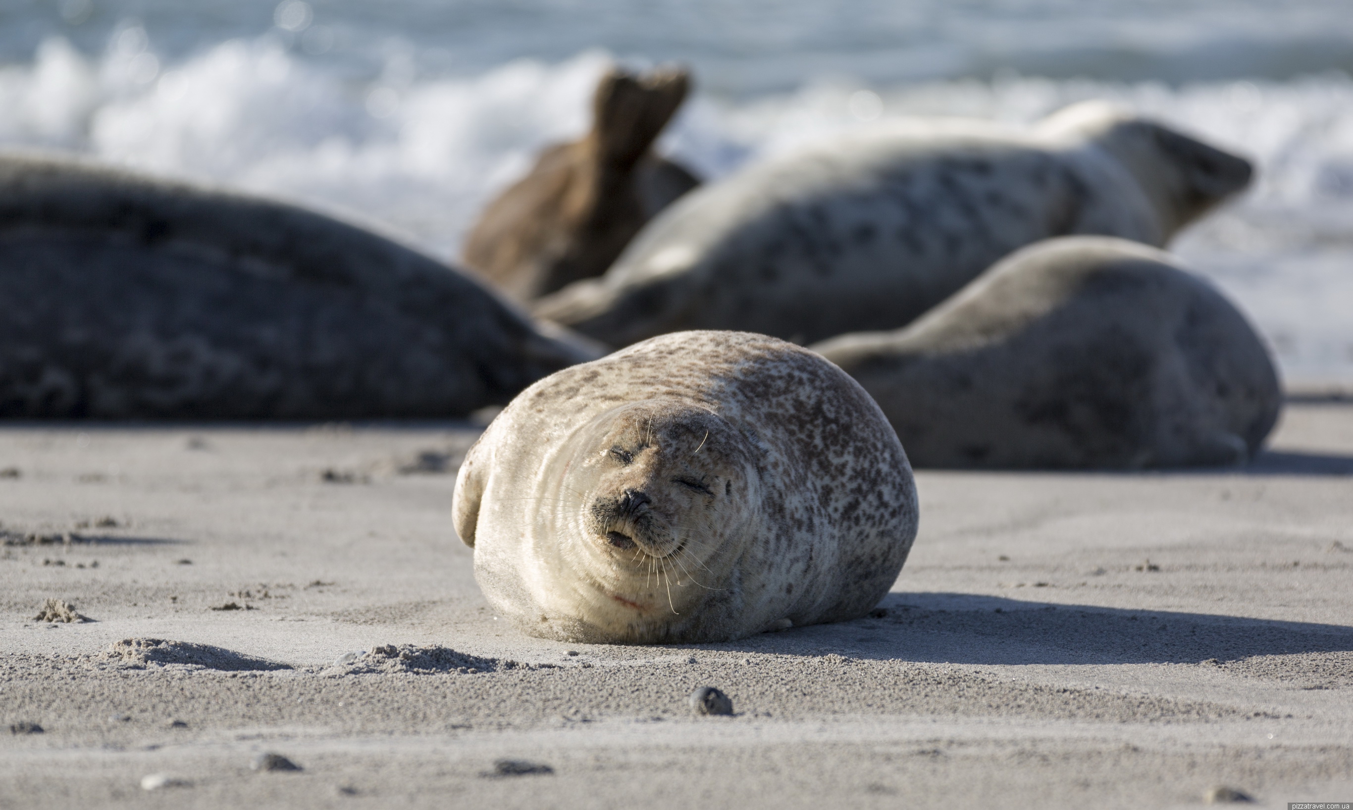 But the main interest on Dune are the seals (in German Seehunde or sea dog). There are a lot of them, I think, about 300. We arrived on the first boat, which leaves at 8 am and were the first visitors on the Dune. In the afternoon, hundreds of tourists come here. People scare the seals and they hide in the water. In the morning seals are lazy and did not pay attention to us.
