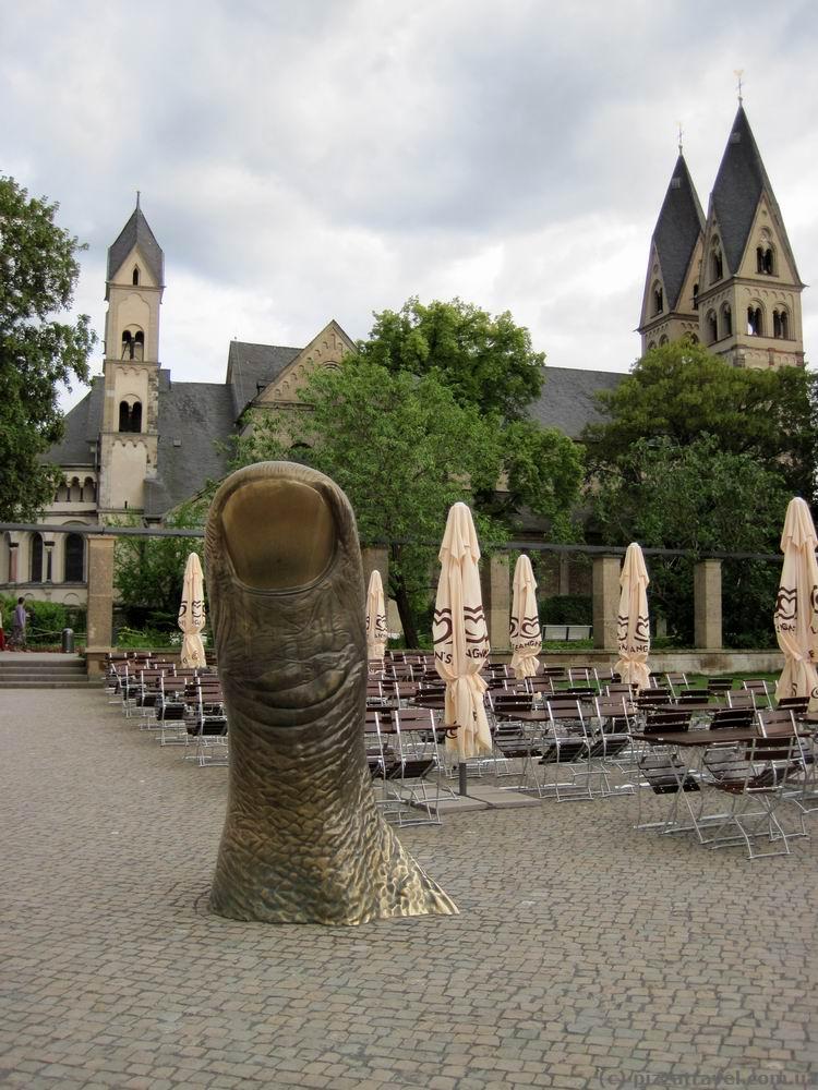 Koblenz pleasantly surprised us. Despite the fact that the city is not touristic, it's a very nice place to walk because of long waterfronts. The main attraction is the German Corner (Deutscher Ecke), the name of a headland in Koblenz where the Moselle river joins the Rhine river. In 1897, nine years after the death of the German Emperor William I, the former emperor was honored with a giant equestrian statue. After formation of the Federal Republic of Germany and the German Democratic Republic in 1949, the country was divided into a capitalist West and a communist East. In order to express the deep wish for a united Germany, president Theodor Heuss turned the German Corner into a monument to German unity.