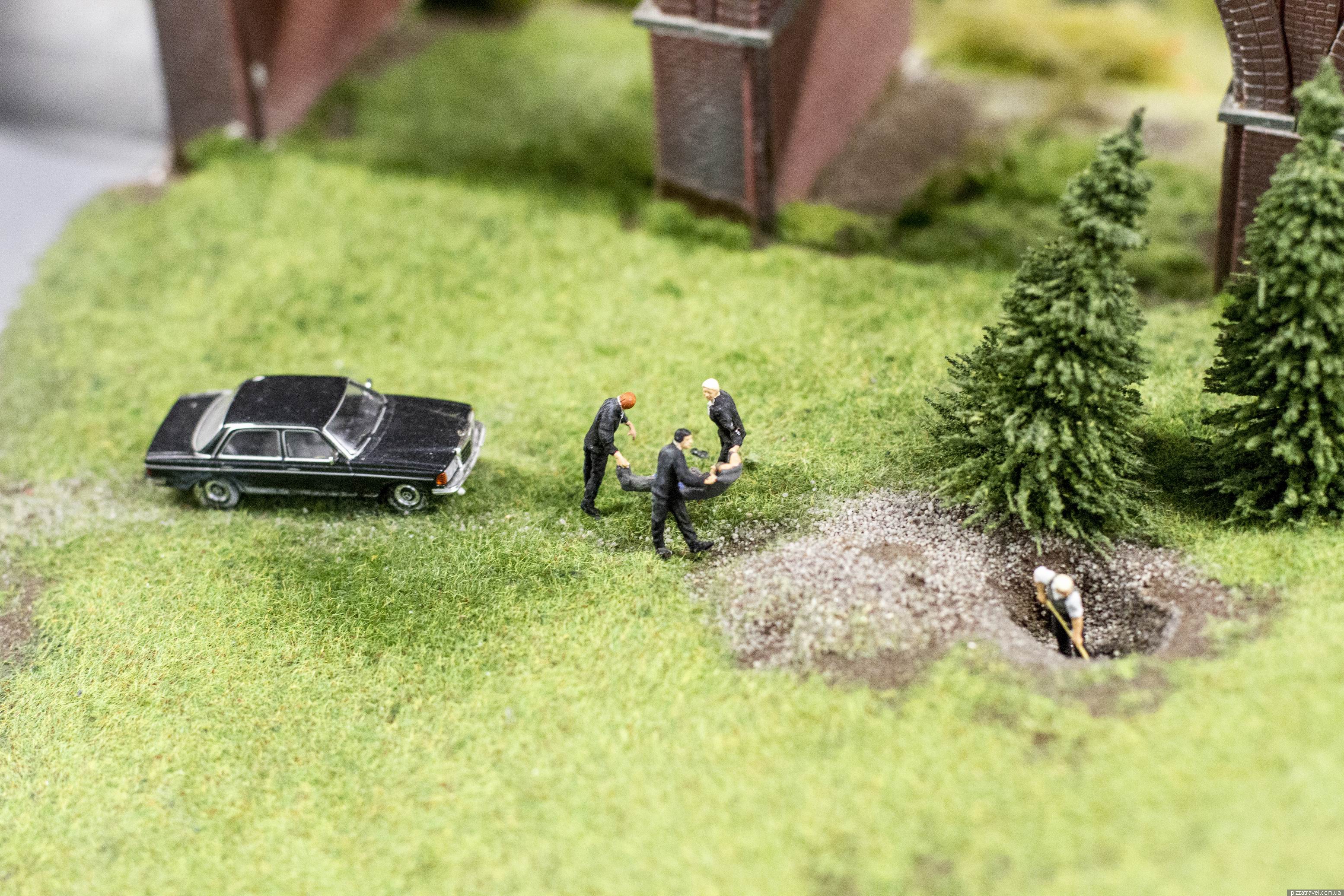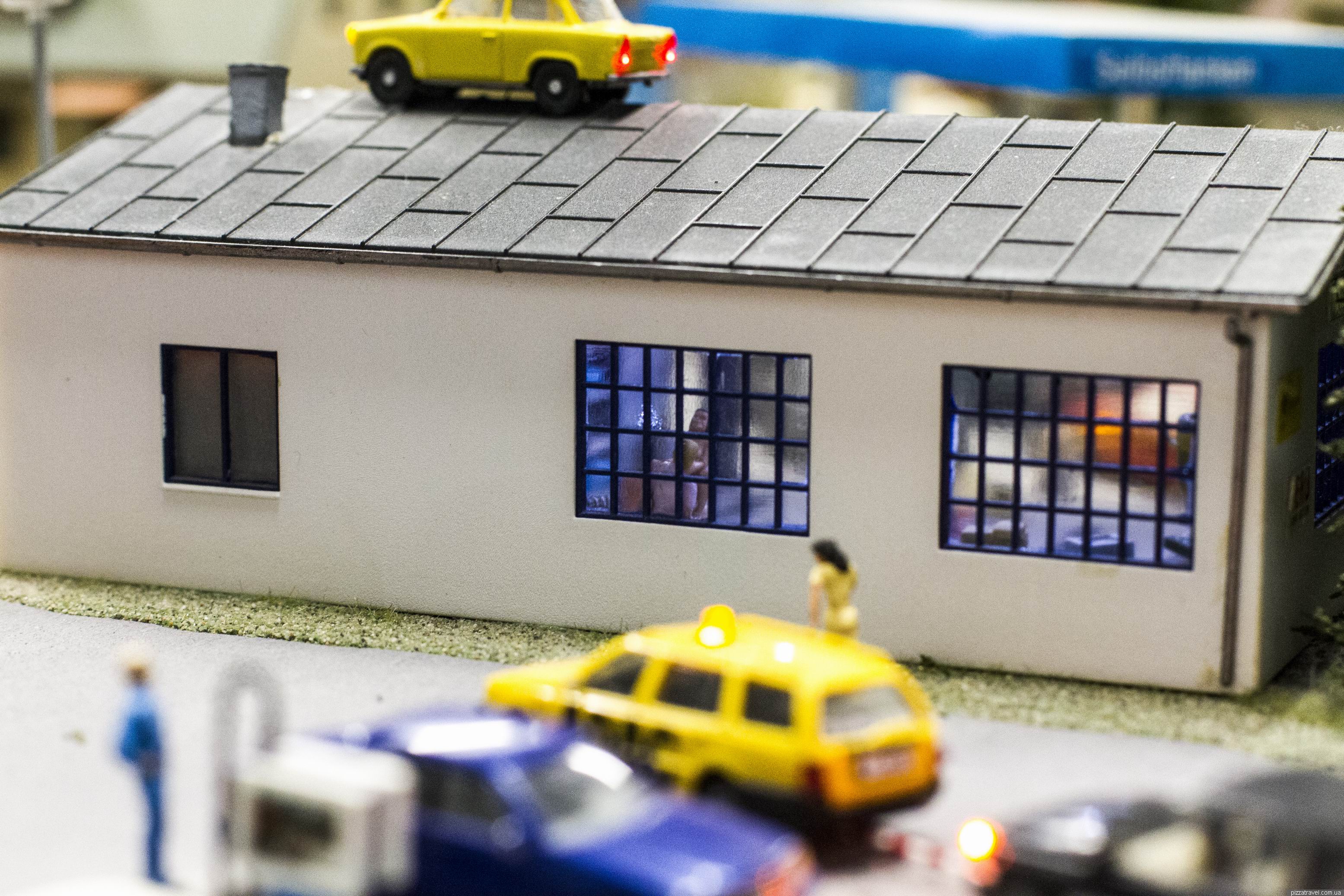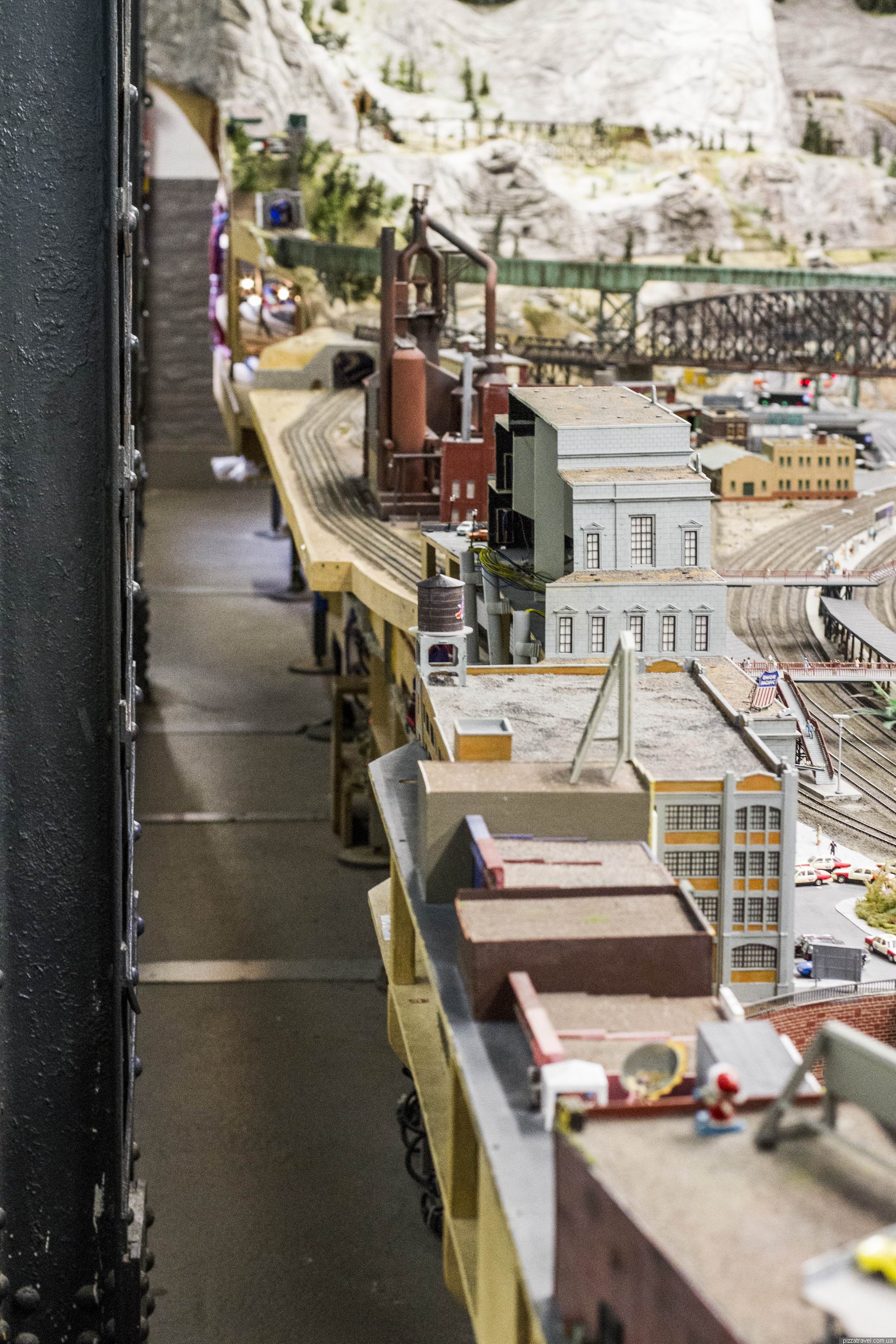 Just imaging more than 1,000 moving trains, hundreds of thousands of figures of people, ten thousand of cars. Many cars also move autonomously. However, most visitors only see the facade of the layout. To go behind the curtains you have to take a private tour (unfortunately in German).