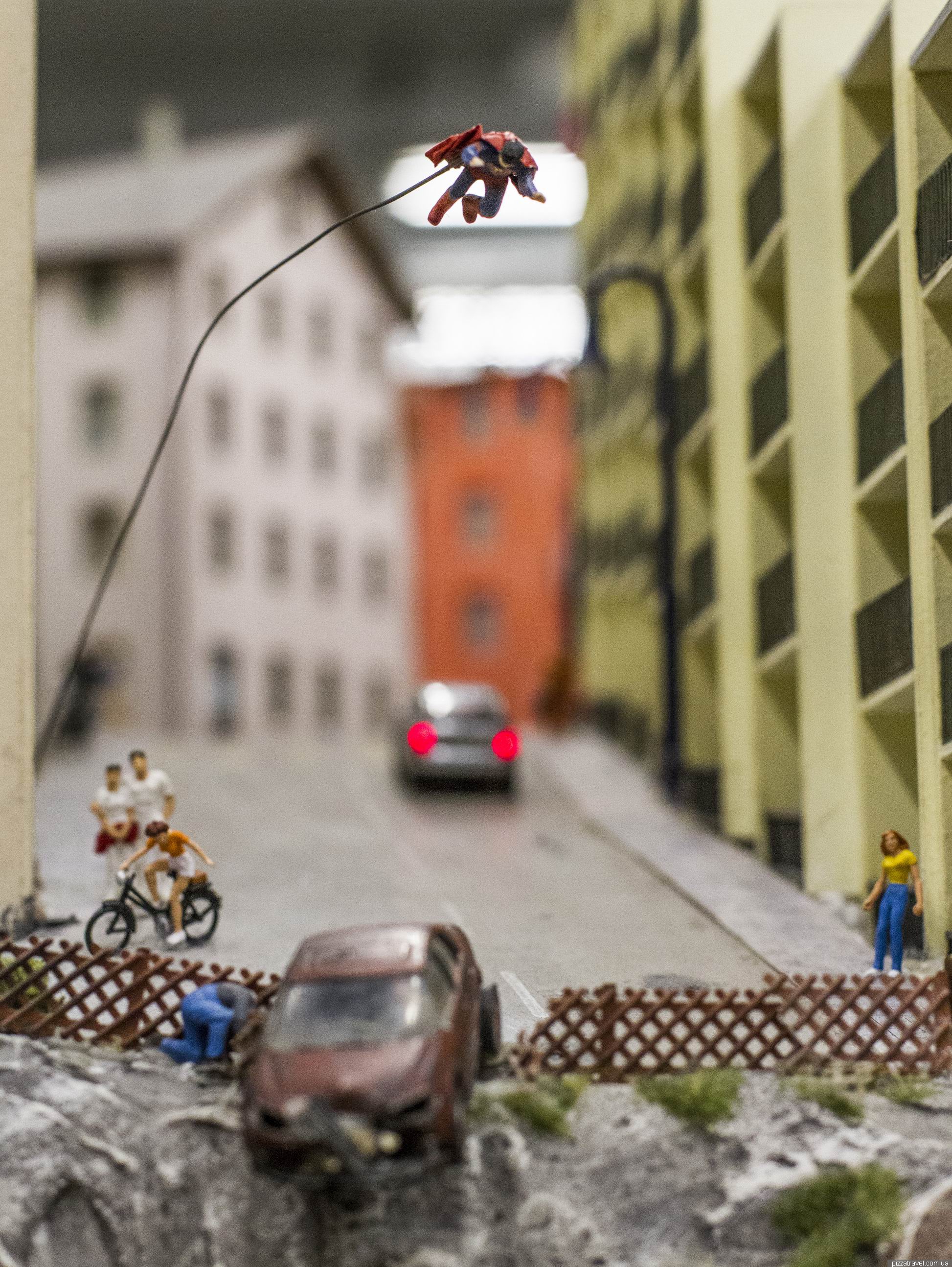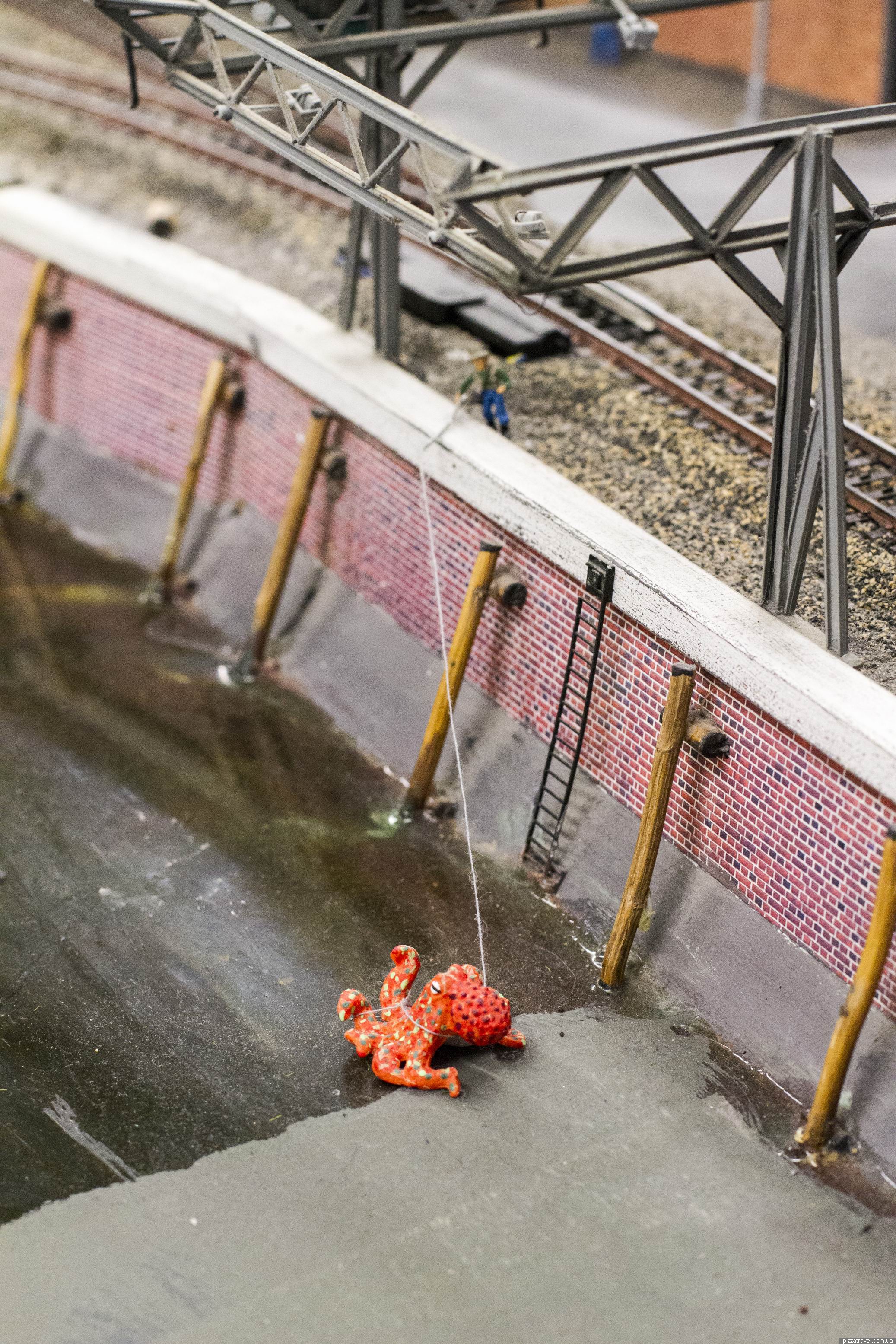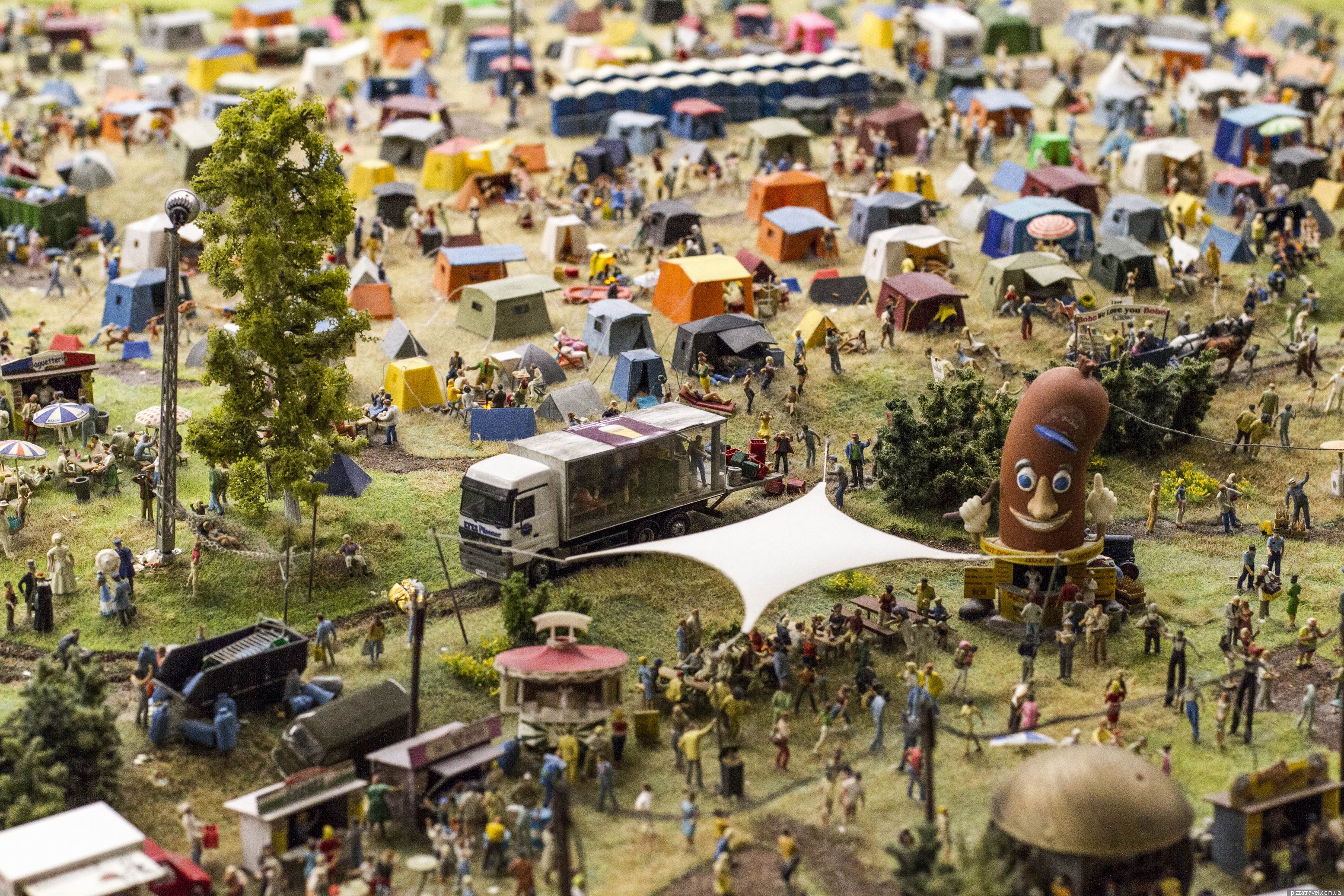 Just imaging more than 1,000 moving trains, hundreds of thousands of figures of people, ten thousand of cars. Many cars also move autonomously. However, most visitors only see the facade of the layout. To go behind the curtains you have to take a private tour (unfortunately in German).