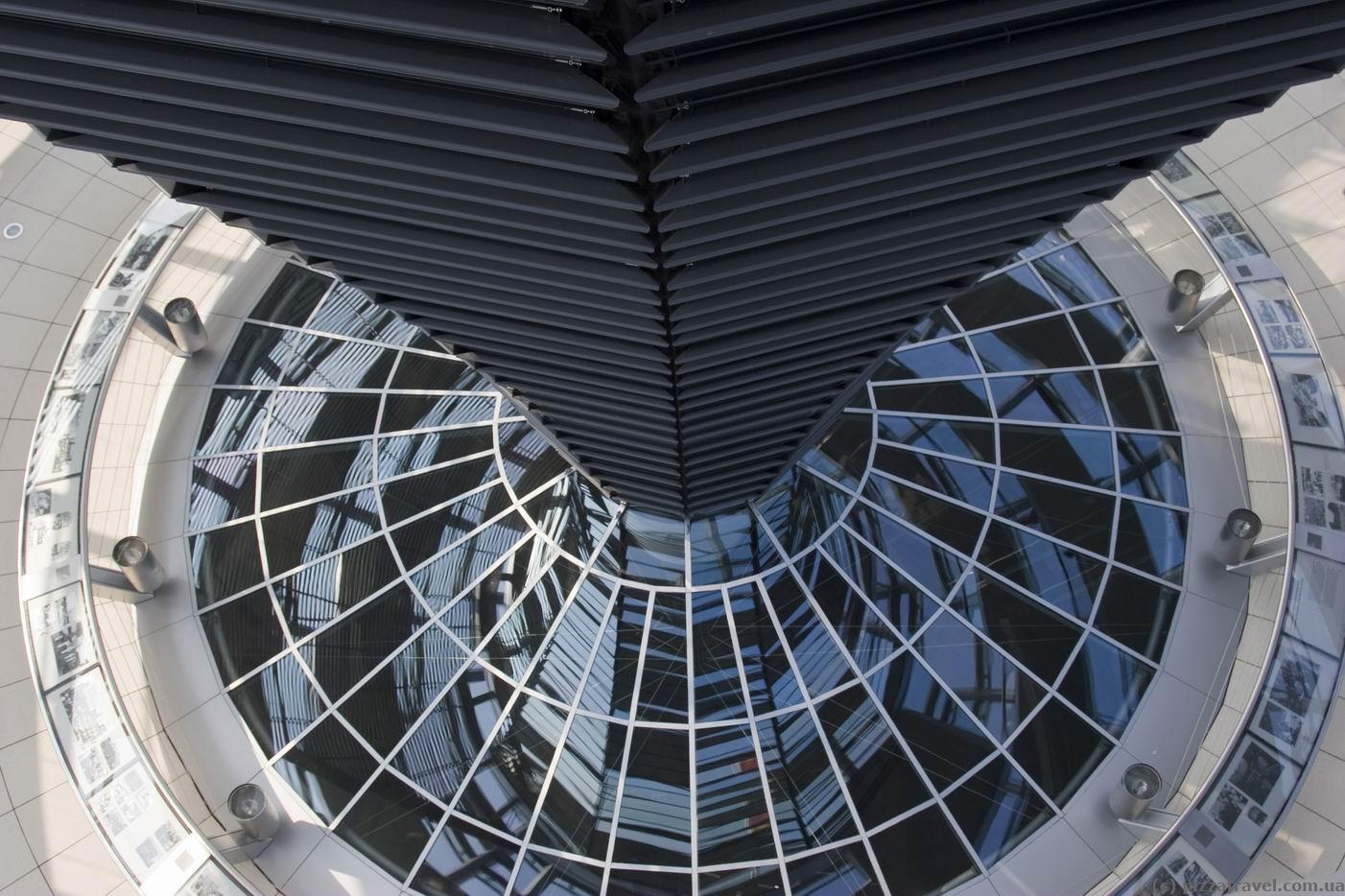 A mirrored cone in the center is very interesting. It was made so that the sunlight reflects from it and falls into the main room of the parliament. Special software monitors the seasons and light intensity and adjusts the rotation of mirrors. This construction was invented by British architect Norman Foster, whose project won an international competition in 1995. Curiously, projects of German architects were not among the finalists. 600 million Deutsche marks was spend on full reconstruction of the Reichstag.