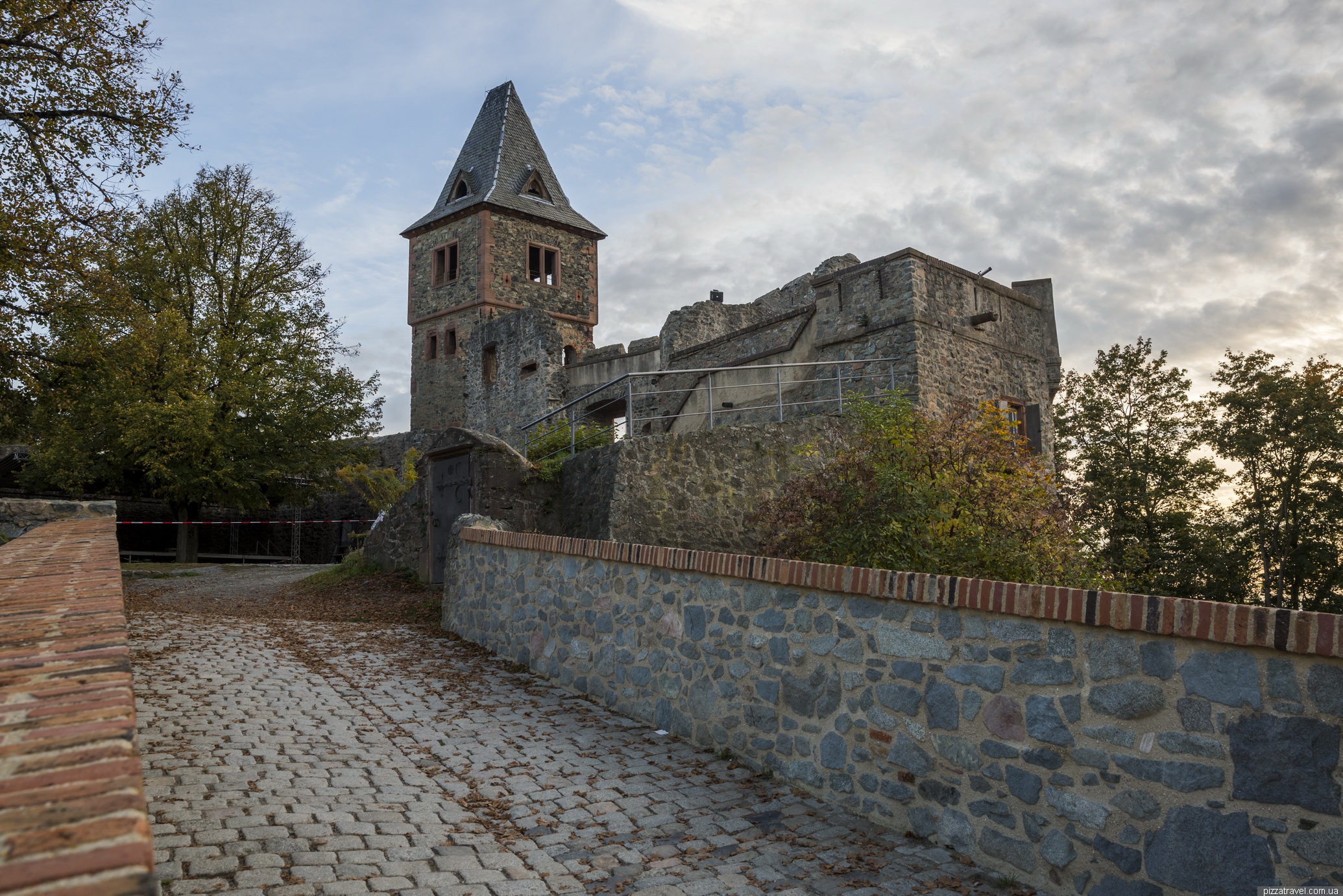 Getting there: Parking coordinates N 49 47.525 E 8 40.097. Not possible to reach by public transport, although it is possible to climb on foot from the town of Malchen. The footpath starts from the Frankensteiner str., approximately from here N 49 47.512 E 8 39.384. Malchen can be reached by tram 6 and 8 from Darmstadt.