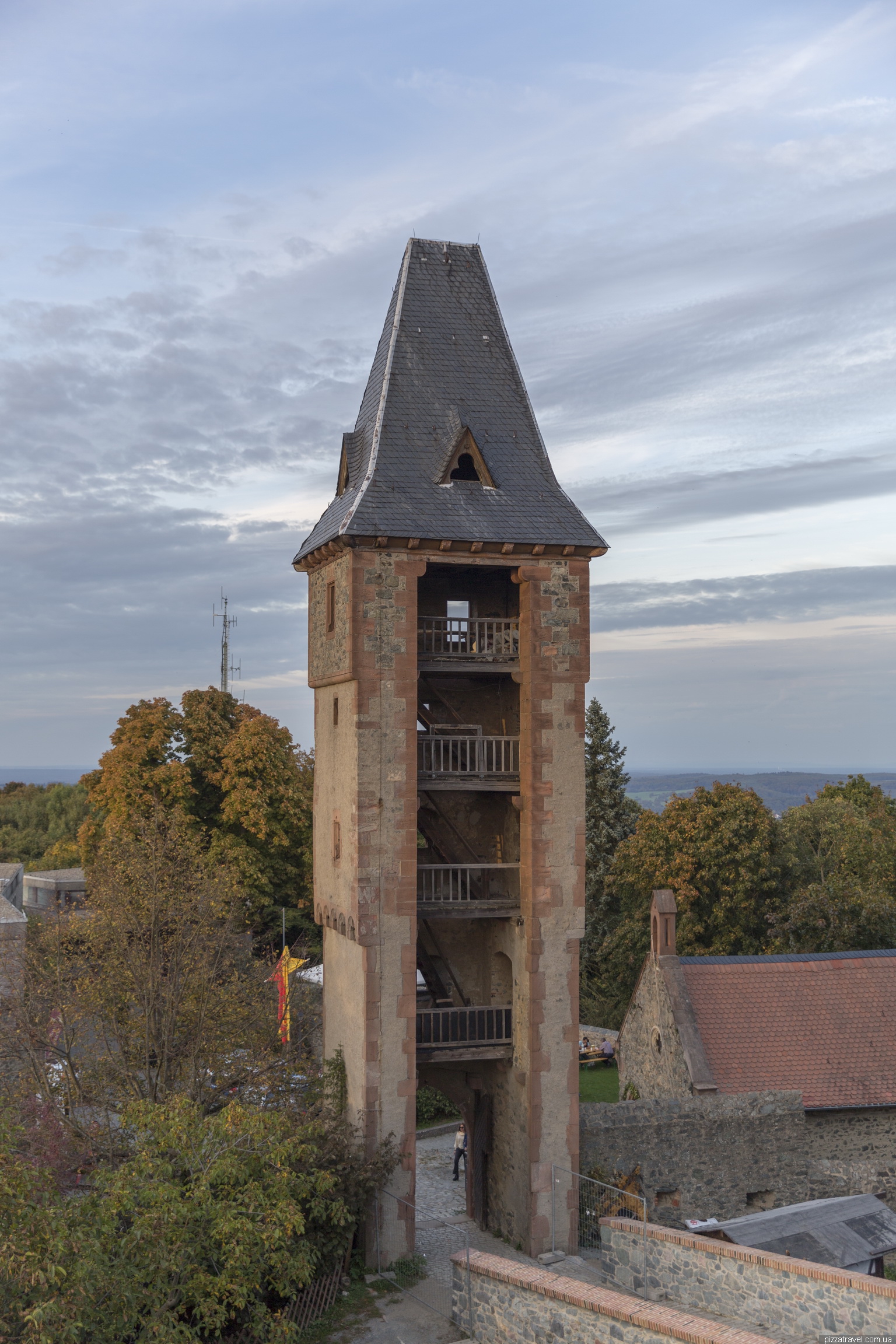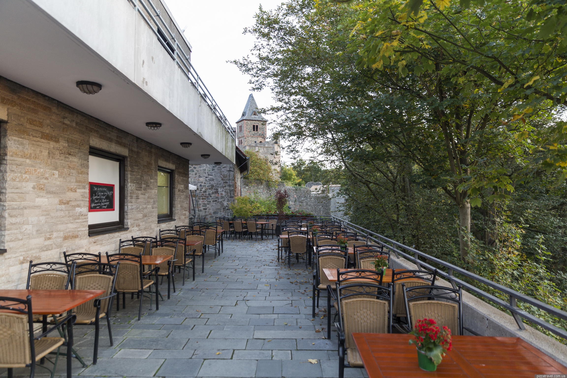 We arrived at the castle in the evening. There is a restaurant overlooking the sunset, where you can dine.