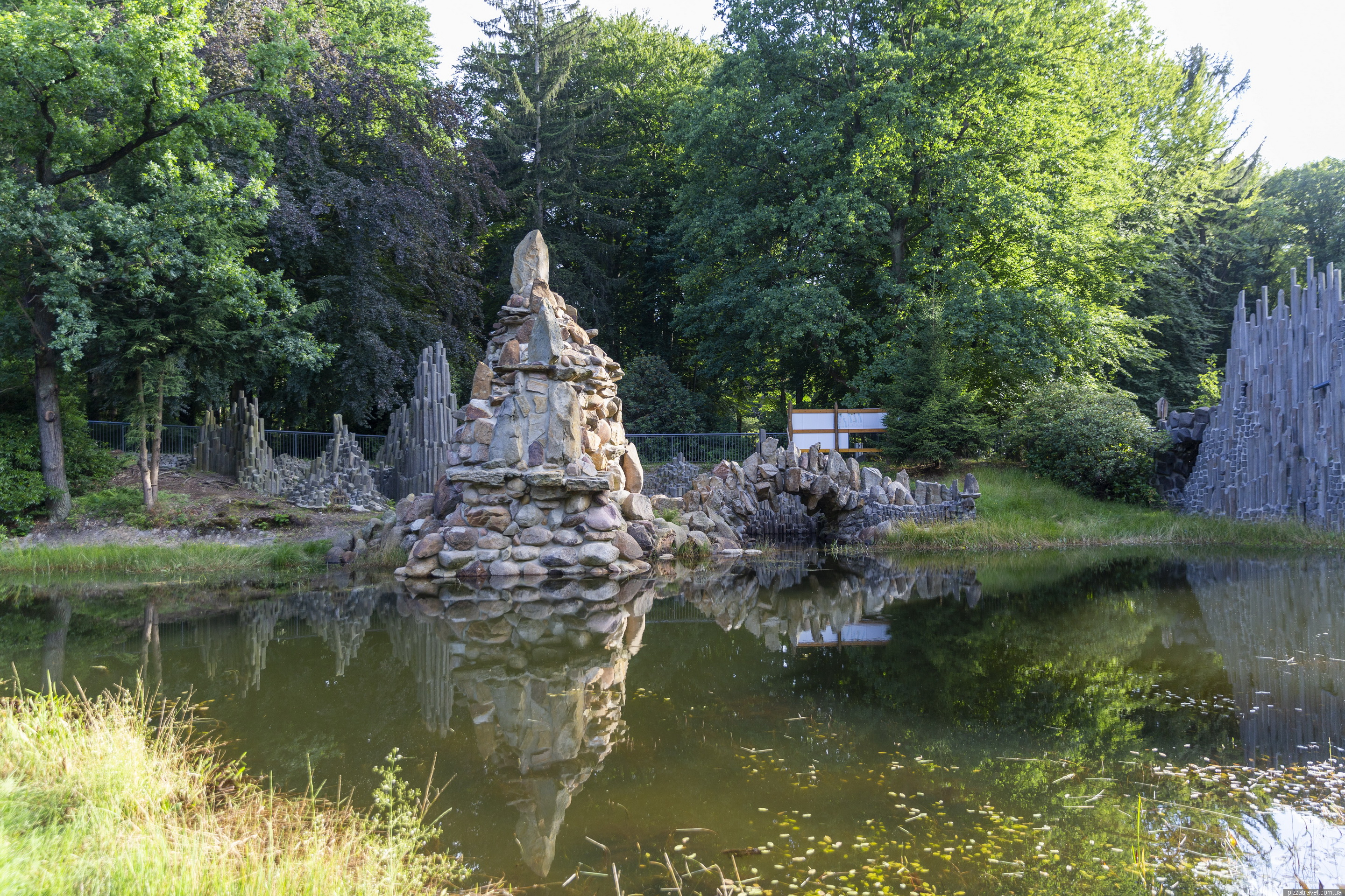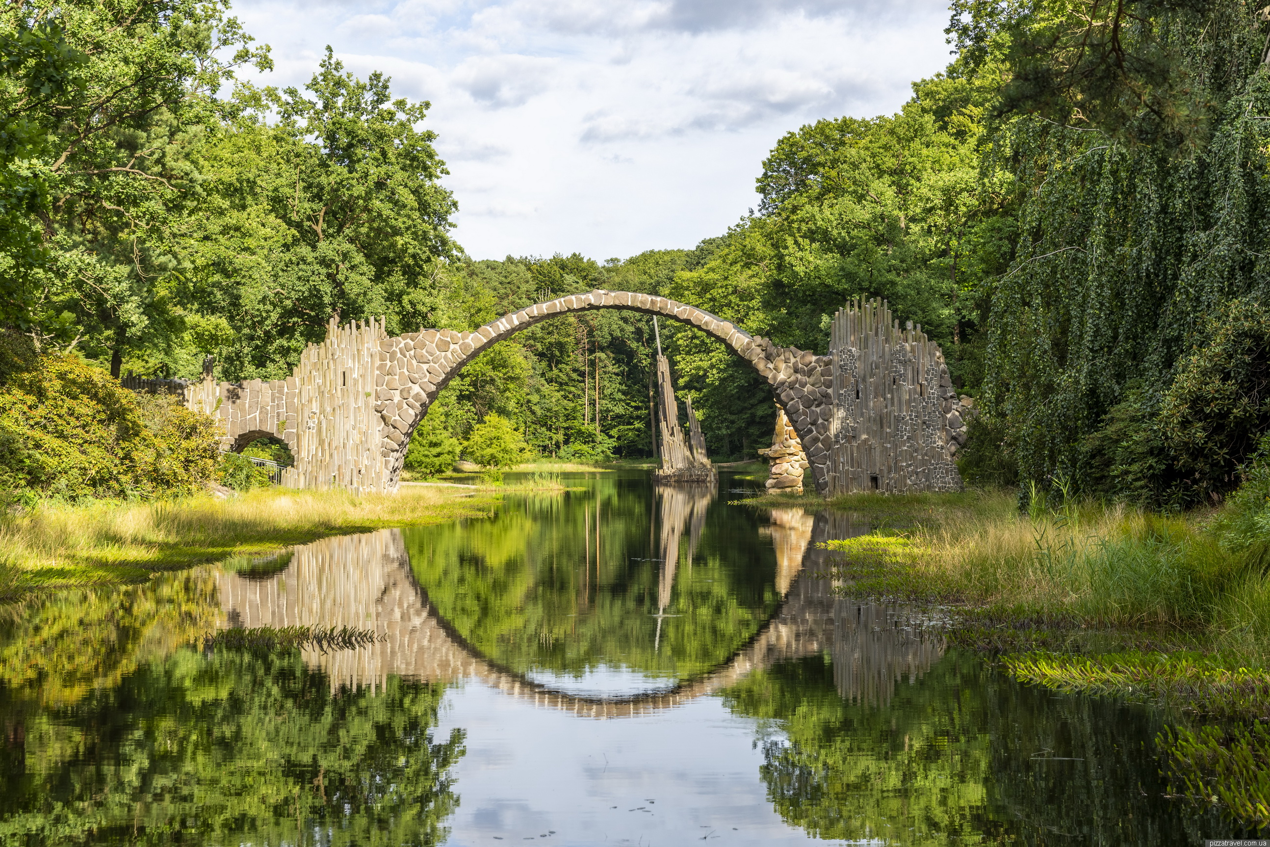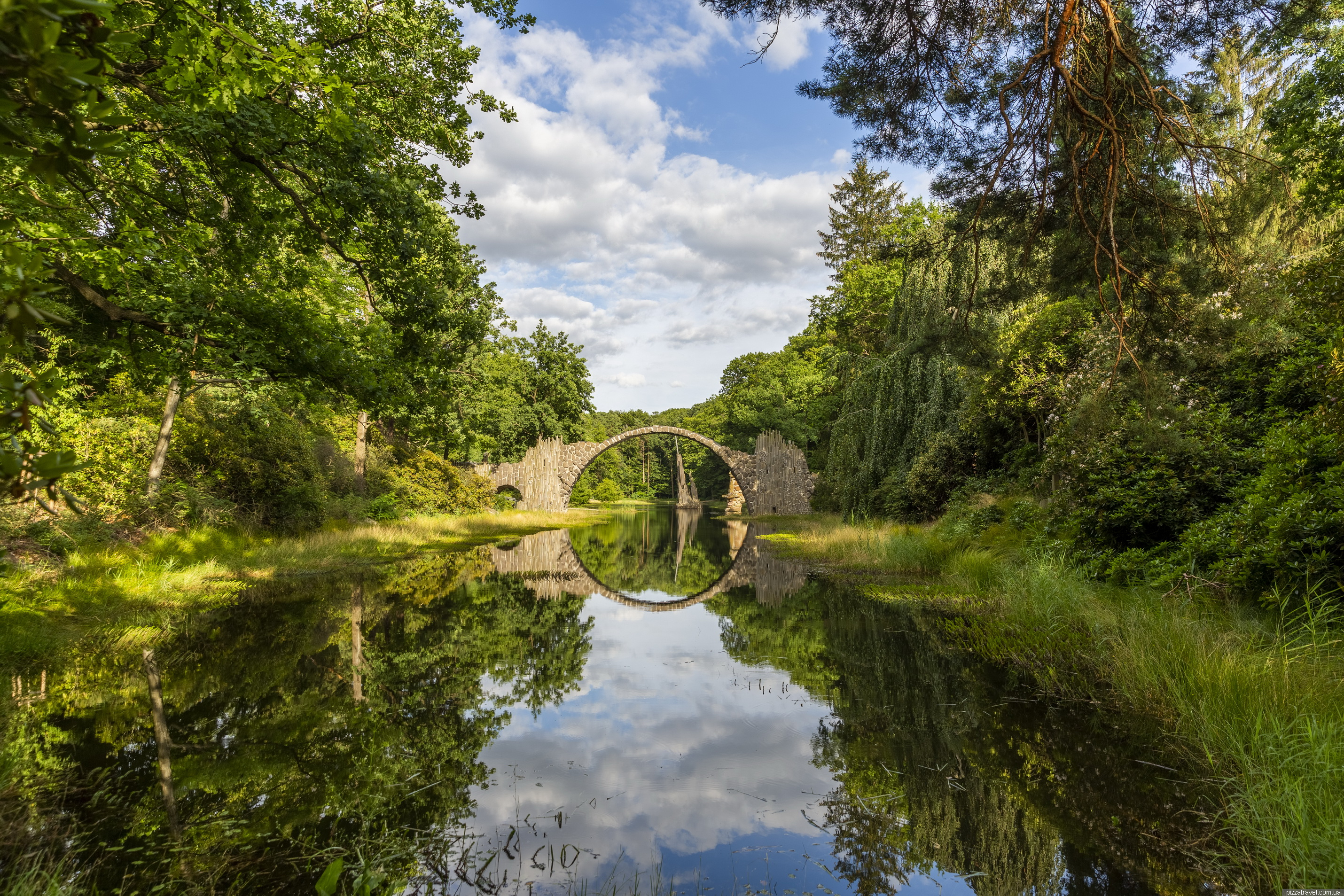 It was built in 1866-1875 by the landowner Herrmann Friedrich Roetschke. In addition to the bridge, you can walk around the lake and see some other art objects, in particular a grotto and a basalt organ.