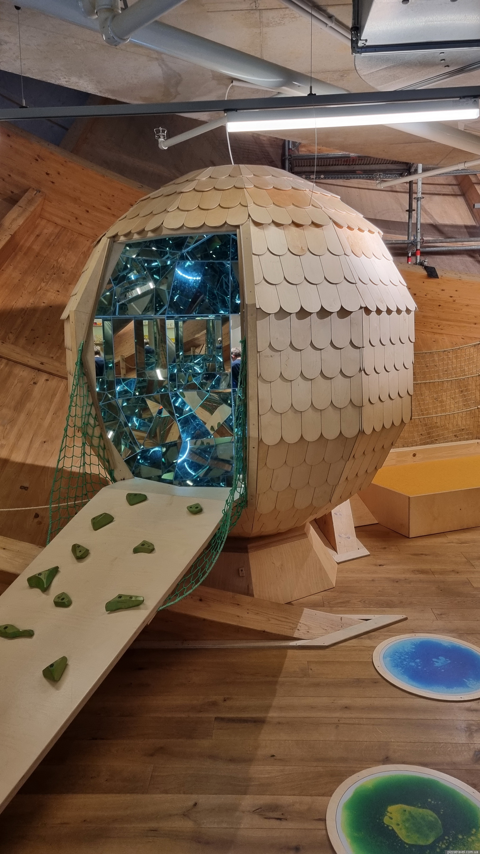 All the most interesting things are located in the main building, built in the shape of a whale. On the lower floor there is a simple cafe and a children's playground.