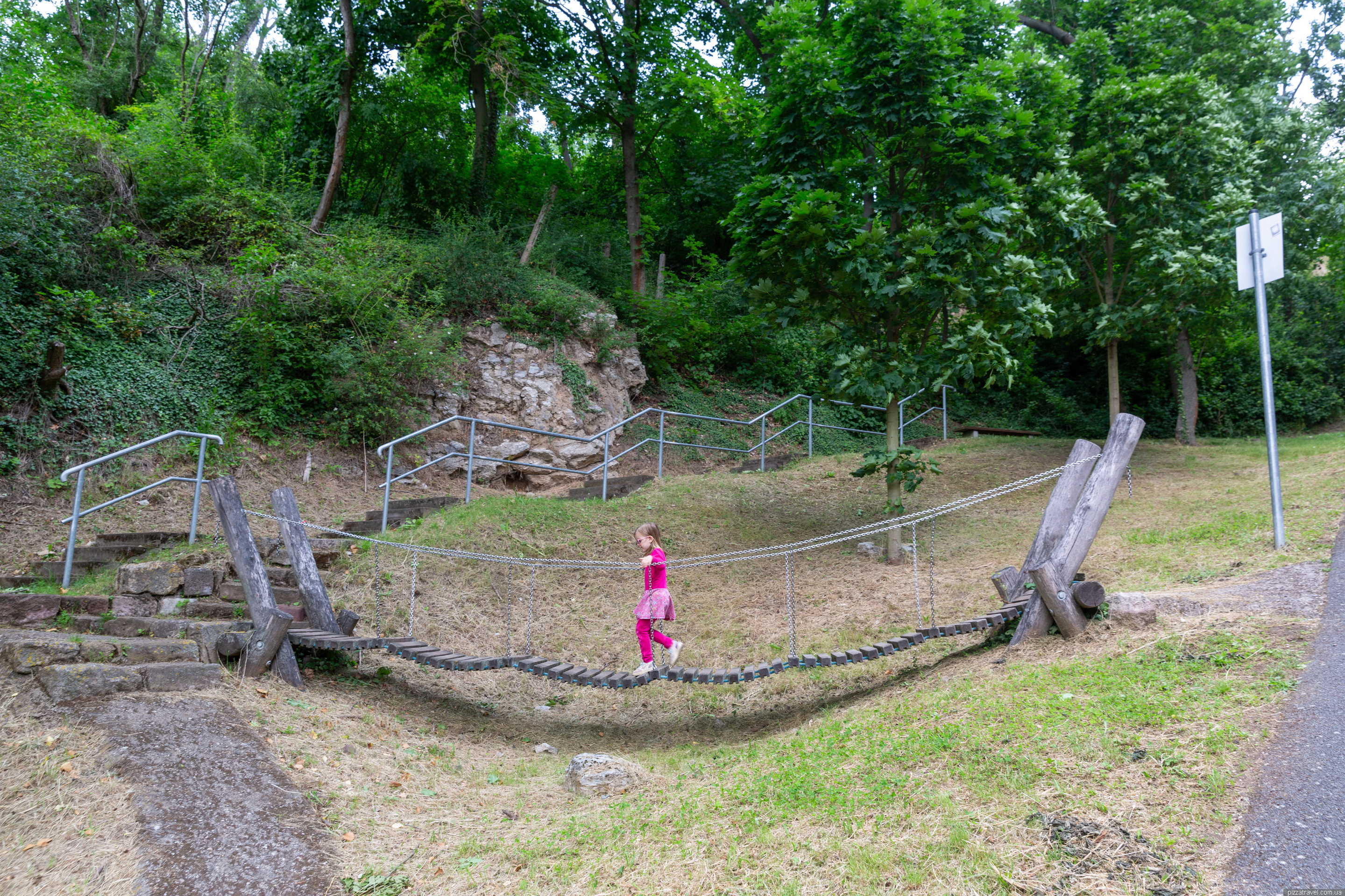 Medieval ruins can be seen on the hill above the town, so we headed there. There is no old town with half-timbered houses, but the centre looks pleasant.