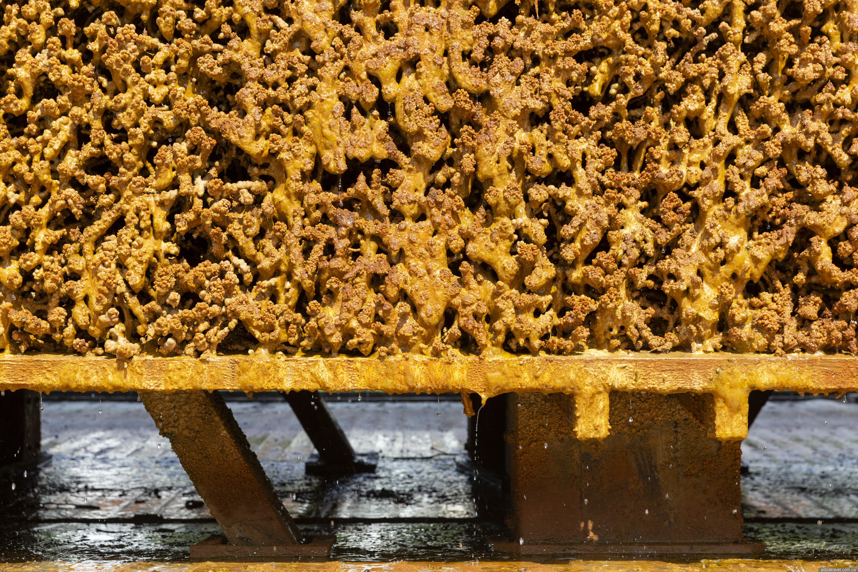 The medical name of the place is the open-air inhalatorium (Freiluftinhalatorium). Evaporating salt water, creates air around it, like sea air. Such walls are used to treat respiratory diseases.