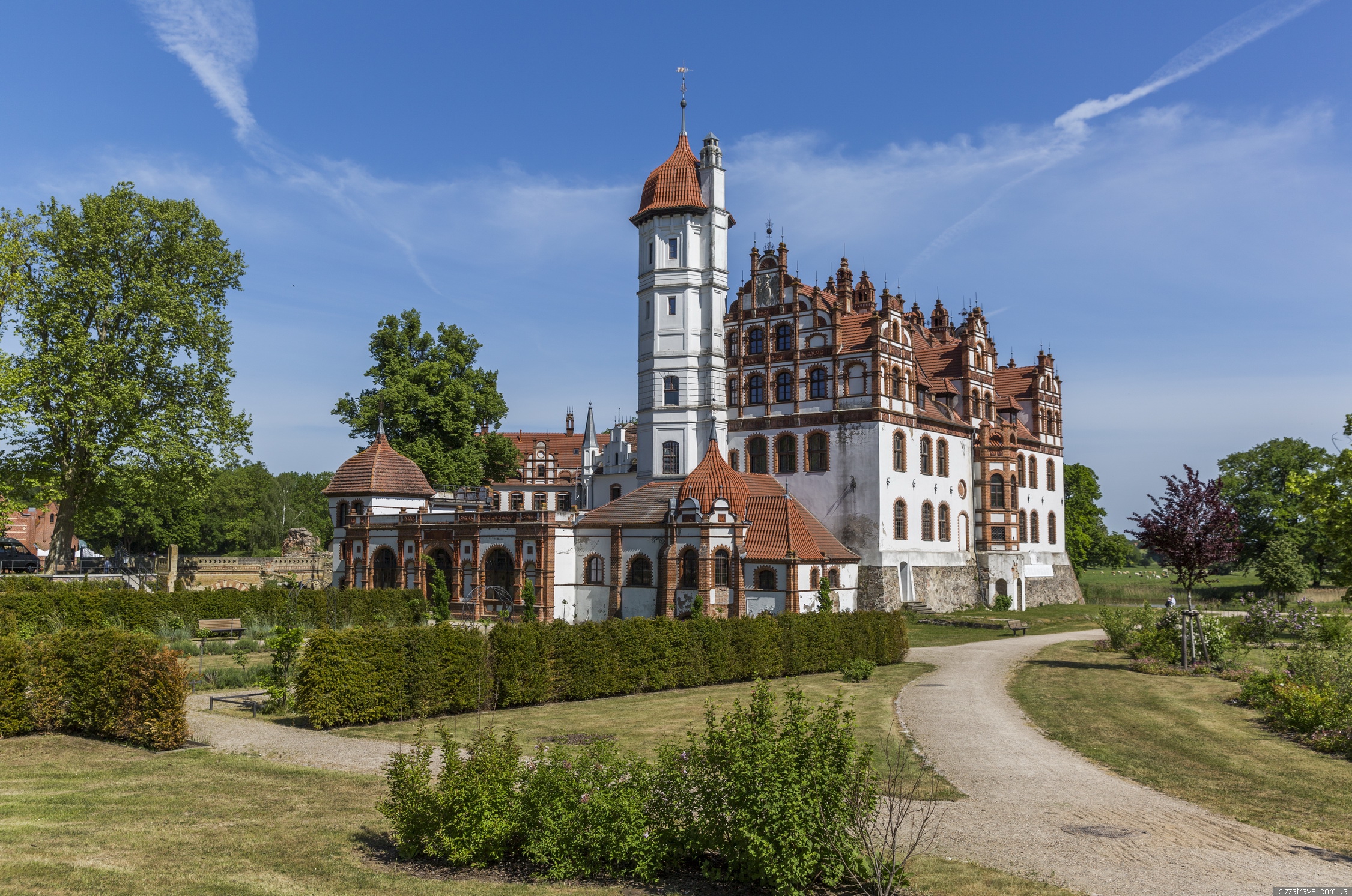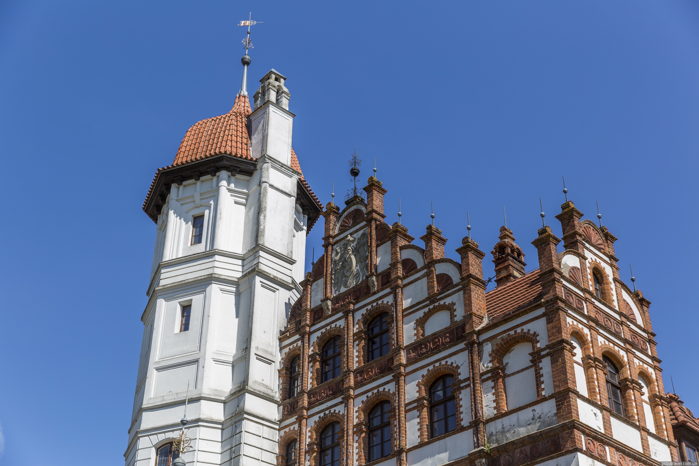 Then there was a fire, the southern wing burned down and the building was renewed one more time. This time the white walls were decorated with red brick, and this gave the castle its distinctive feature.