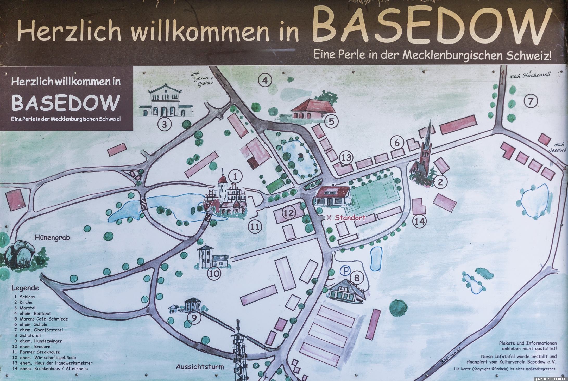 Getting there: parking N 53 41.882 E 12 40.751. Take the train to Malchin, continue by bus to Basedow (Meckl), use bahn.de.