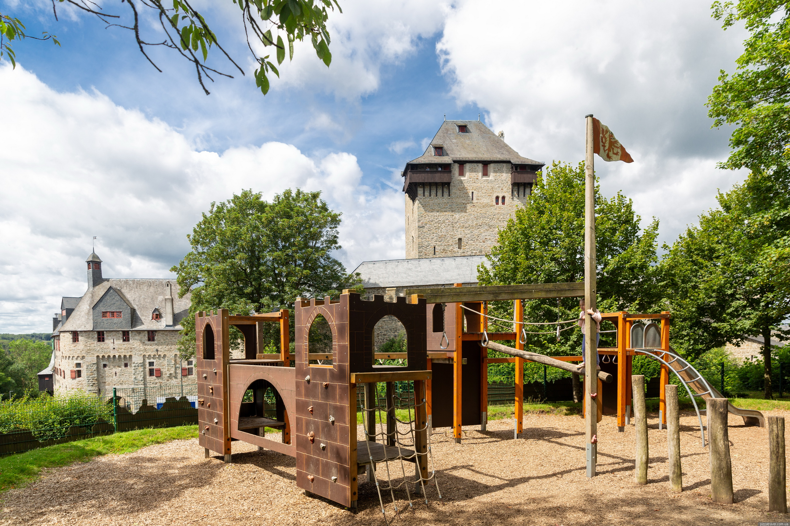 The main building of the castle was built in 1218-1225 by Archbishop of Cologne, Count Engelbert II. In the XIII-XIV centuries the castle was the principal residence of the Counts of Berg. In the XV century the castle had been reconstructed, after which it became a hunting lodge and got its present name. The castle took part in battles and was destroyed by the Swedes in 1648. Reconstruction of the castle lasted 24 years and ended in 1914. This is one of the largest reconstructed fortifications in West Germany.