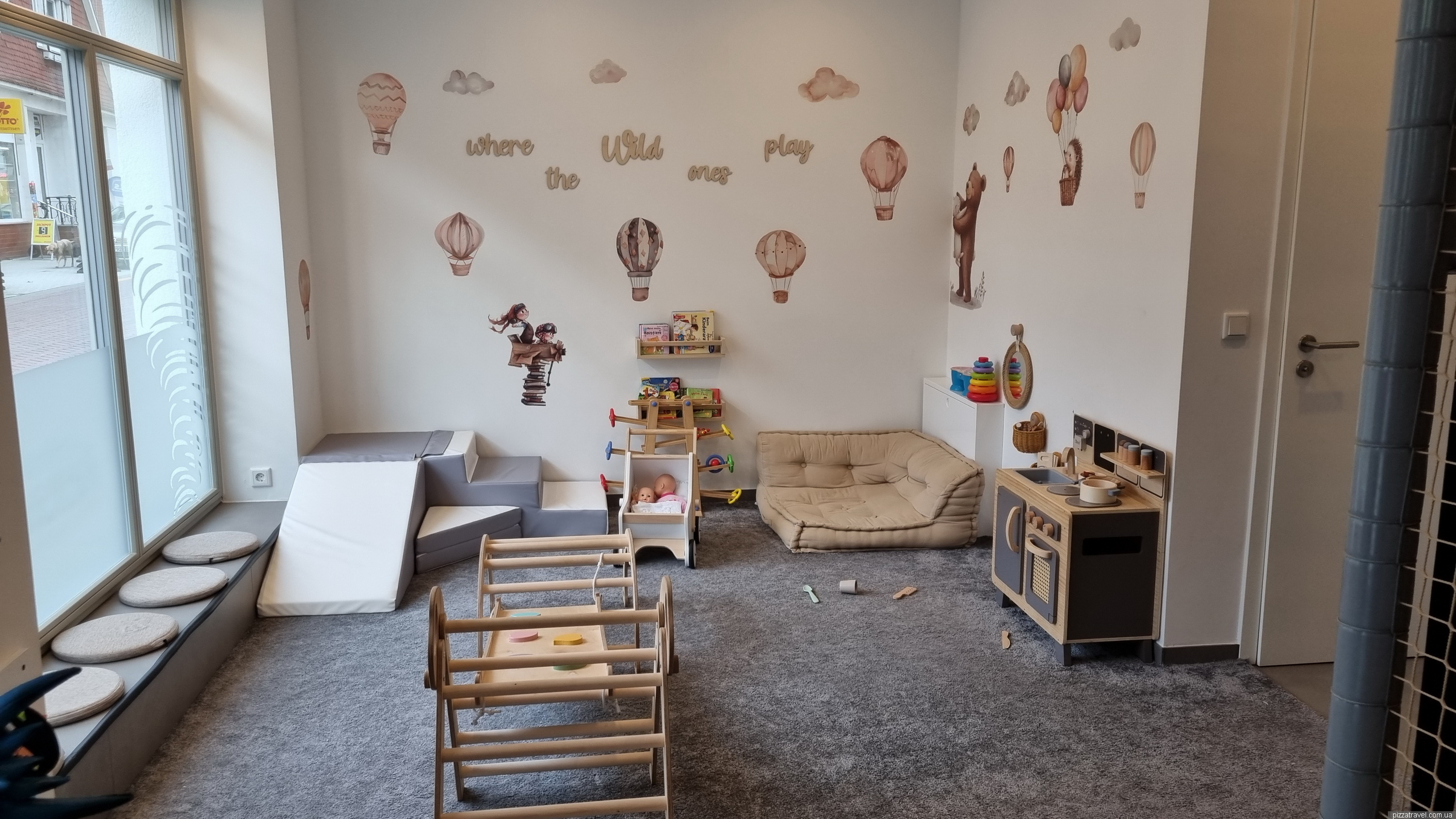 There is a children's corner and a playground outside, which is open during the warm season. A calm, friendly atmosphere. There is also a playground in the park nearby (52.265806, 9.761000).