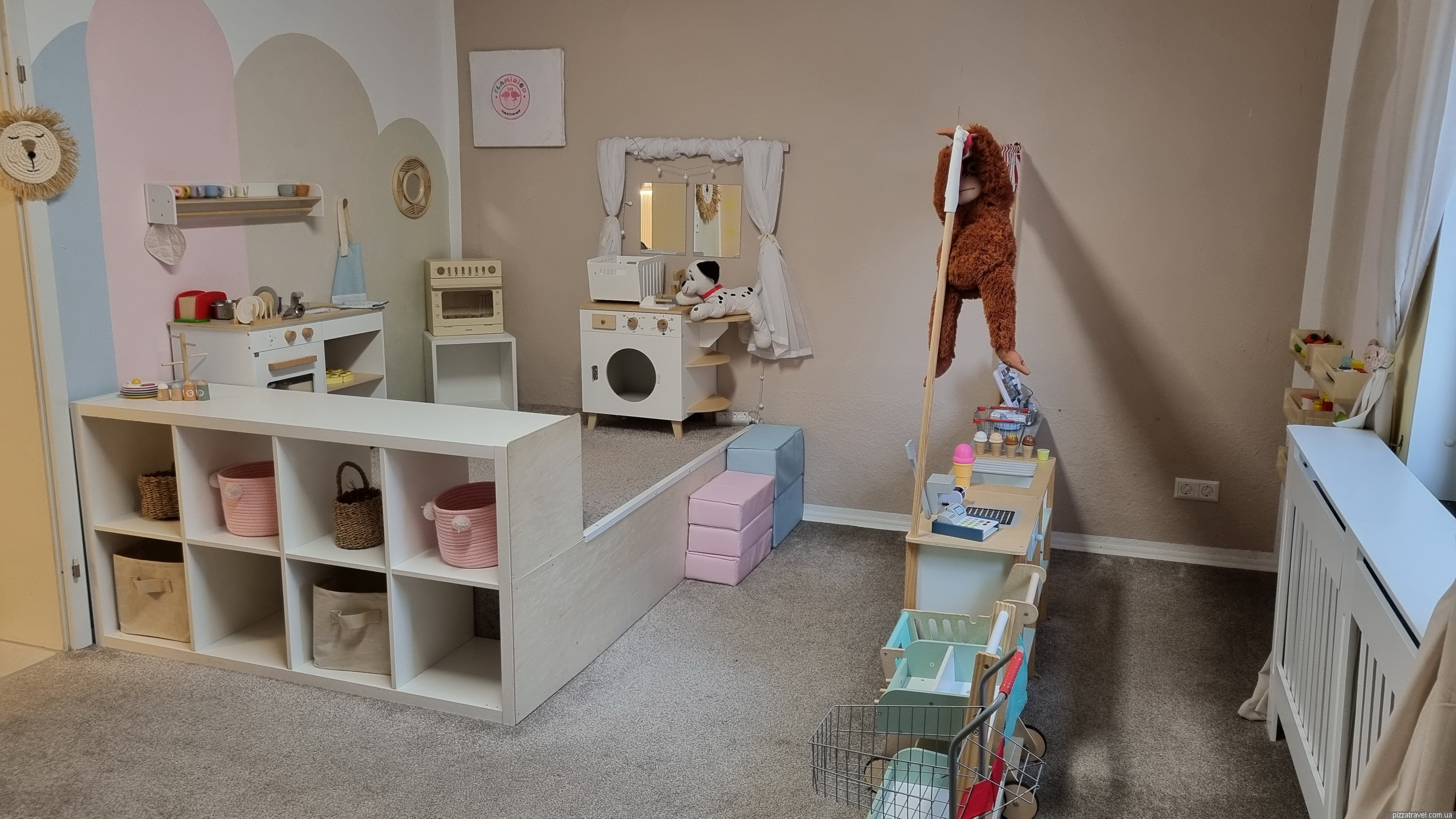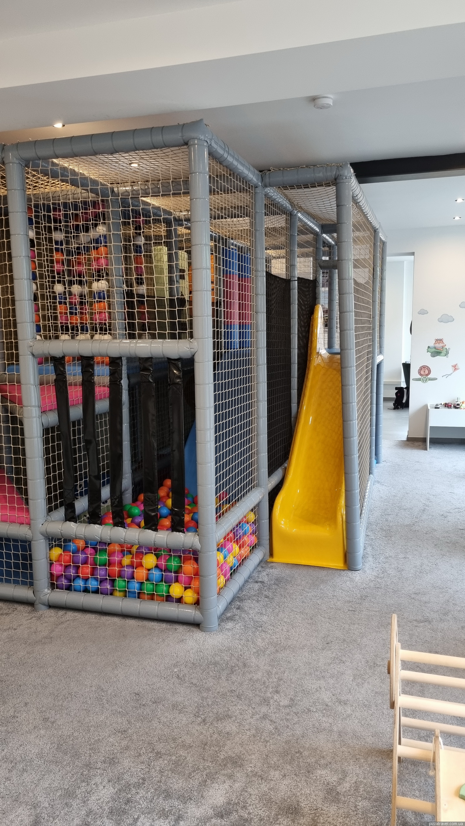 In summer they put entertainment for children, sandpit, toys, bouncy castle on the territory.