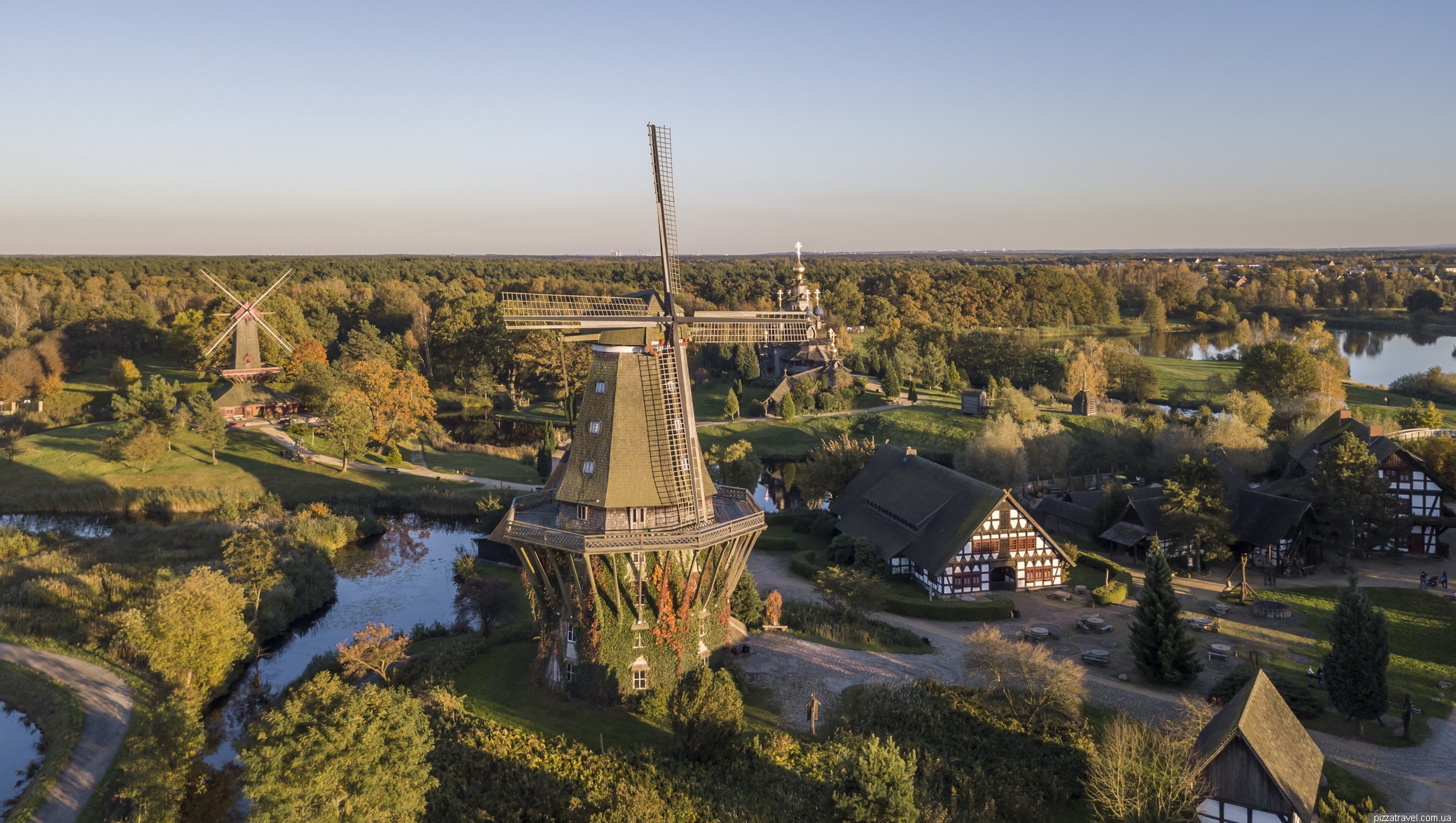 There are mills from all over Europe and even one from Korea. In 1988, back in the times of the USSR, the museum was presented with the Ukrainian mill Natalka. Its prototype stands in the city of Korsun-Shevchenskivsky and works as a restaurant and hotel (Google Street View).
