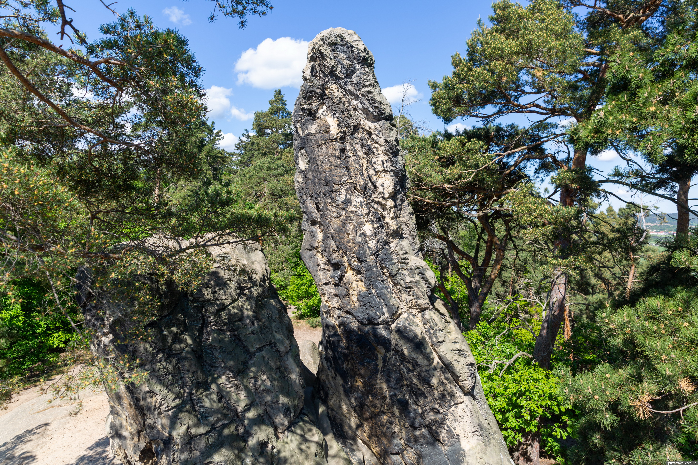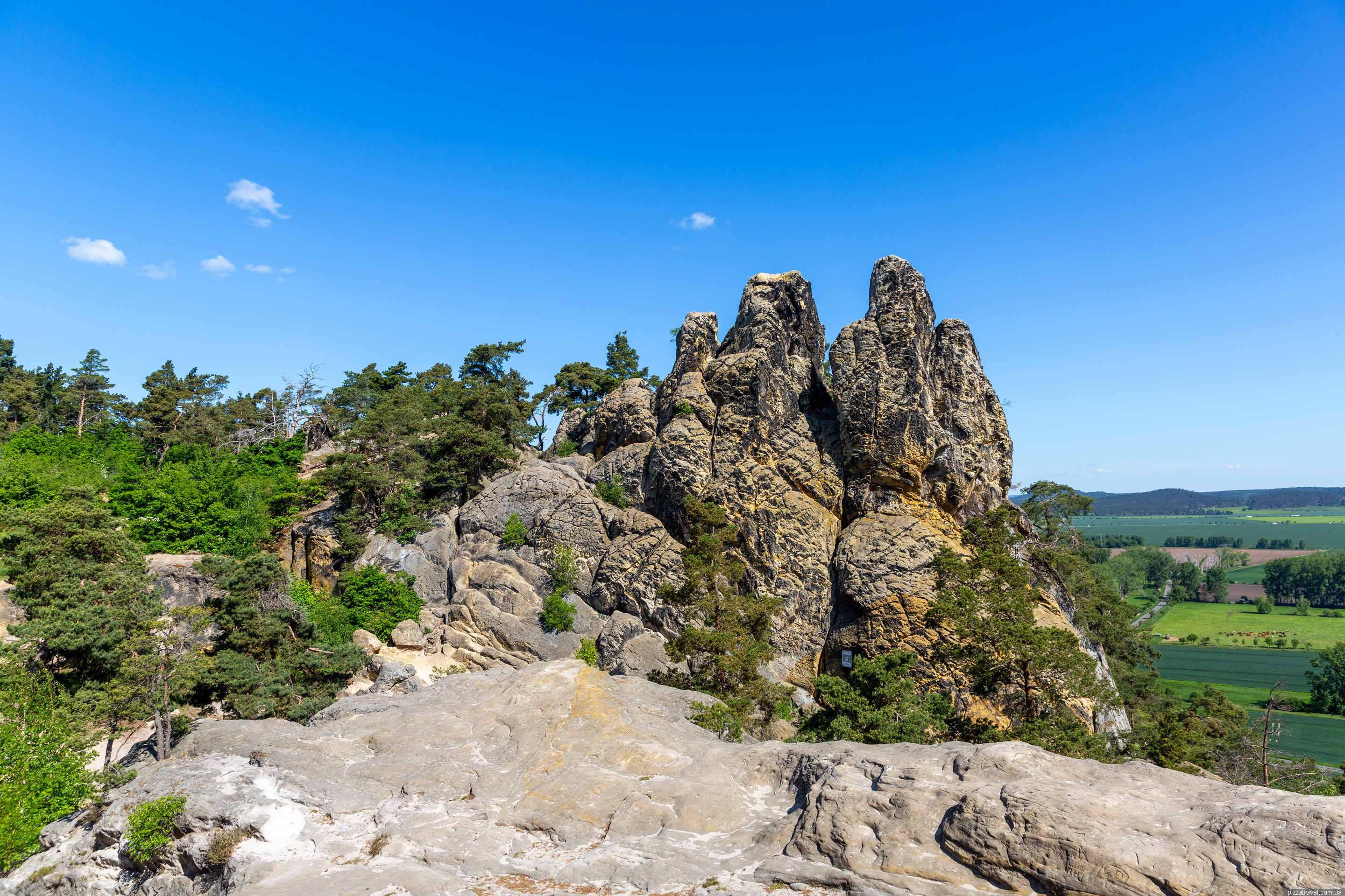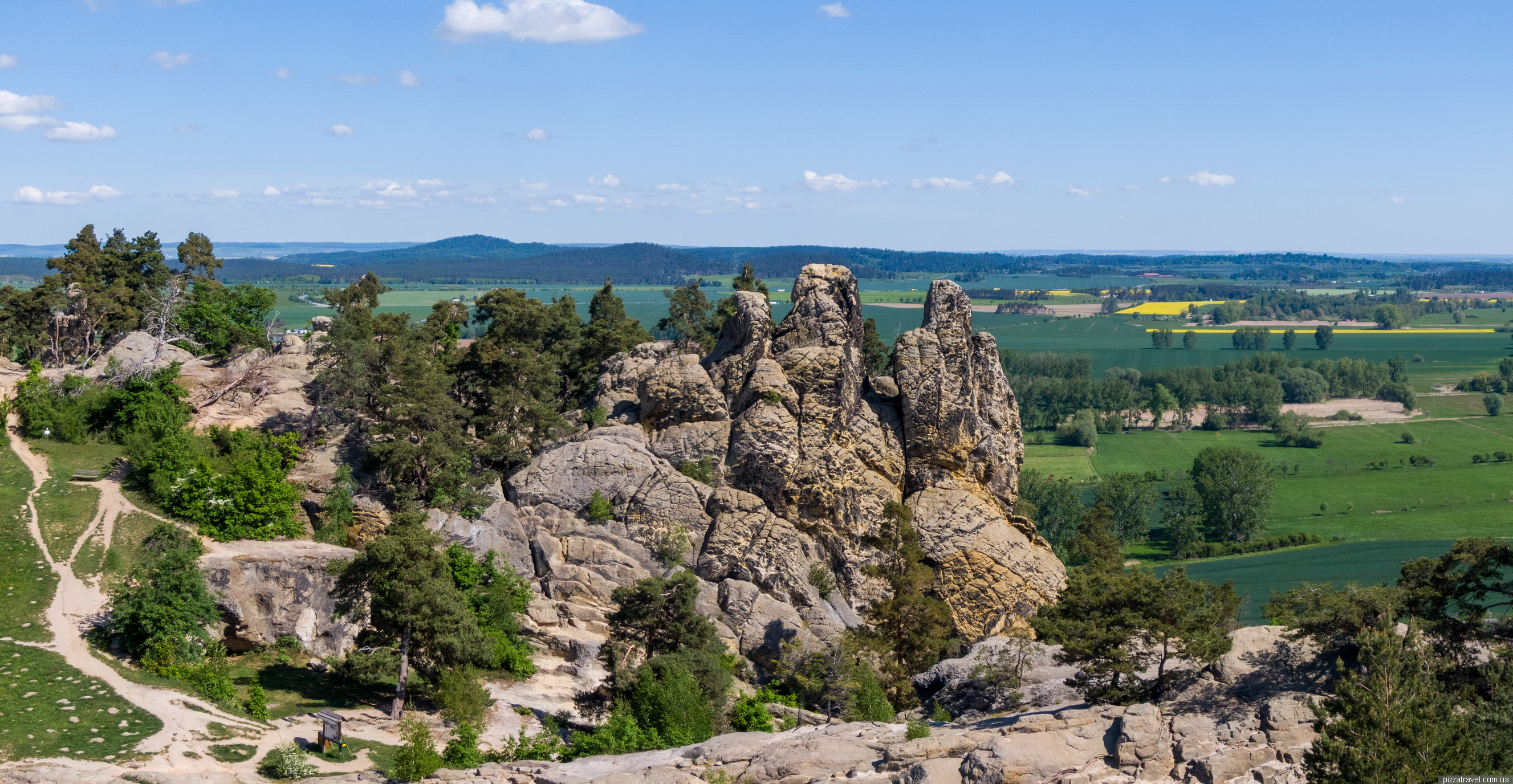 Unusual rocks in the Harz Mountains. They consist of three stone spires that resemble the towers of a medieval castle, which is why they were given the name ‘Hamburg Coat of Arms’ in the 19th century. Compare for yourself.