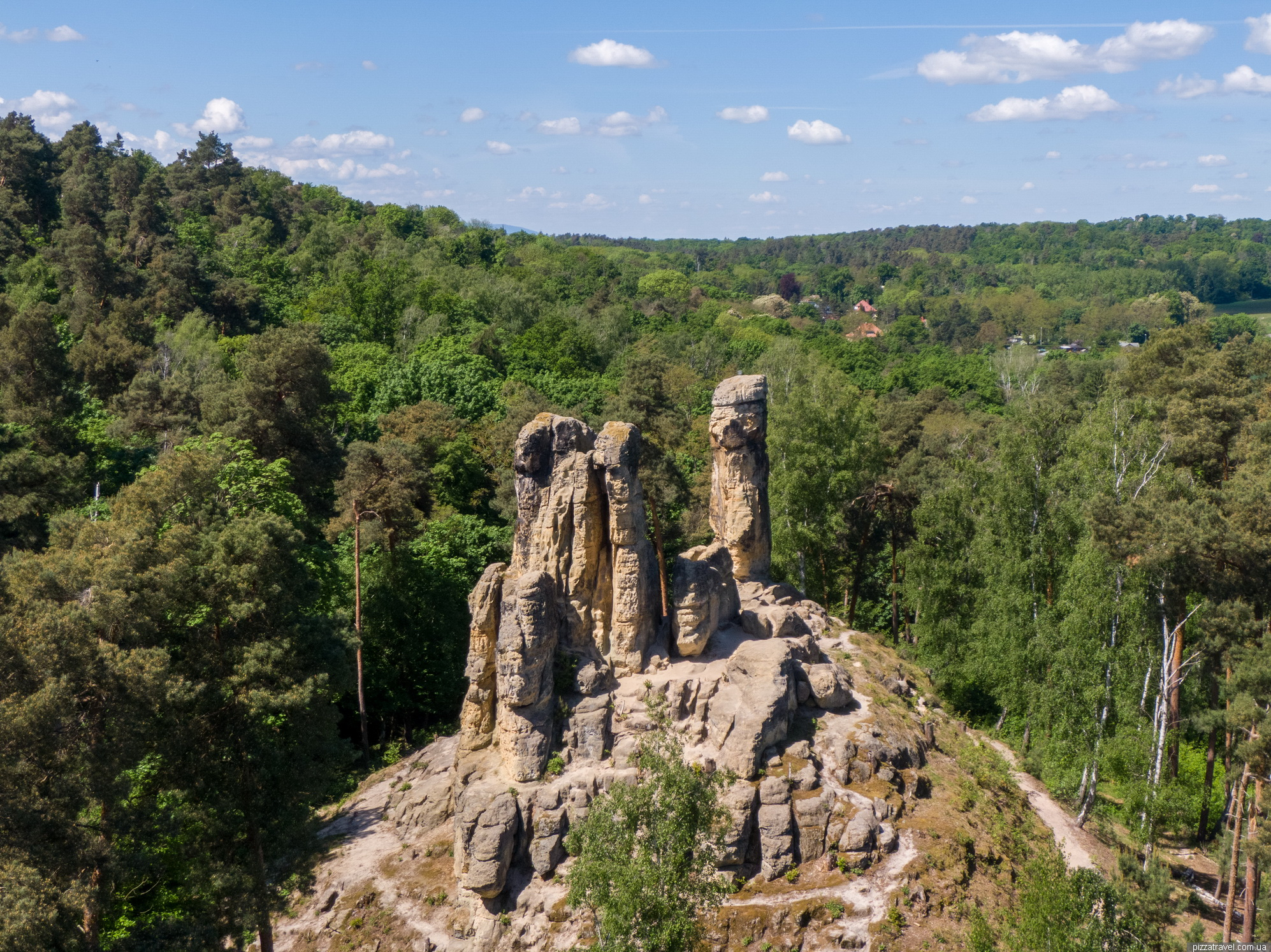 This photo was taken from a drone, but you can see the rocks from several viewing points. Here they are, near Hauptweg -