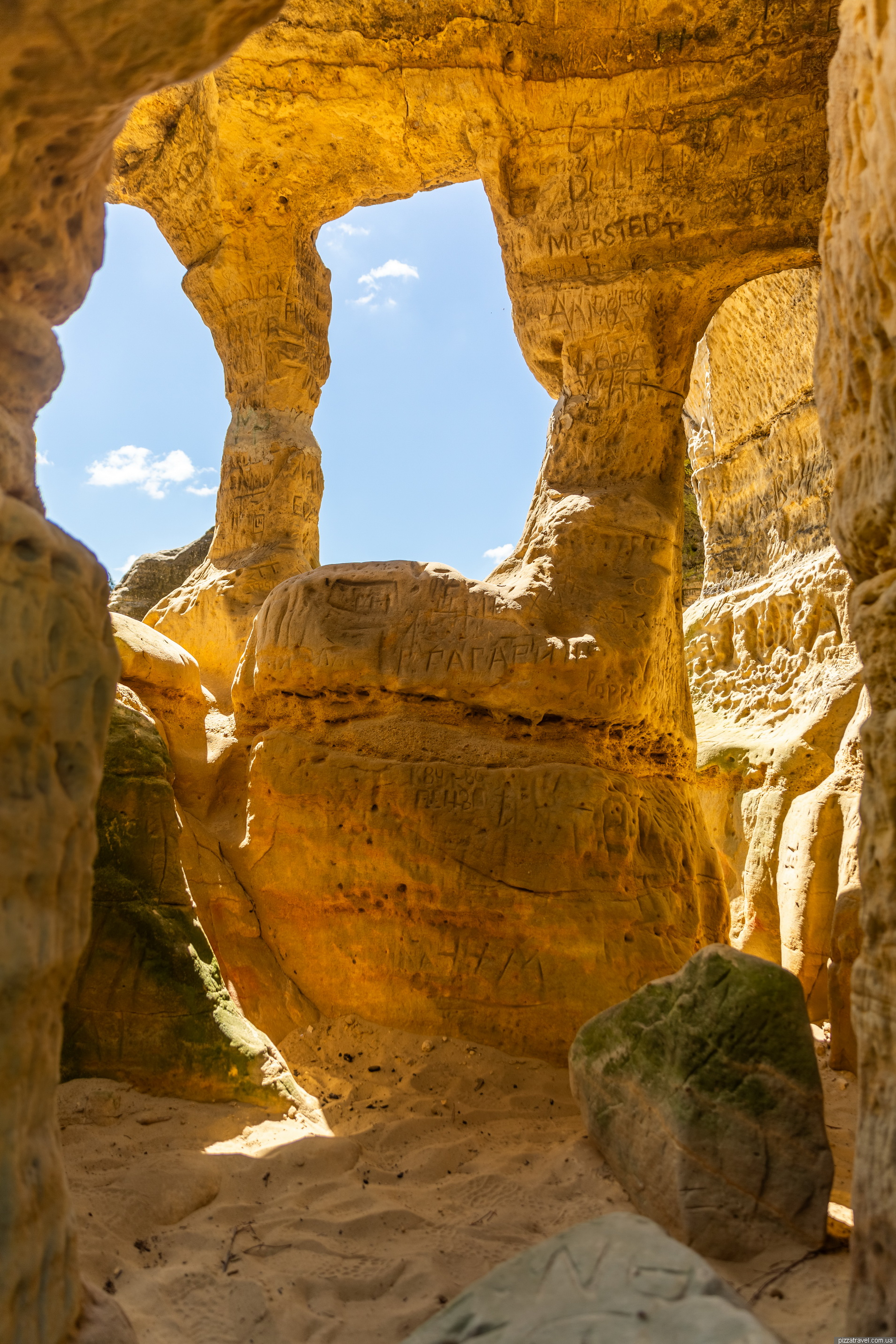 Walk a little further and you will see the most interesting rocks. You need to go around them and look for a path up behind the rocks. Getting to the top will not be easy; we even had our doubts at first. But then we started looking for options and managed to climb up. As you might have guessed, we went there without our daughter because it was too dangerous.