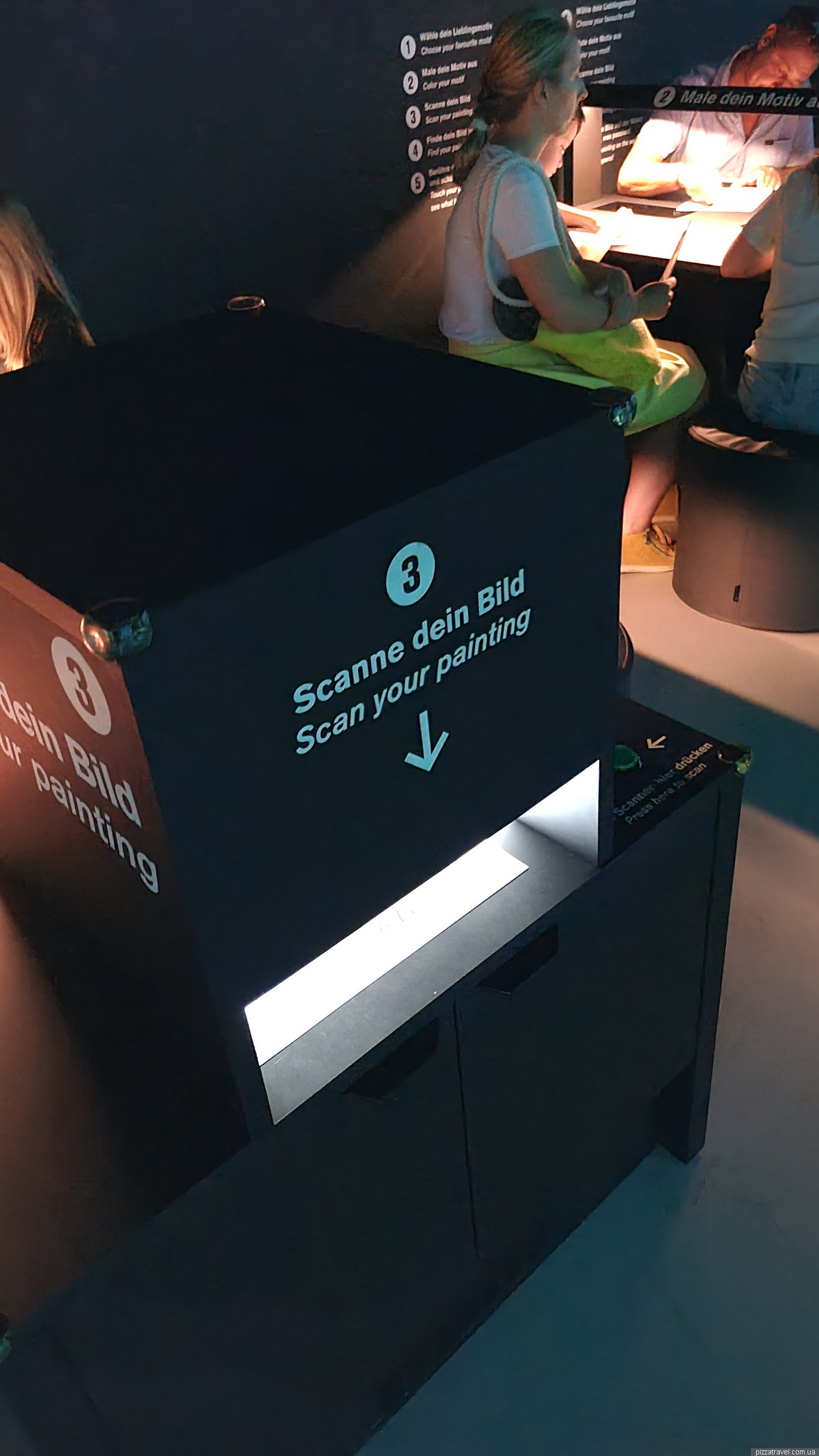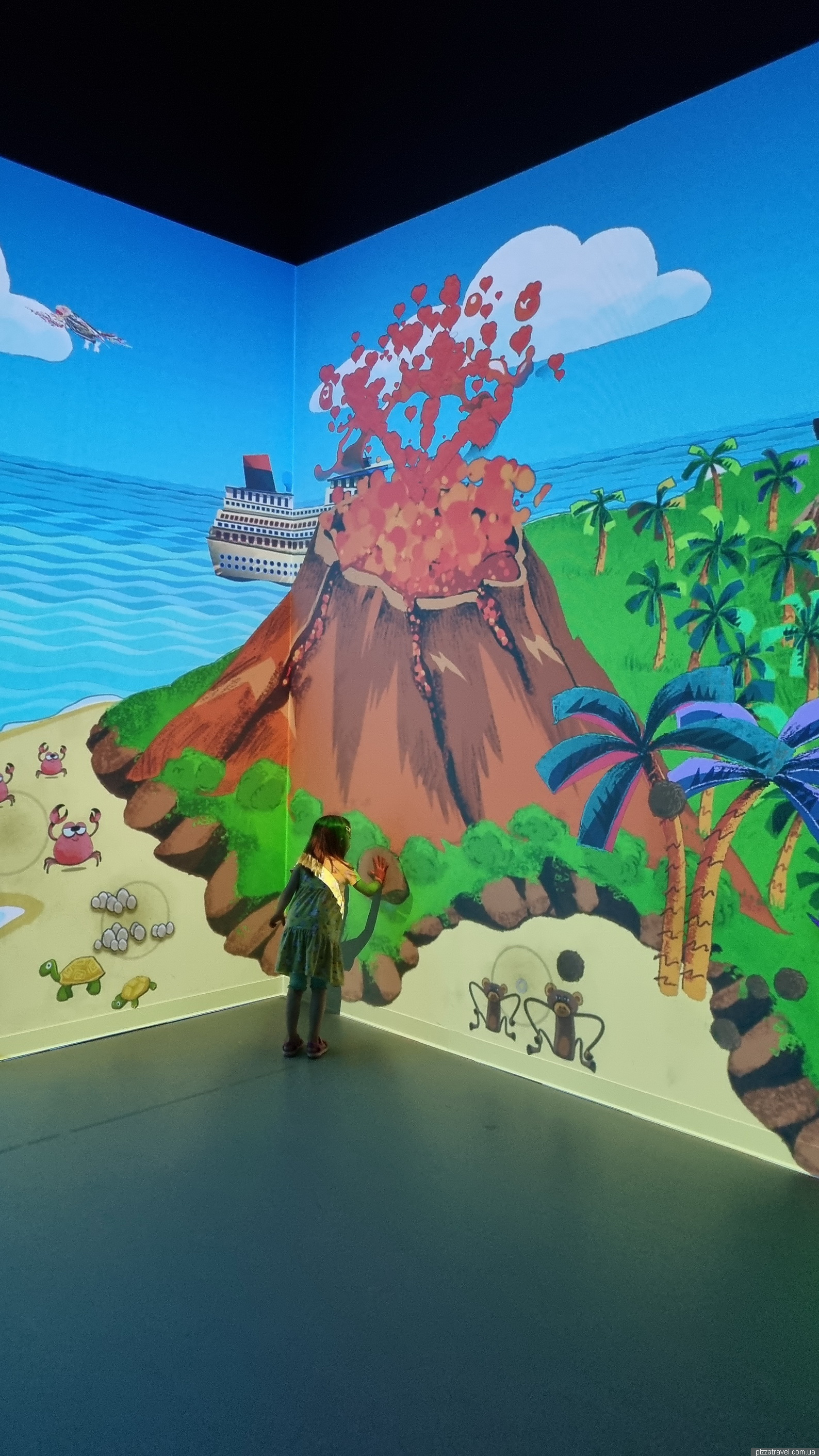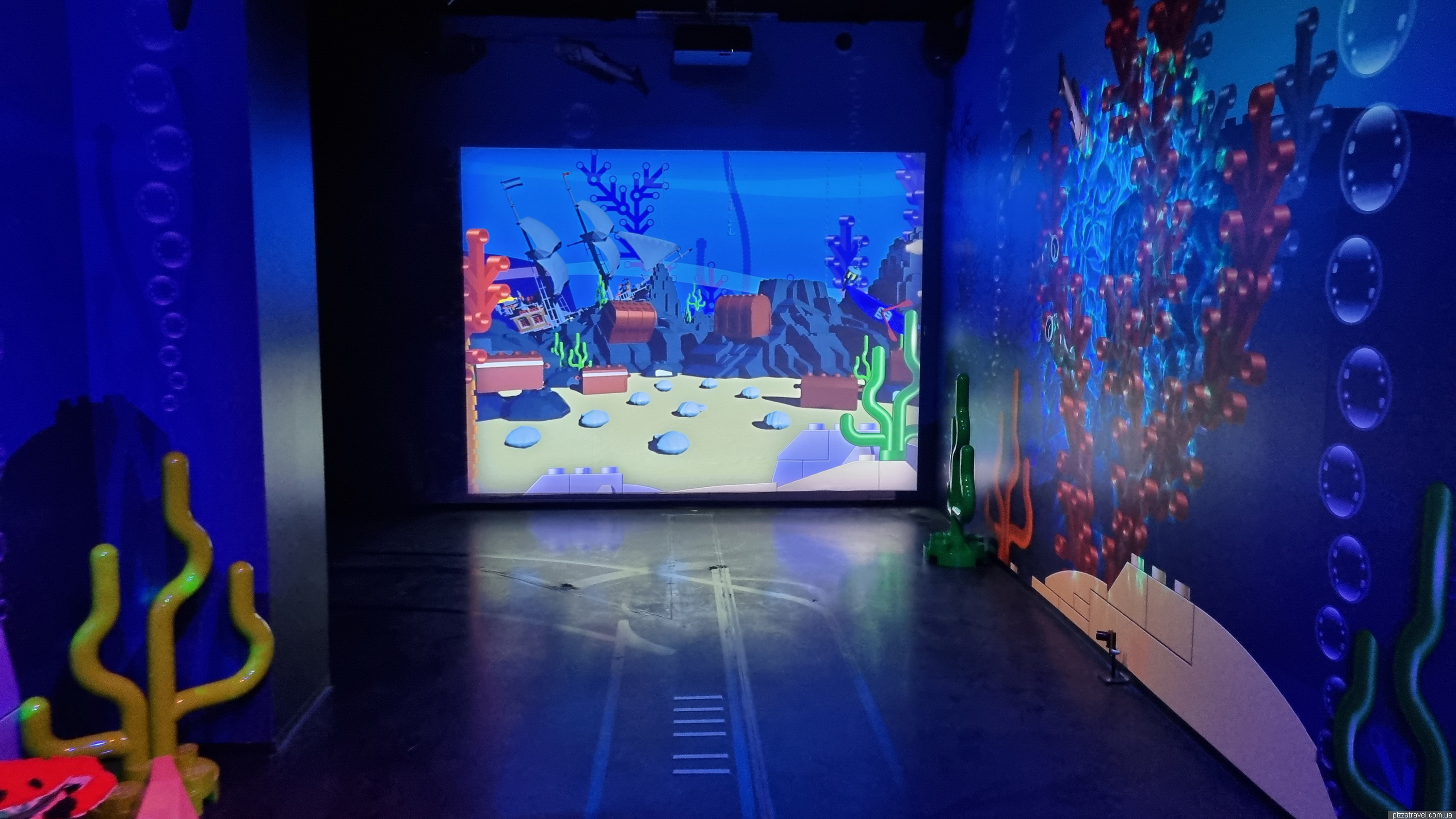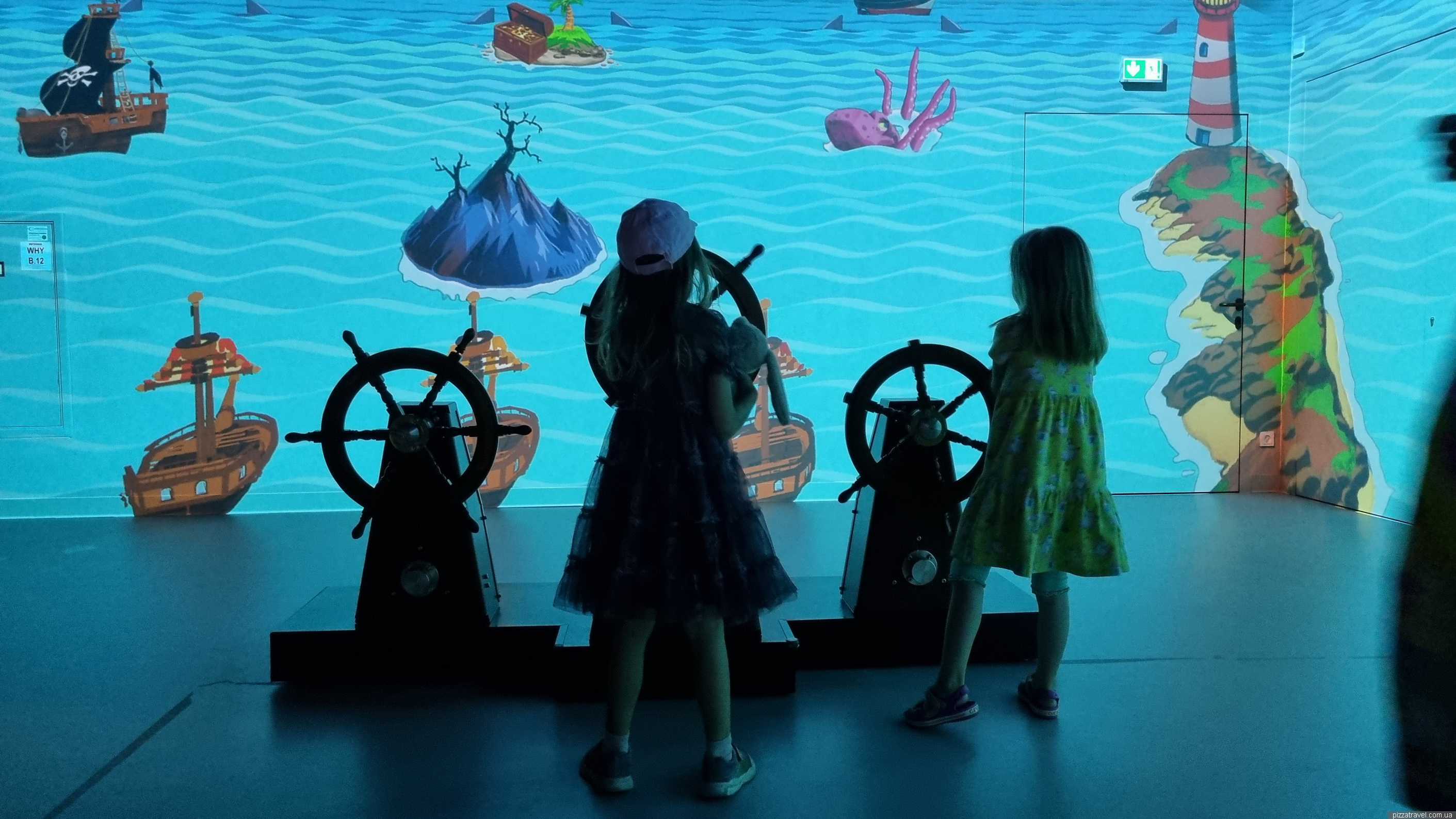 There is a children's area where you can interact with interactive projections on the walls. Also you can draw a boat, scan it, and it will appear on the walls.
