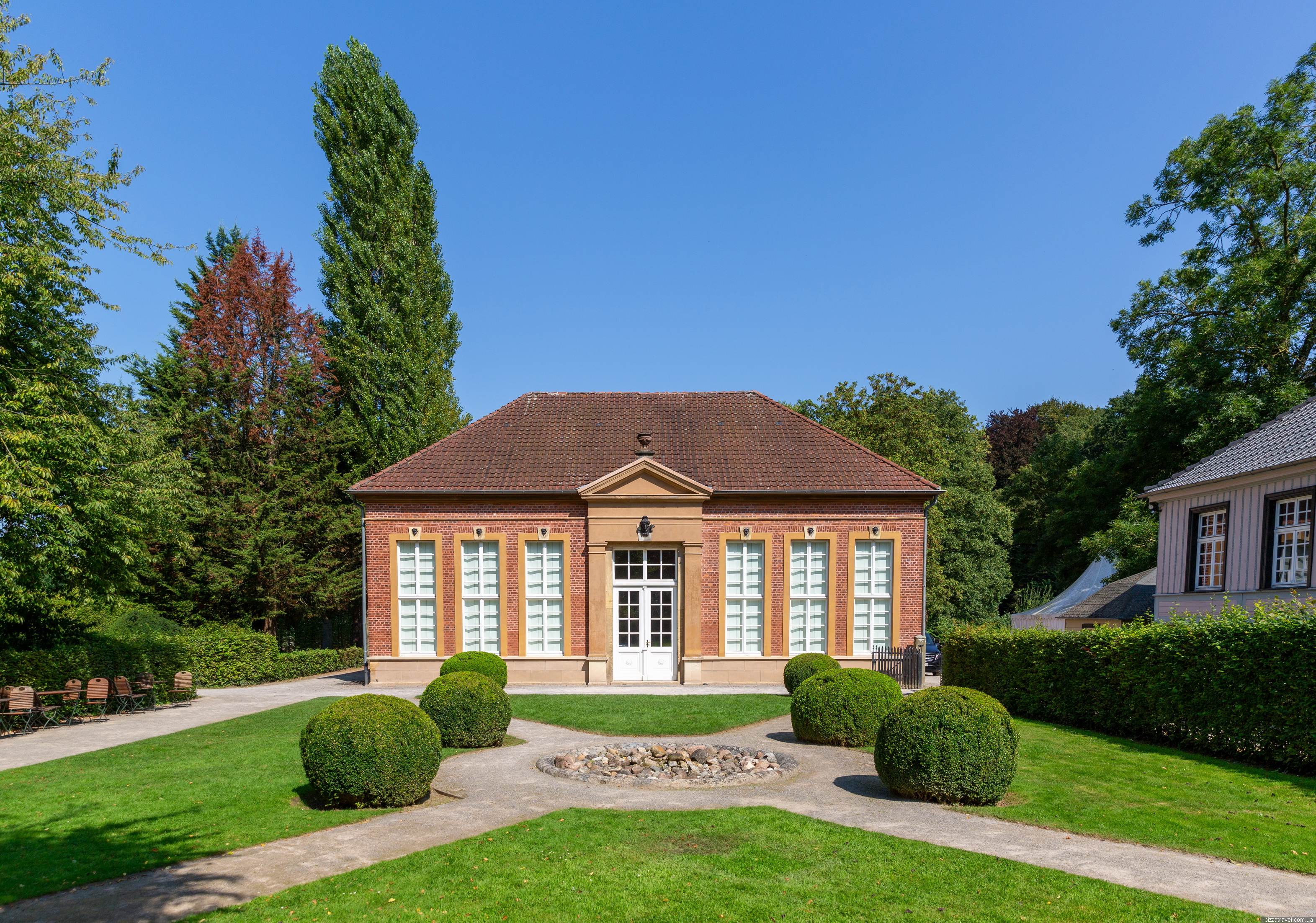 In the middle of the palace gardens, laid out in 1623, is the Orangery. In 1988, the park was restored according to the 19th century plan and reflects elements of neo-Baroque garden art.