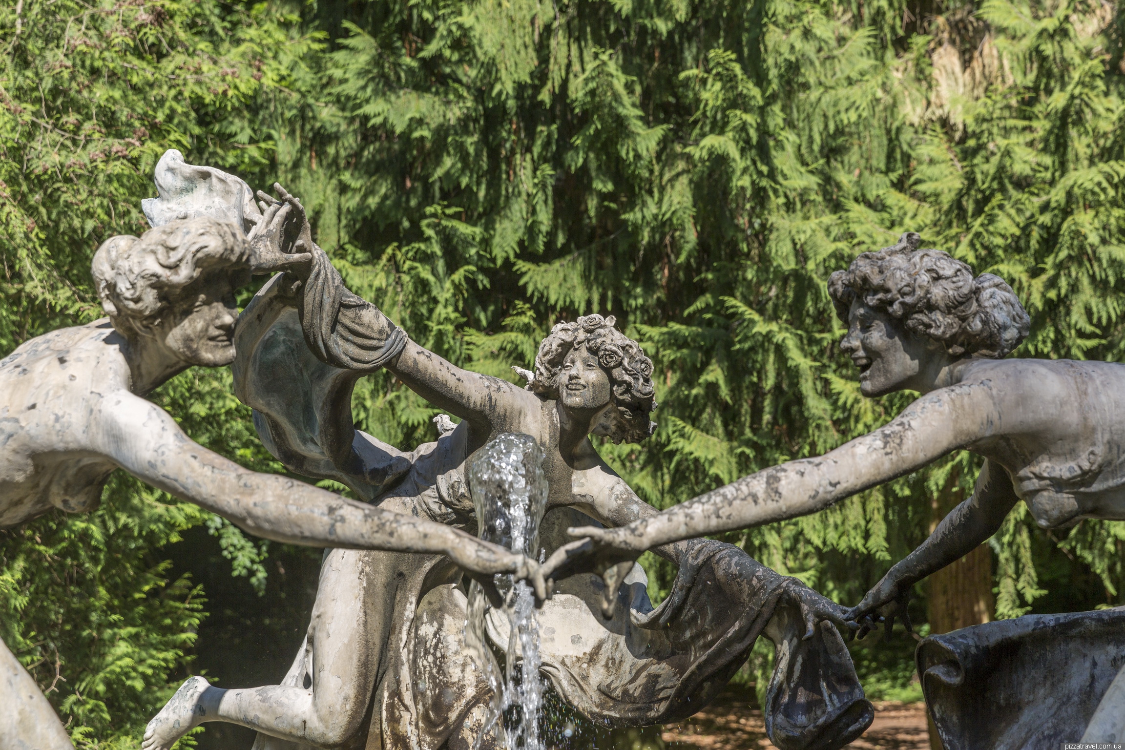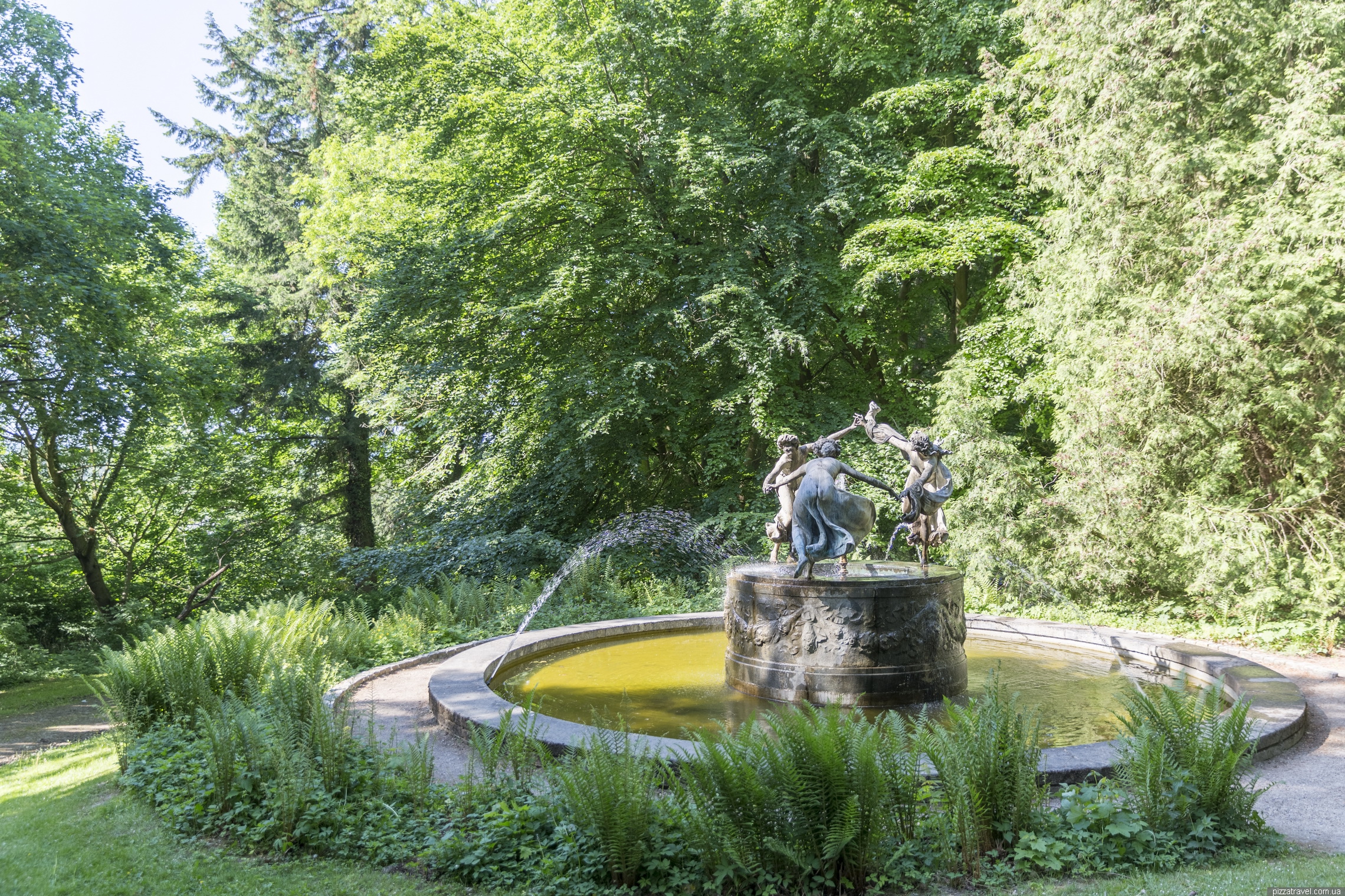 The fountain looks absolutely alien here and there is an explanation. It was designed for the Mosse Palace in Berlin, but the owner of the palace was arrested by the Nazis. The fountain was acquired by the owner of the castle Schlitz and was installed in the park.