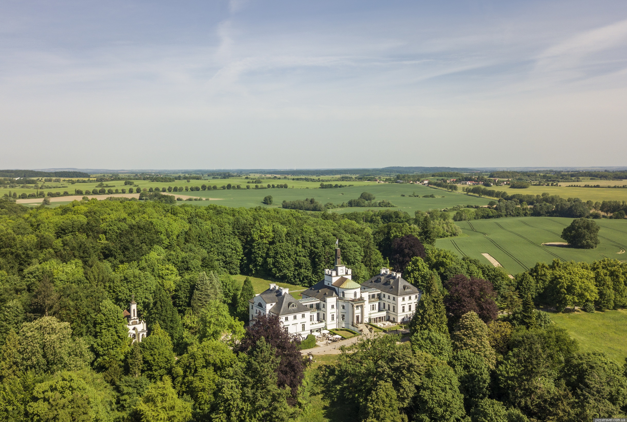After the construction of the castle a large park was planned. Nowadays it looks like a forest. Behind the hotel you can find a chapel (1822) and the fountain with nymphs (1903).