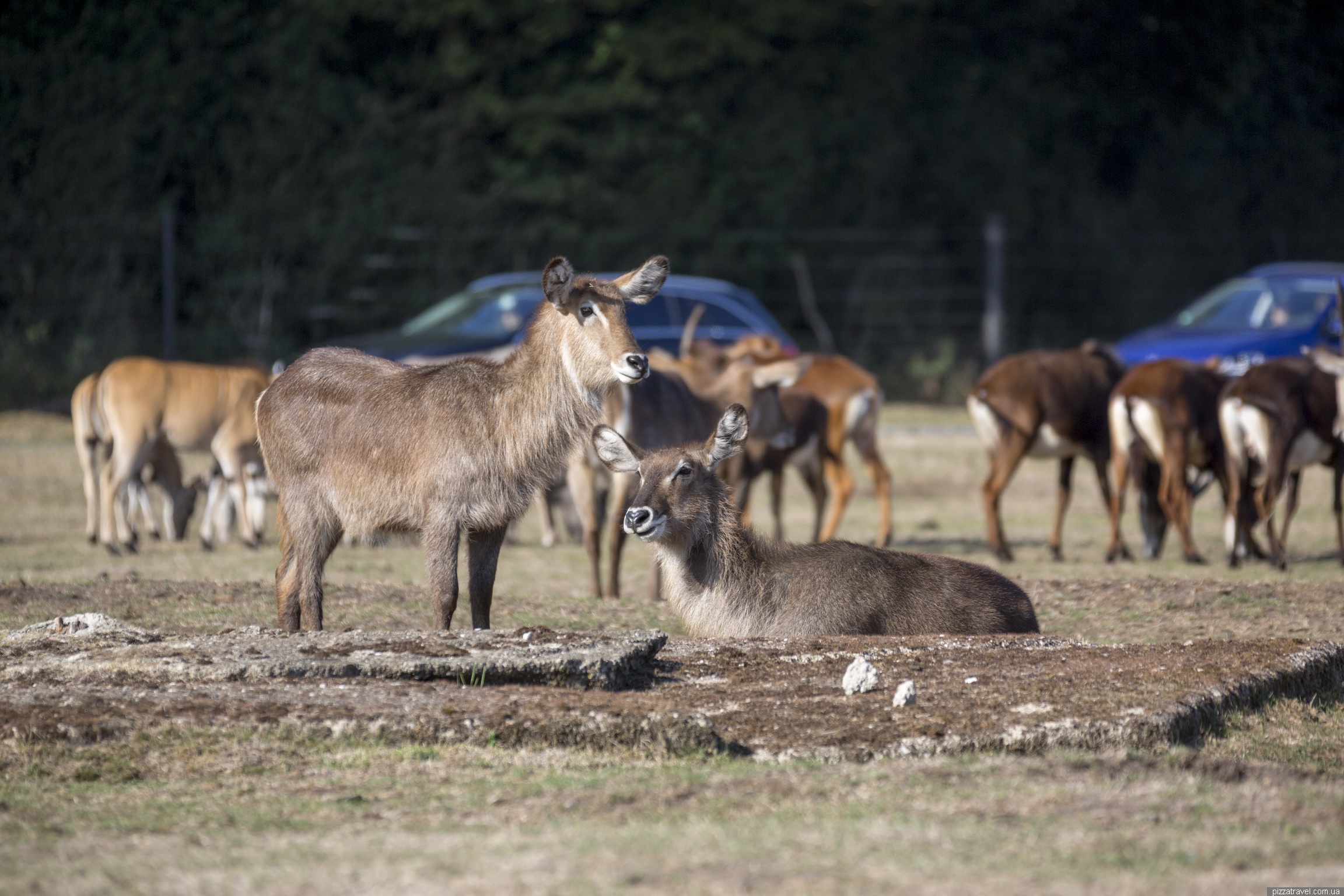 We arrived before the opening and it was correct (find here opening times). The fact is that about 10-15 minutes after opening, a tractor carrying food for animals is driving along a park road. Animals know about this and run up to every car that comes along.