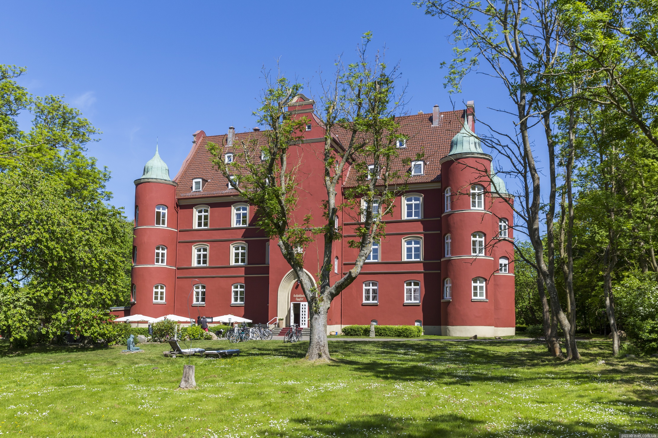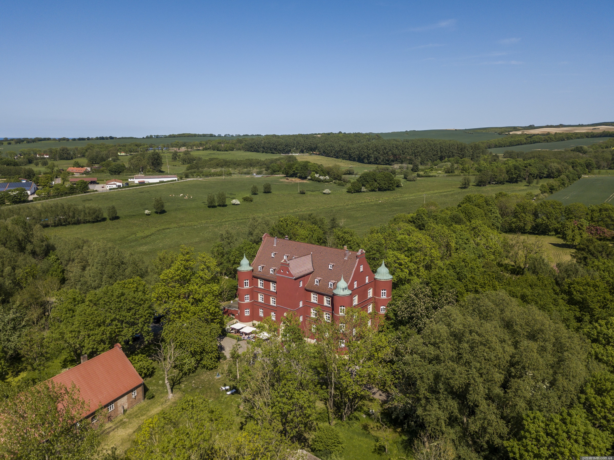 The castle was first mentioned in 1318. After the Thirty Years War, in 1649, the island of Rügen withdrew to Sweden. The castle was transferred to one of the Swedish commanders, who invited Swedish architects. They rebuilt it in the Renaissance style and repainted with traditional Falun red paint, which is not typical for Germany.