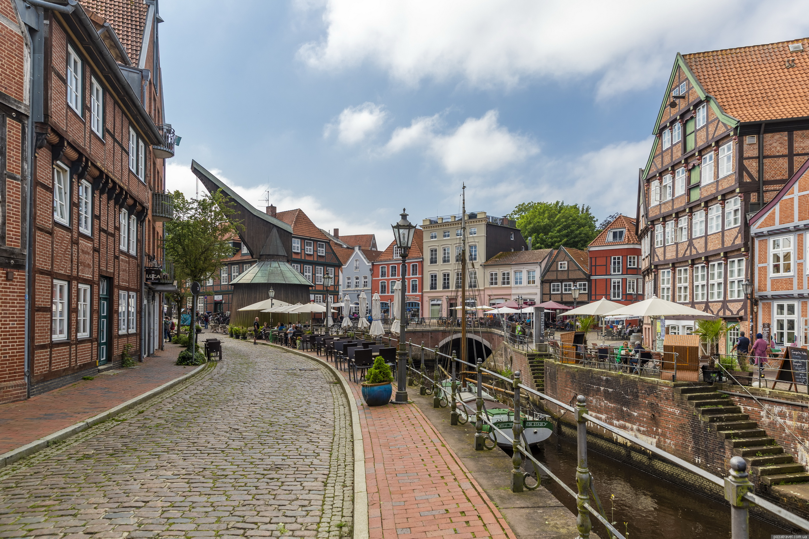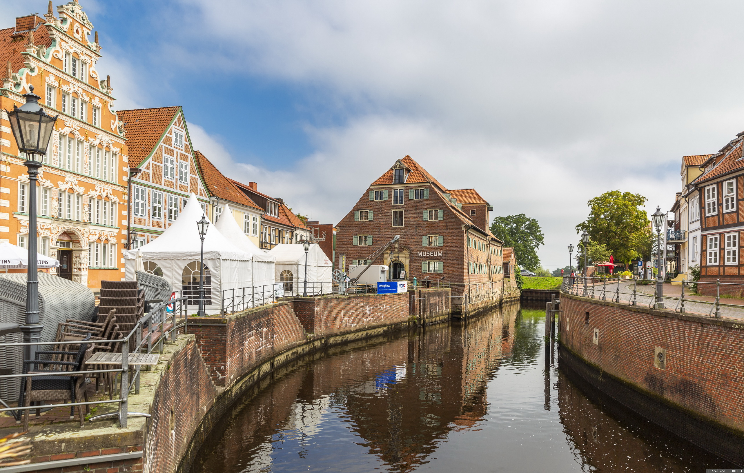 The main attraction is the Old Hanseatic Harbour, established in the Middle Ages, around 1000. The harbour got its present position and shape around 1300. For a long time it was tidal, but after the flood of 1962 the water from the river was restricted and the Hanseatic harbour was no longer navigable.
