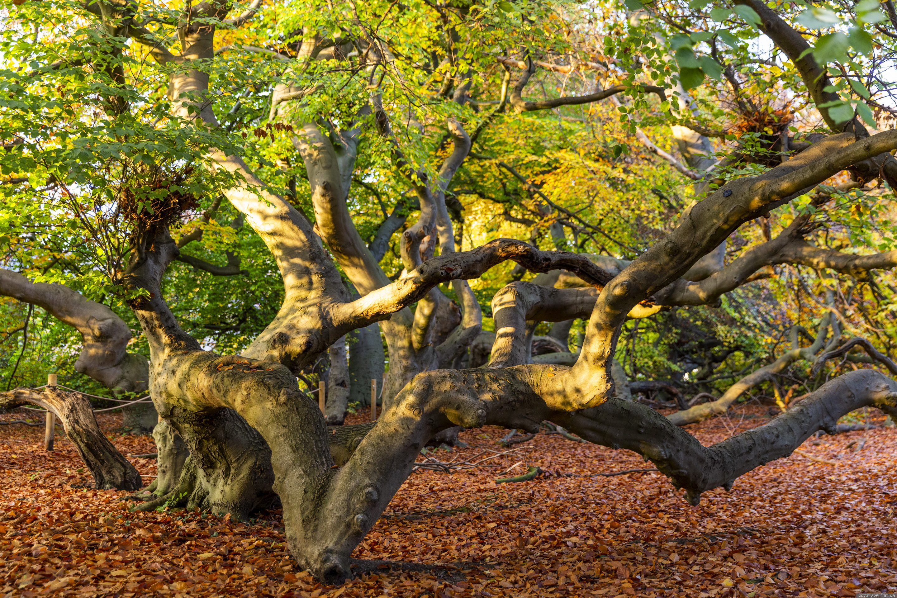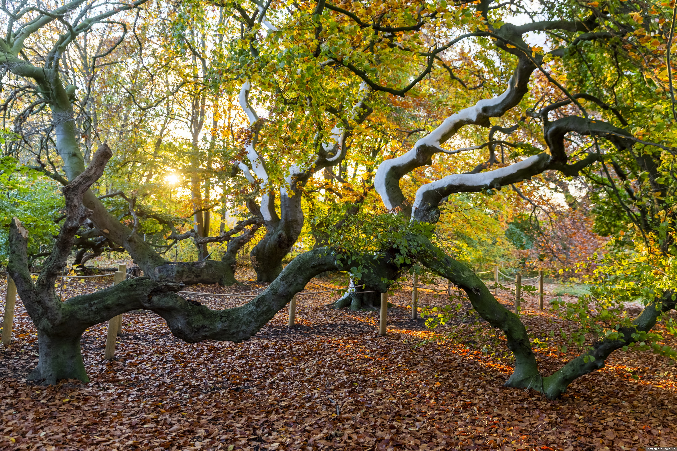 There is an unusual place in the spa town of Bad Nendorf. About 100 years ago, an avenue of rare copper beech trees was planted here. These trees have, so far, an undisclosed genetic disorder that causes them to grow sideways instead of upwards. The German name Süntelbuchenallee is explained by the fact that these beech trees grow in the Süntel mountain range.