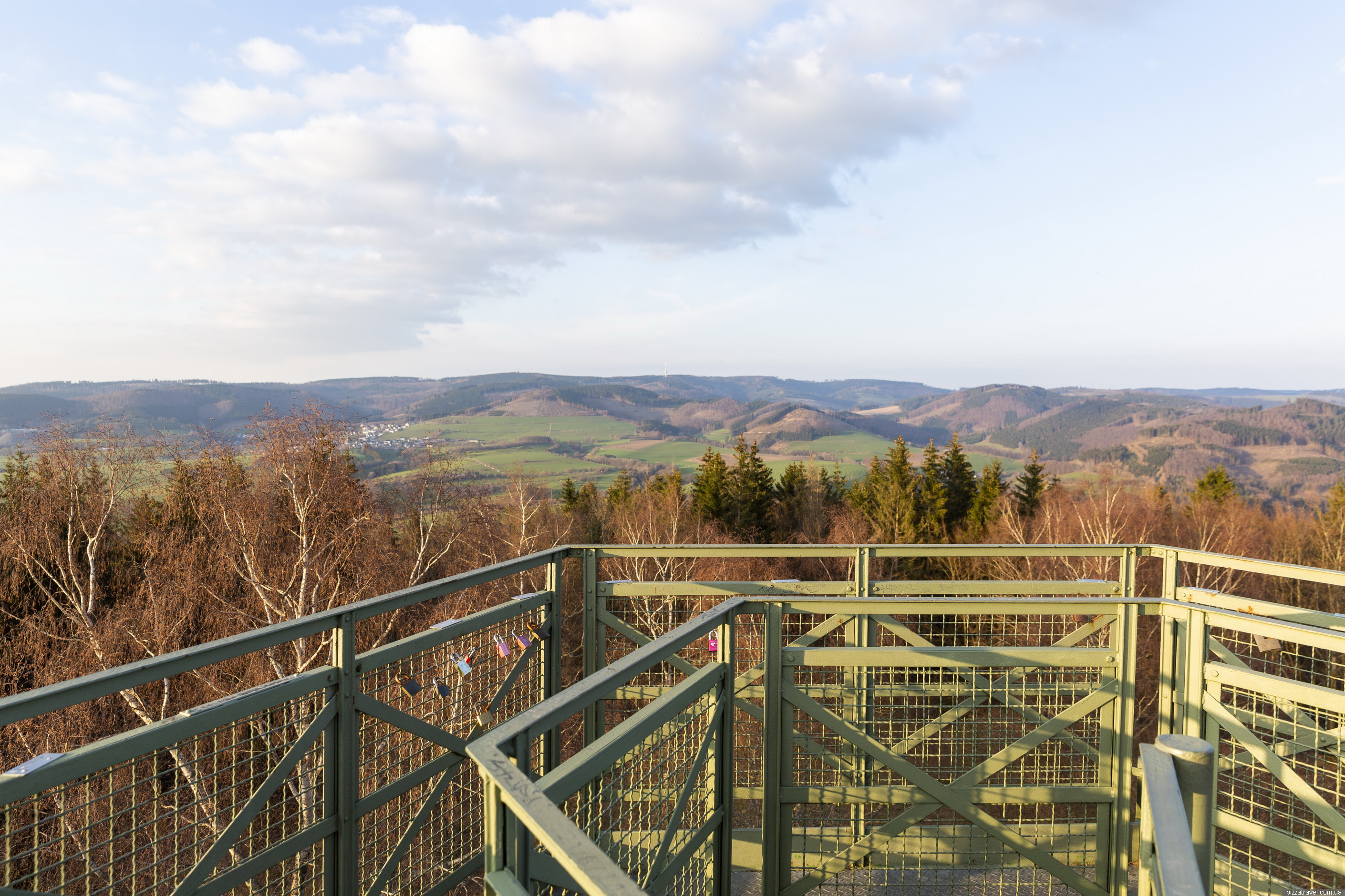 51.153861, 8.320611. There is a 1.2 km long road from the car park to the tower. Most of the road is suitable for prams.