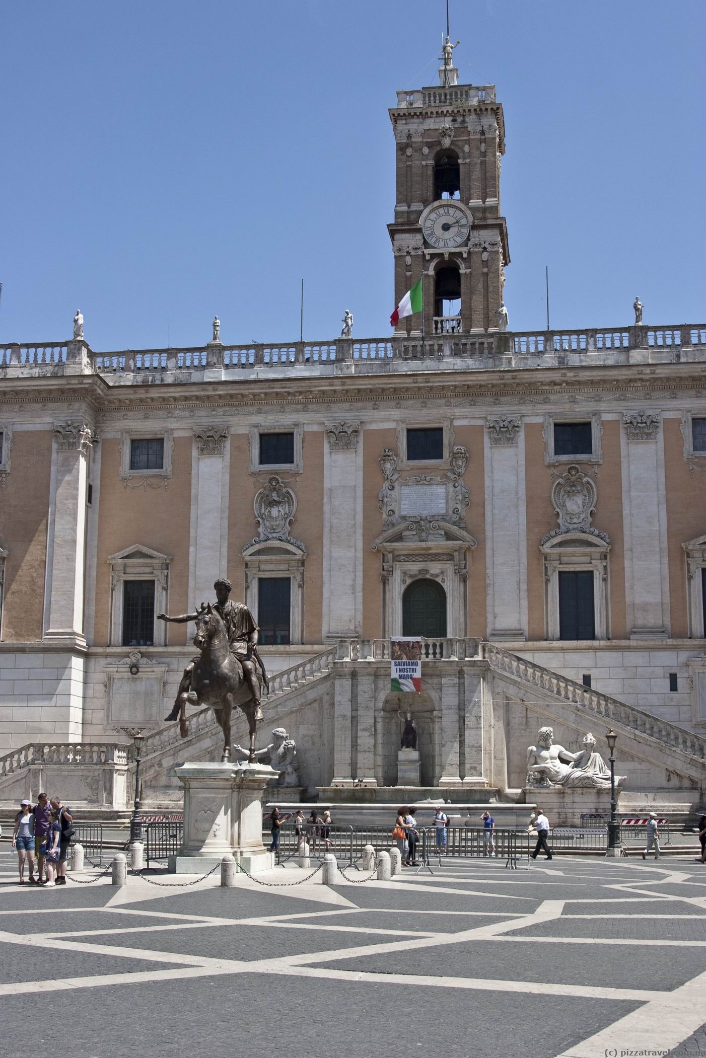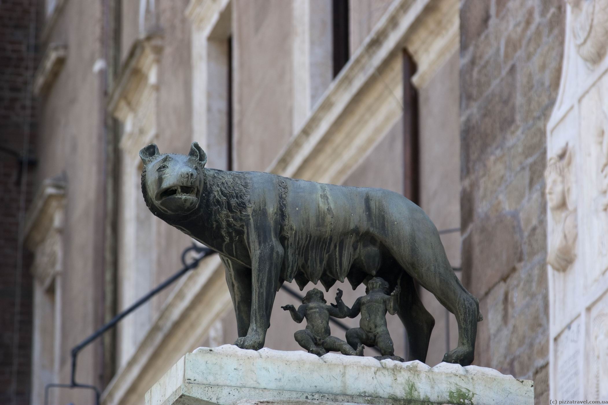 Turn right and visit a small but beautiful Capitoline Square. Here stands an interesting monument to the she-wolf who raised the city's founders, Romulus and Remus.