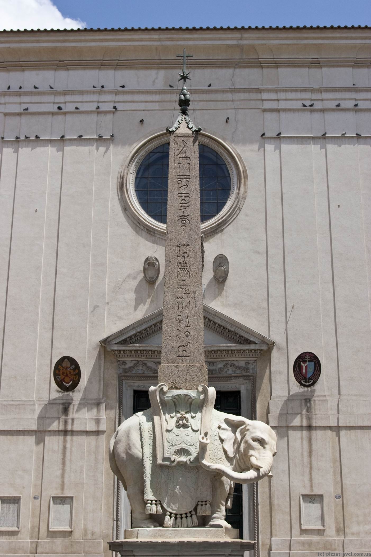 Behind the Pantheon there's a square with a small sculpture of an elephant - L'Obelisco di Minerva, Bernini's work. On the back of the elephant there's an ancient Egyptian obelisk brought by Caesar.