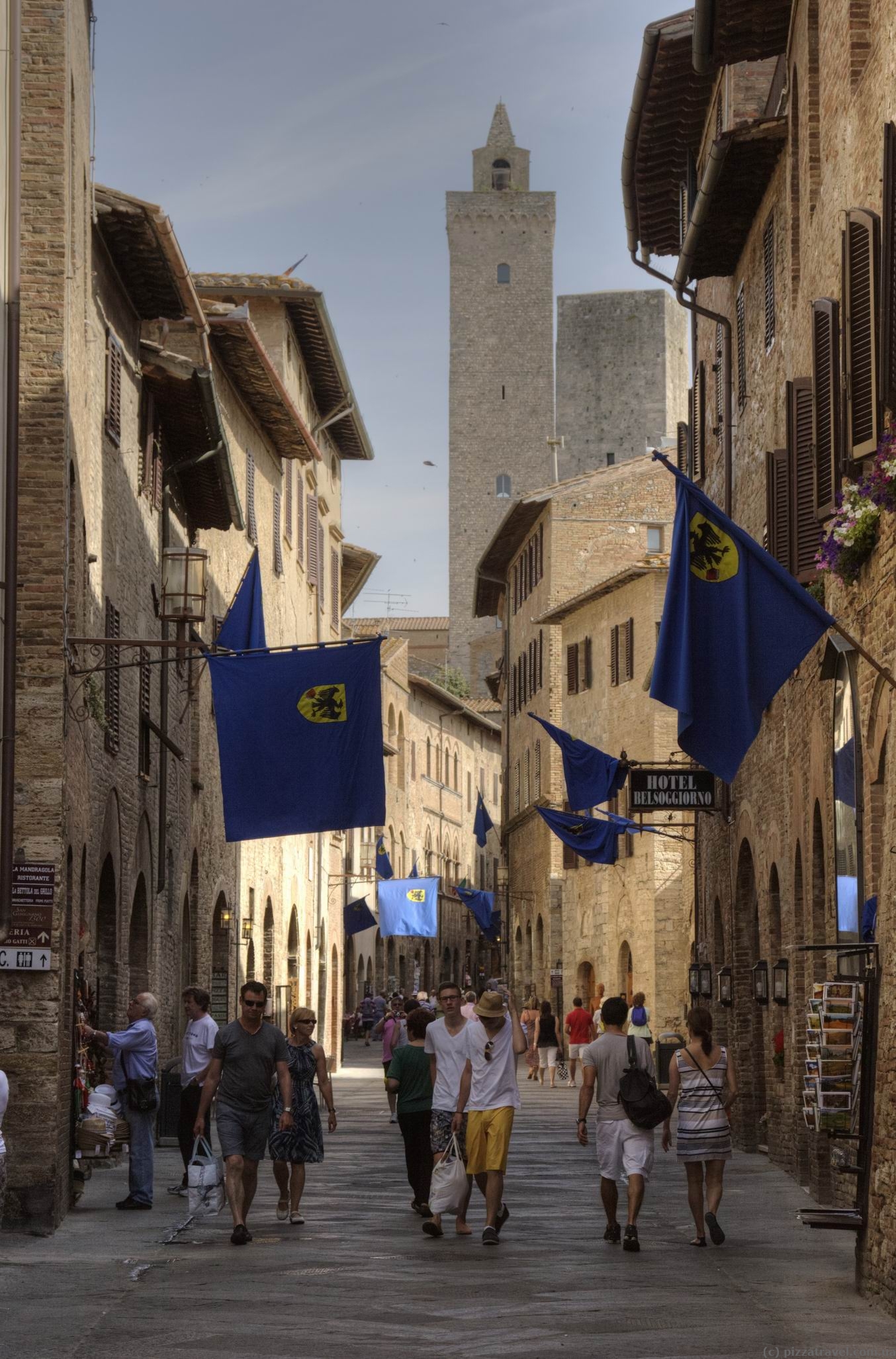 San Gimignano is a small town in Tuscany, which is quite popular with tourists. By the way, when we hear the phrase "popular with tourists", we come to this place in the morning. This time we were in the old town at 8:30 am and walked alone for about an hour. At 9:30 am the streets were already crowded with tourists.