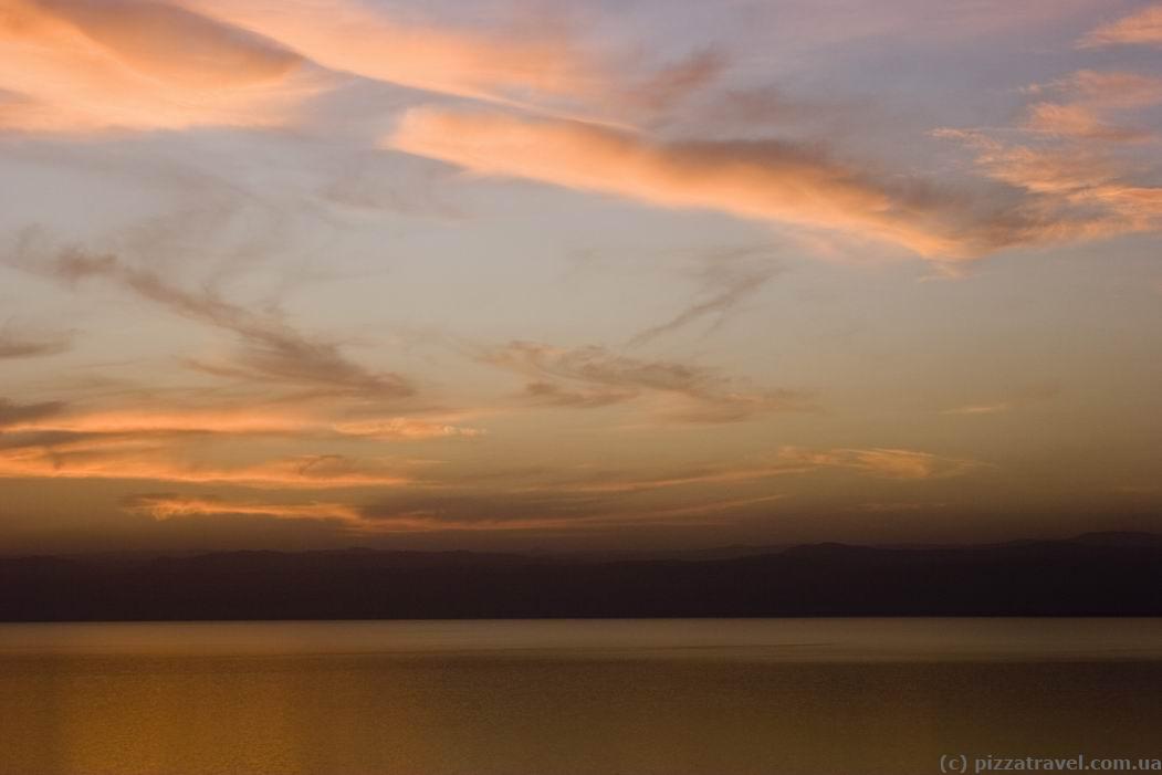 Dead Sea is a unique natural formation located between Israel and Jordan. It is 67 km long and 18 km wide, so one coast is visible from another. On the Jordanian side you can watch the beautiful sunset.