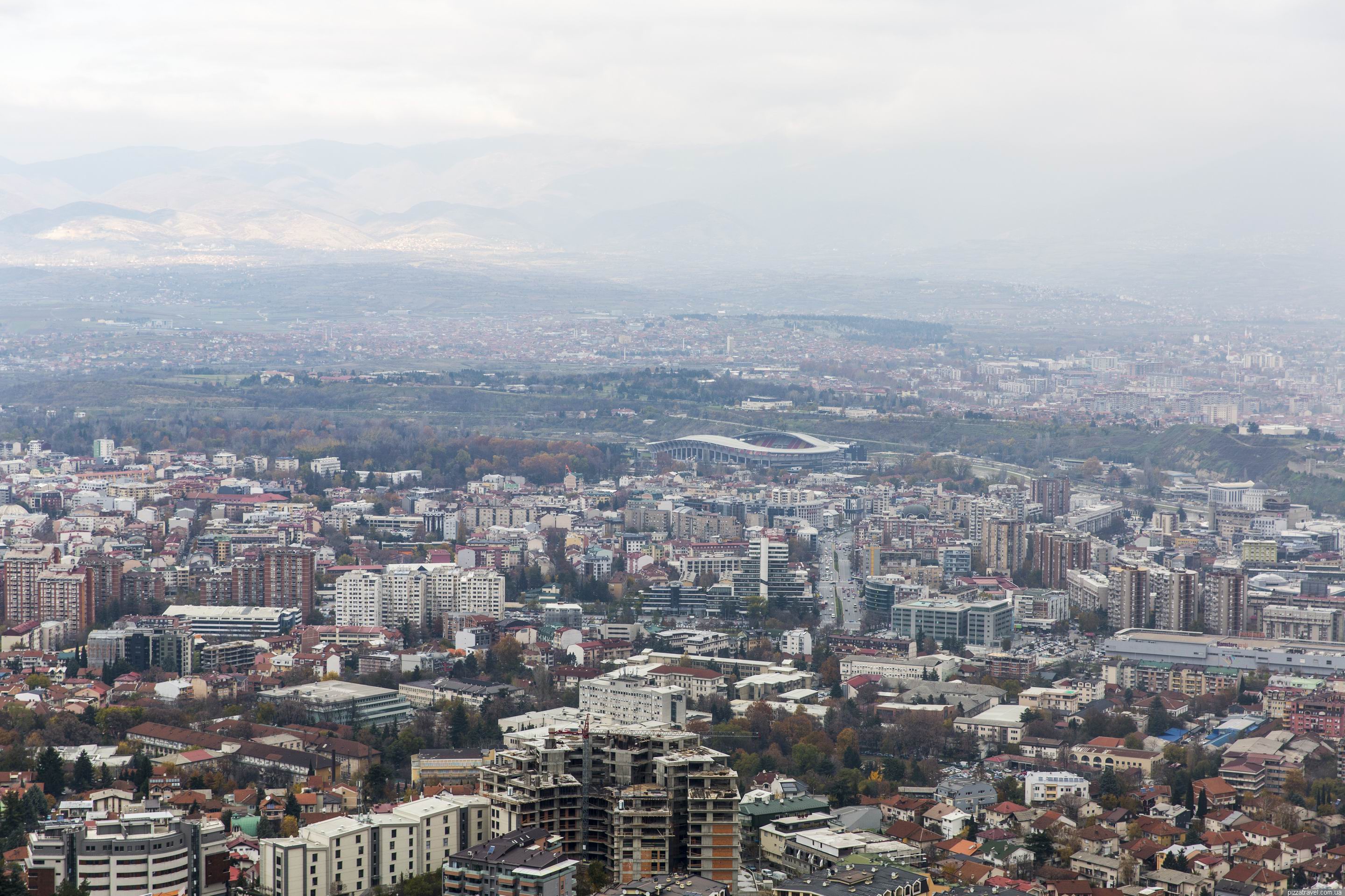 In the background, in the distance, visible high-rise buildings with 20 floors and more. Other countries on the seismological Balkans do not built such houses.